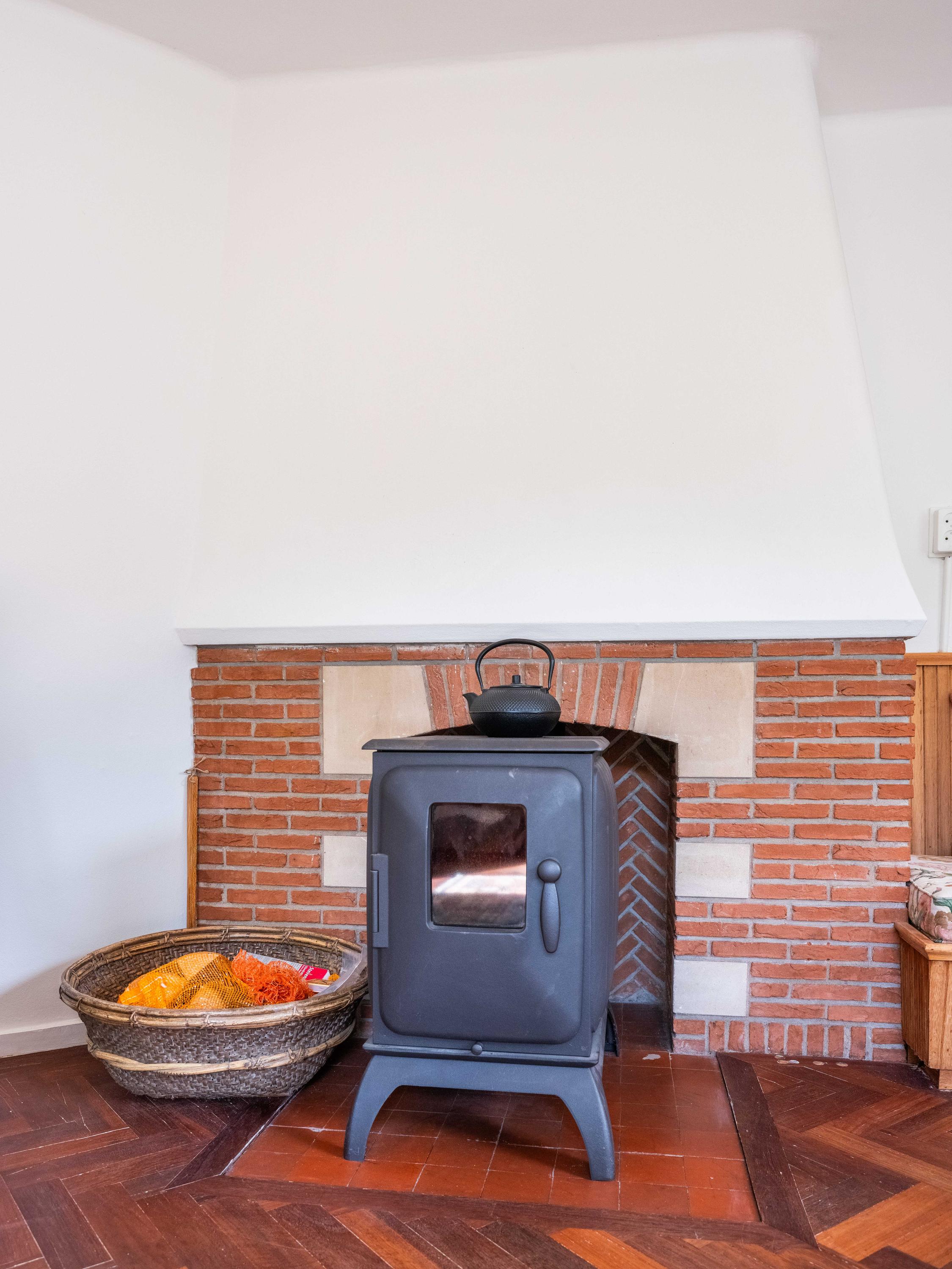 We nemen u mee naar binnen. Bij binnenkomst valt direct de fraaie entreehal op met een stijlvolle trapopgang met smeedijzeren leuning, een moderne toiletruimte en een handige kelderkast. De woonkamer is licht en sfeervol met een originele houten parketvloer, een houtkachel en openslaande tuindeuren naar de groene tuin. Ingebouwde houten maatwerkkasten zorgen voor extra charme én bergruimte.