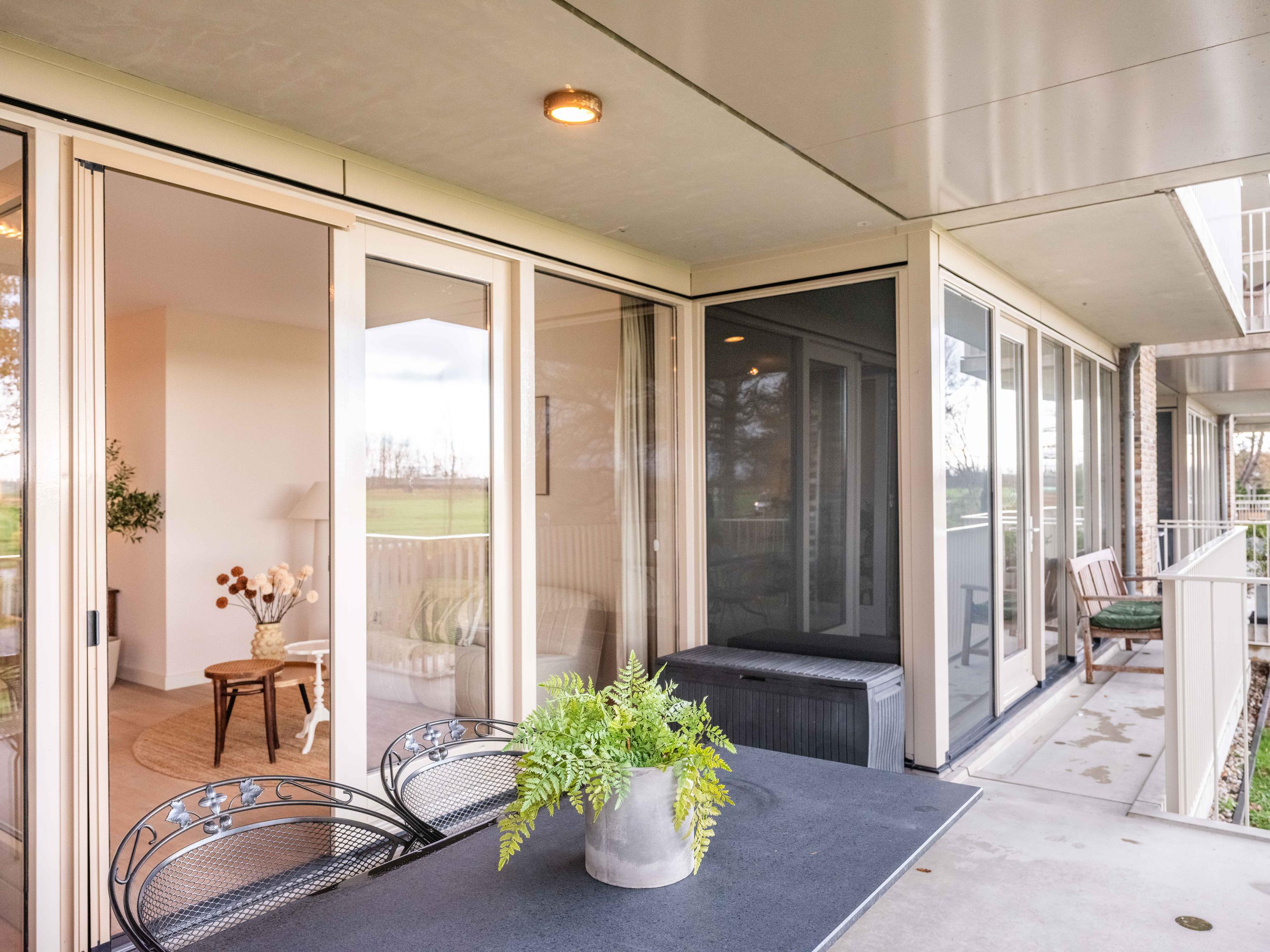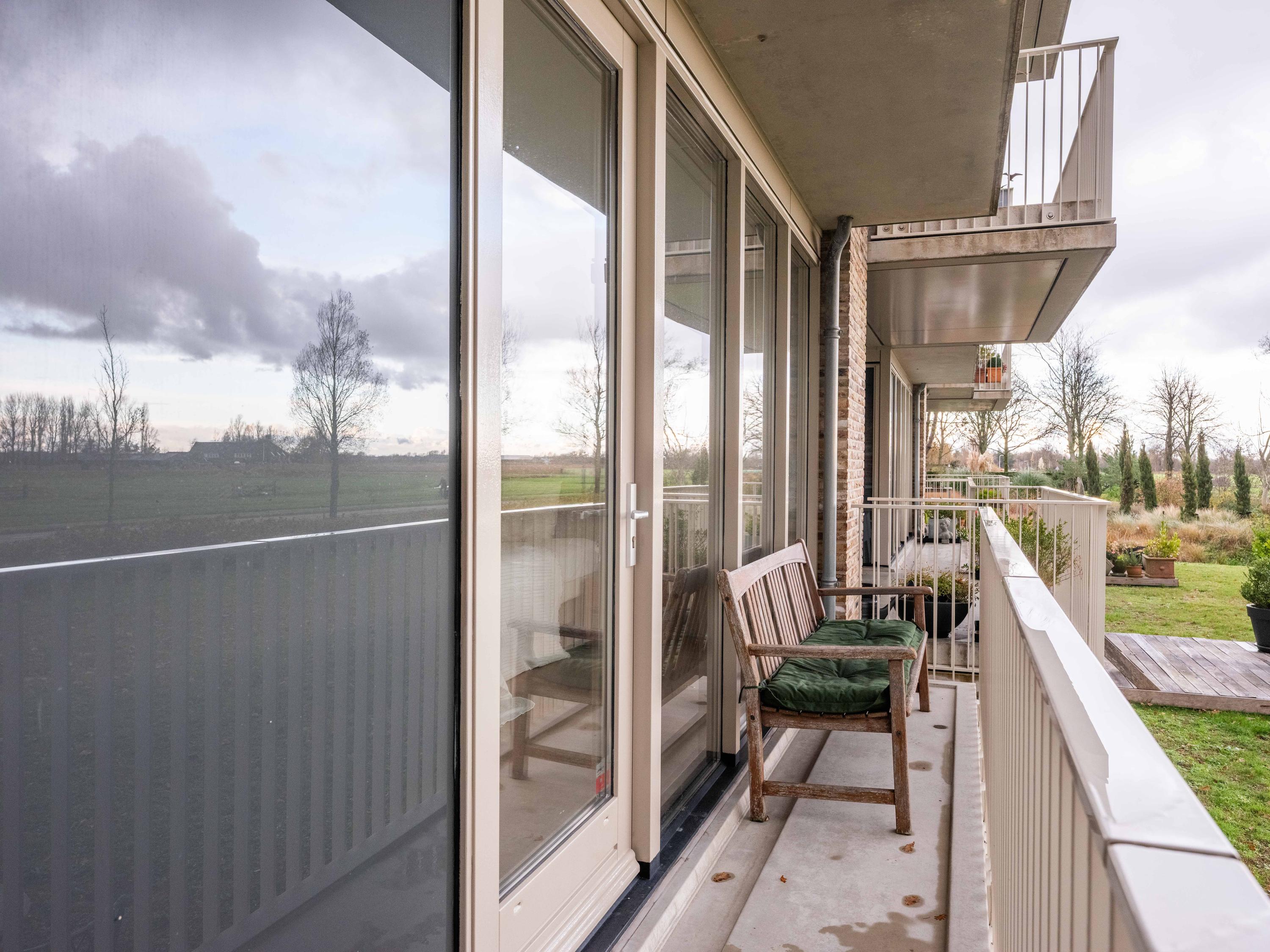 Vanuit de living, het balkon en lager gelegen terras kunt u de hele dag door genieten van prachtige wolkenluchten, vogels en het groen van de polder. De moderne open keuken bevat diverse inbouwapparatuur en een eetgedeelte.