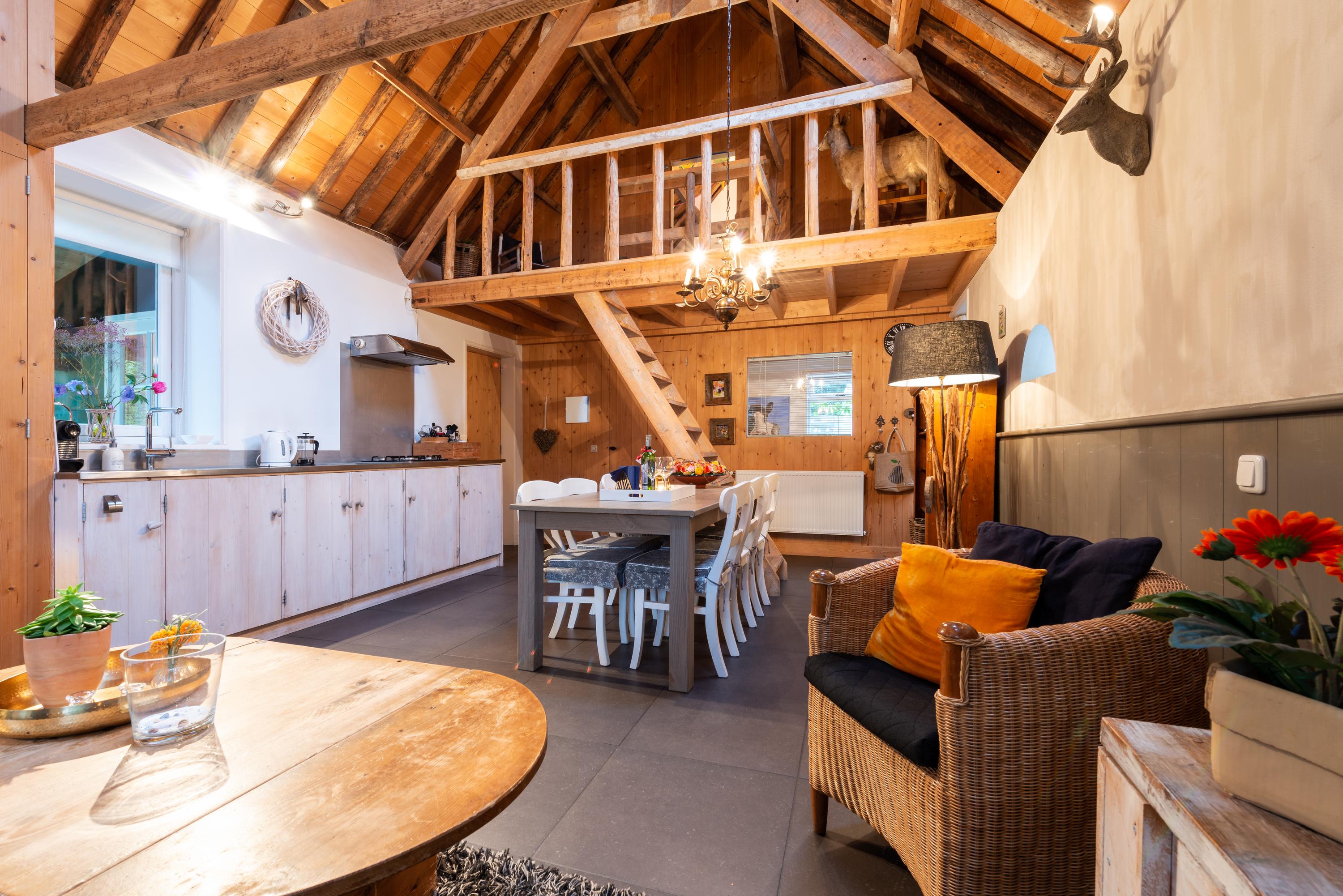 RECREATIEWONING beukenhoeve.nl: Achter de woning staat een luxe, in stijl gerenoveerde recreatiewoning 't Beukje, met een fraai verwarmde veranda. Deze heeft een woonkamer, open keuken, twee slaapkamers op de begane grond en een slaapkamer op de eerst verdieping. (vide) De badkamer op de begane grond heeft vloerverwarming en een aansluiting voor een wasmachine. Verder inloopdouche, wastafelmeubel en toilet. Er is een eigen tuin grenzend aan de veranda.