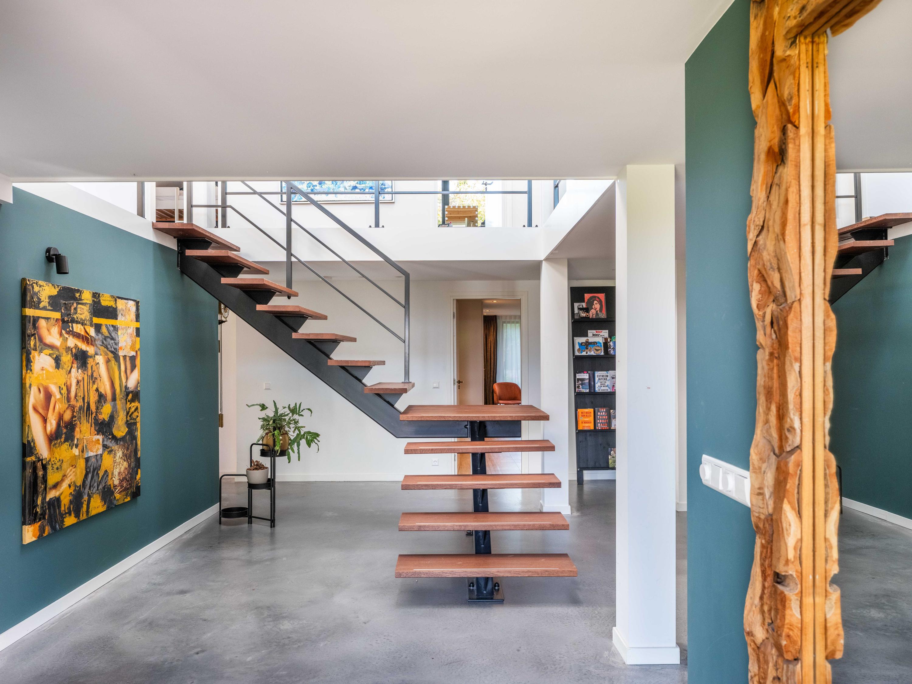 We nemen u mee naar binnen. Bij binnenkomst wordt direct duidelijk dat hier geen concessies zijn gedaan aan kwaliteit en comfort. De ruime hal met maatwerk garderobe en een design trap in warme houttinten vormt een stijlvolle entree. De stoere gietvloer van Architop met vloerverwarming loopt naadloos door en zorgt voor een moderne, behaaglijke basis. In de technische ruimte vindt u de nieuwste warmtepomp en een 2.000 liter buffervat voor warm water. Alles is tot in detail afgewerkt, inclusief een strak toilet en een aparte gamekamer.