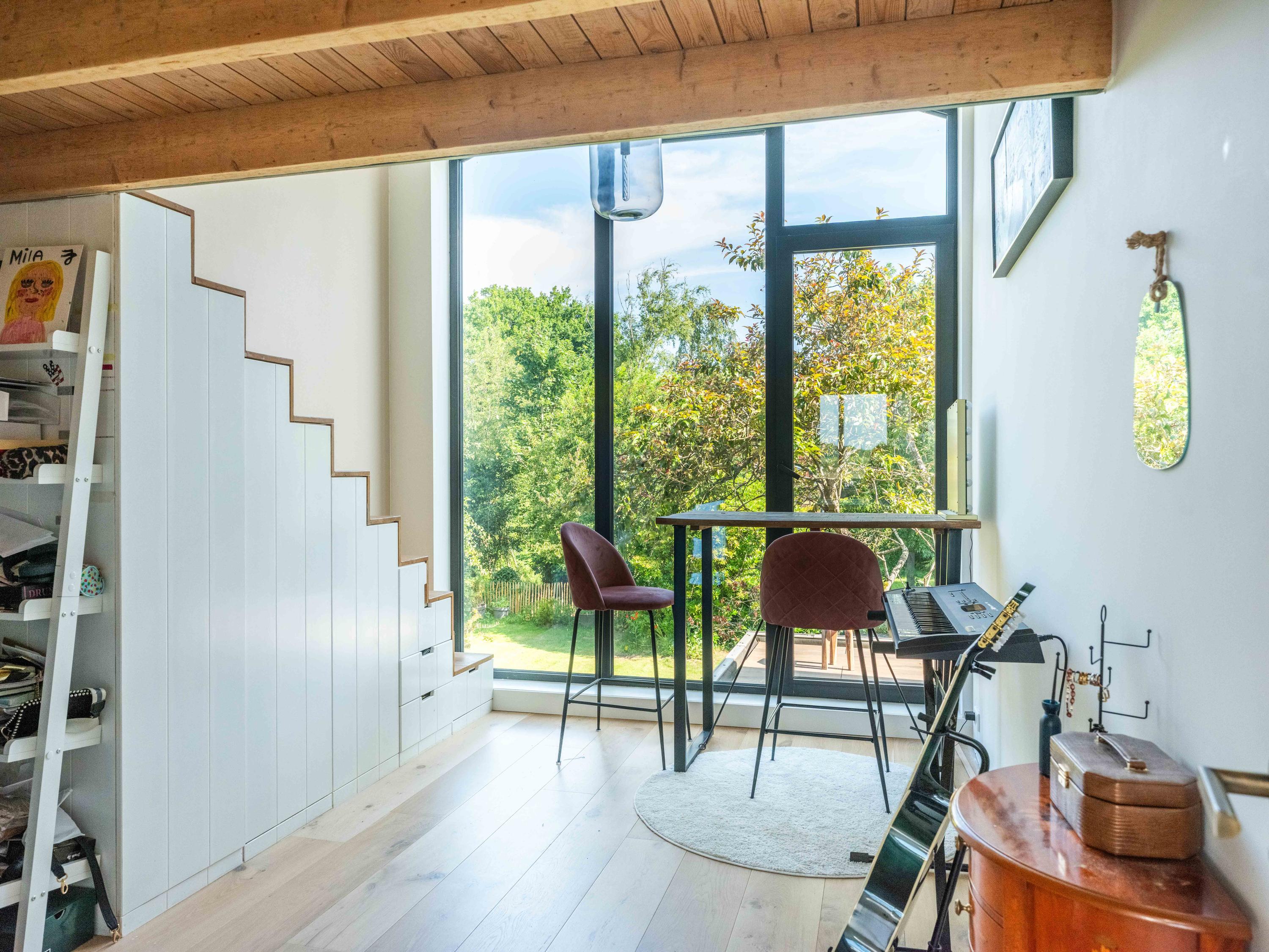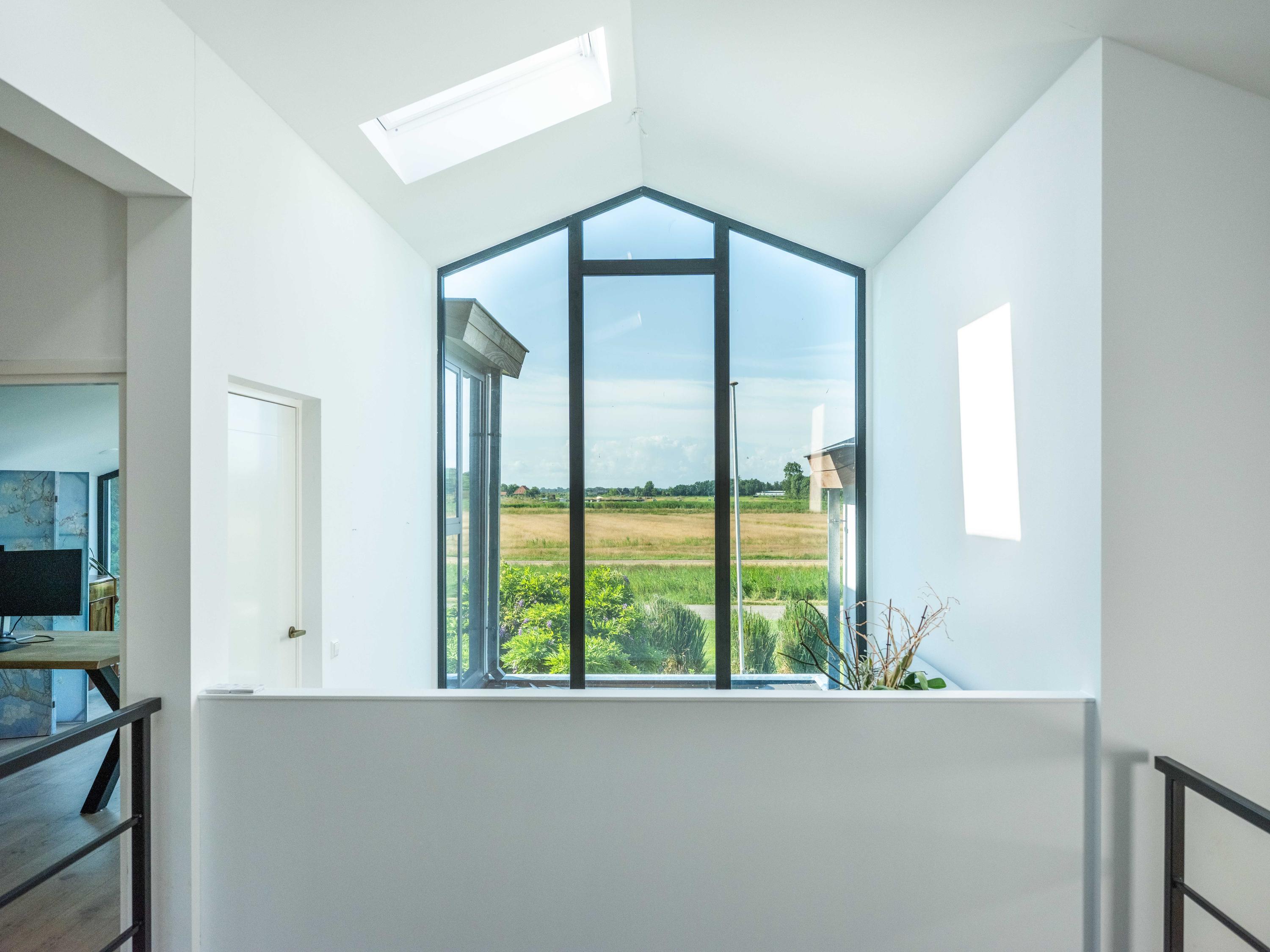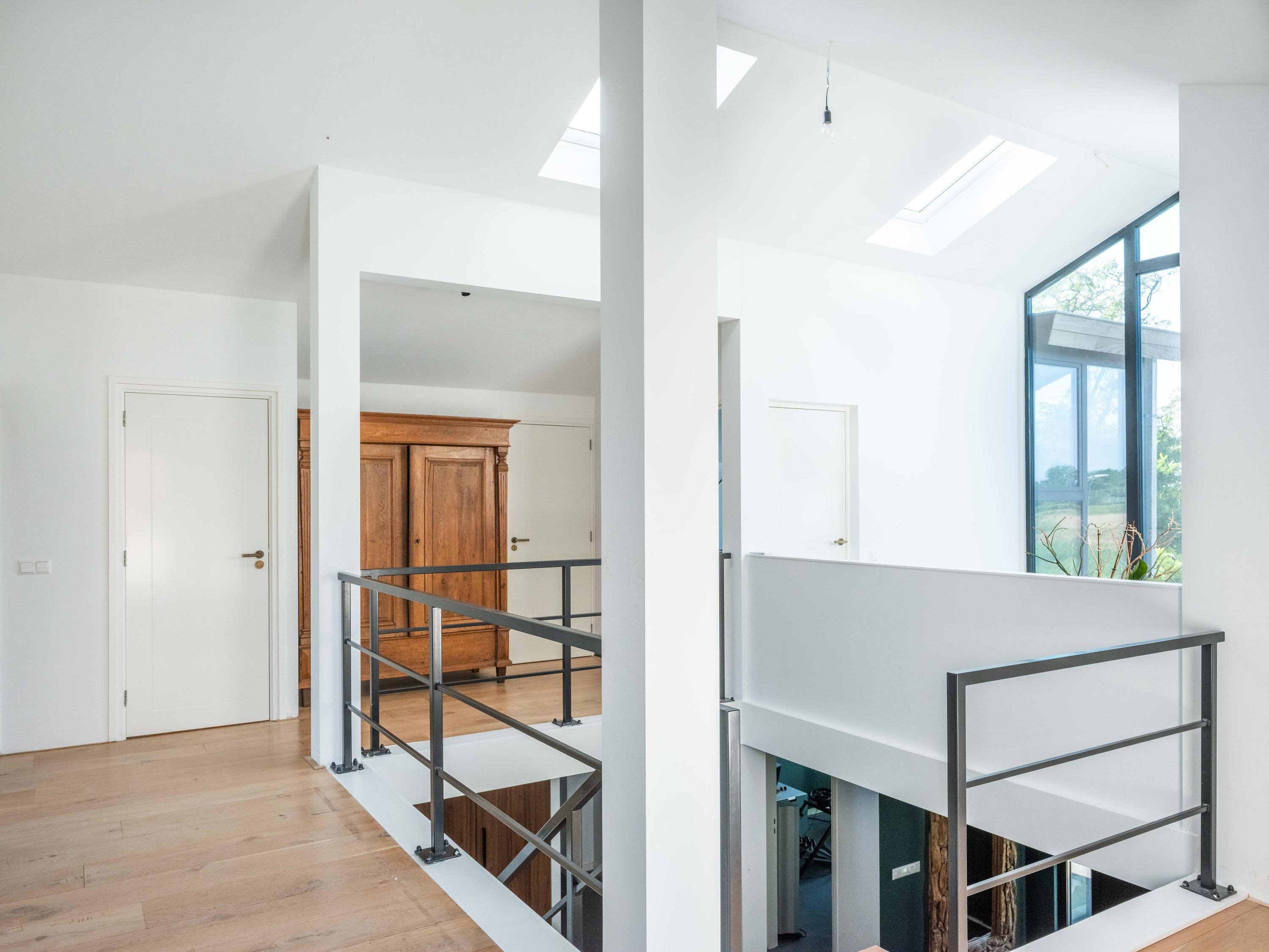 De bovenverdieping is het domein voor de kinderen en hobby's. Naast drie fijne slaapkamers, een tweede badkamer met grote inloopdouche, separaat toilet, en wasruimte, vindt u hier verrassende extra’s. Denk aan een inspirerende werkkamer met weids uitzicht, een serene yogaruimte en een speelse vide waar u zich terugtrekt met een goed boek.