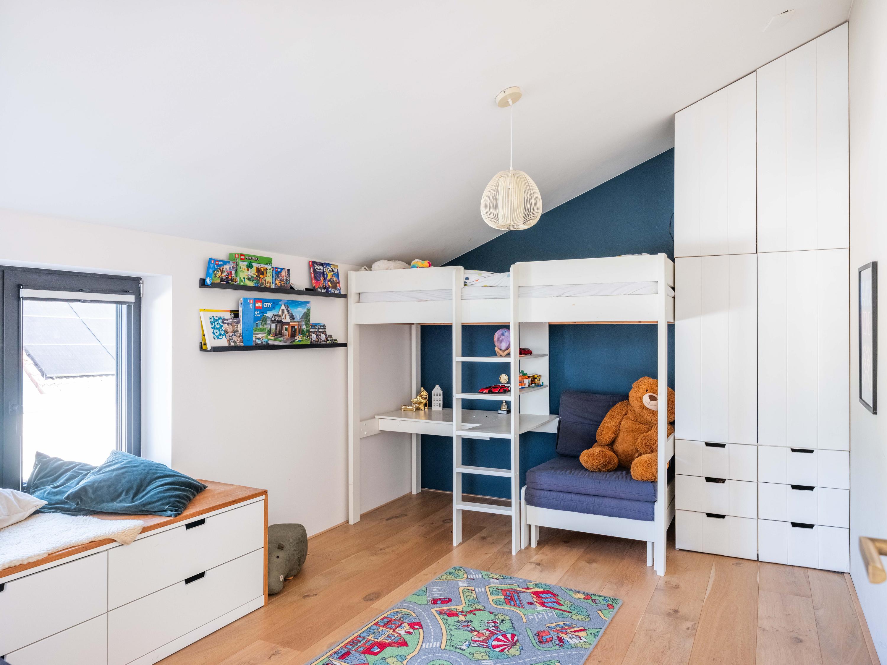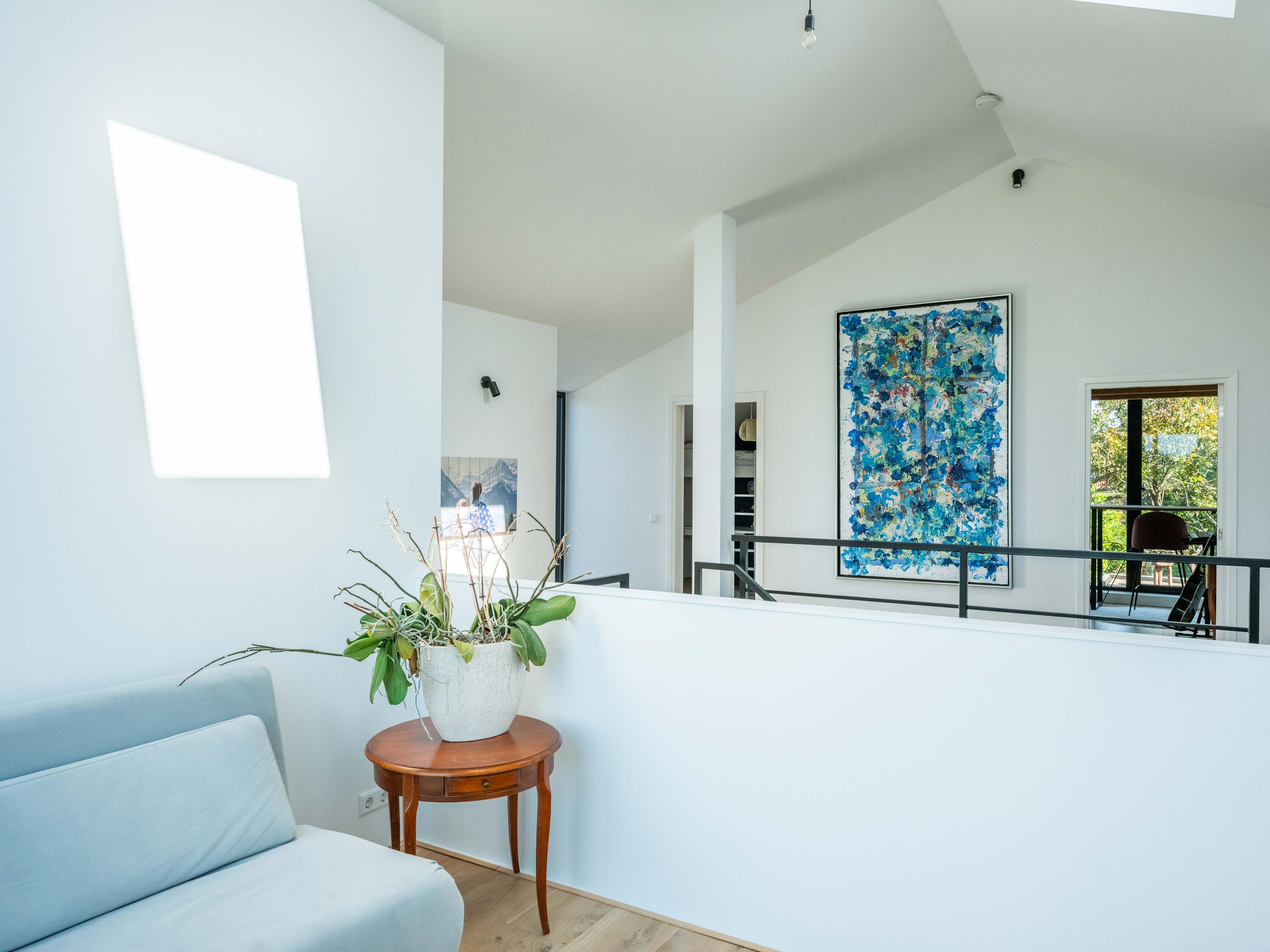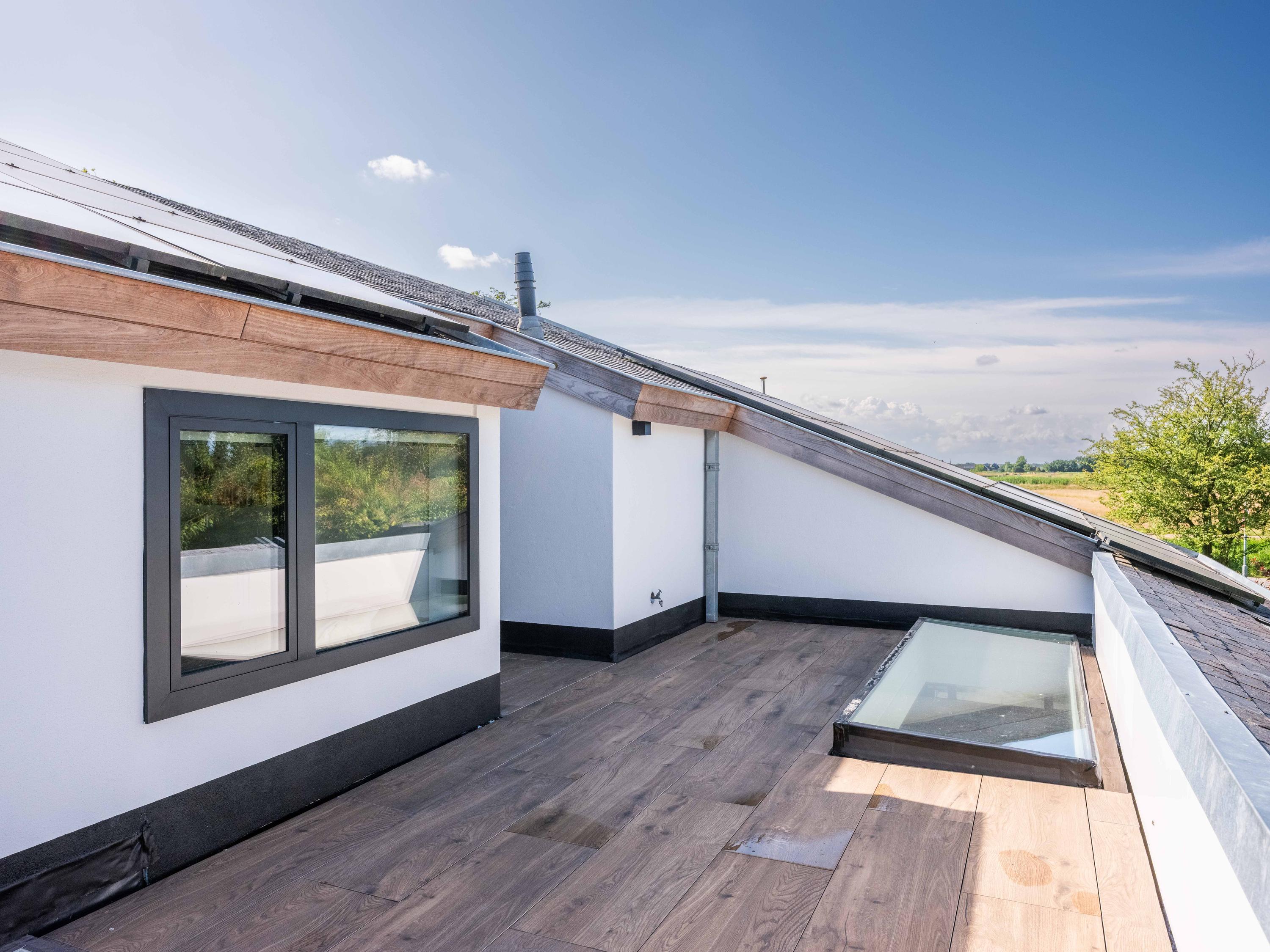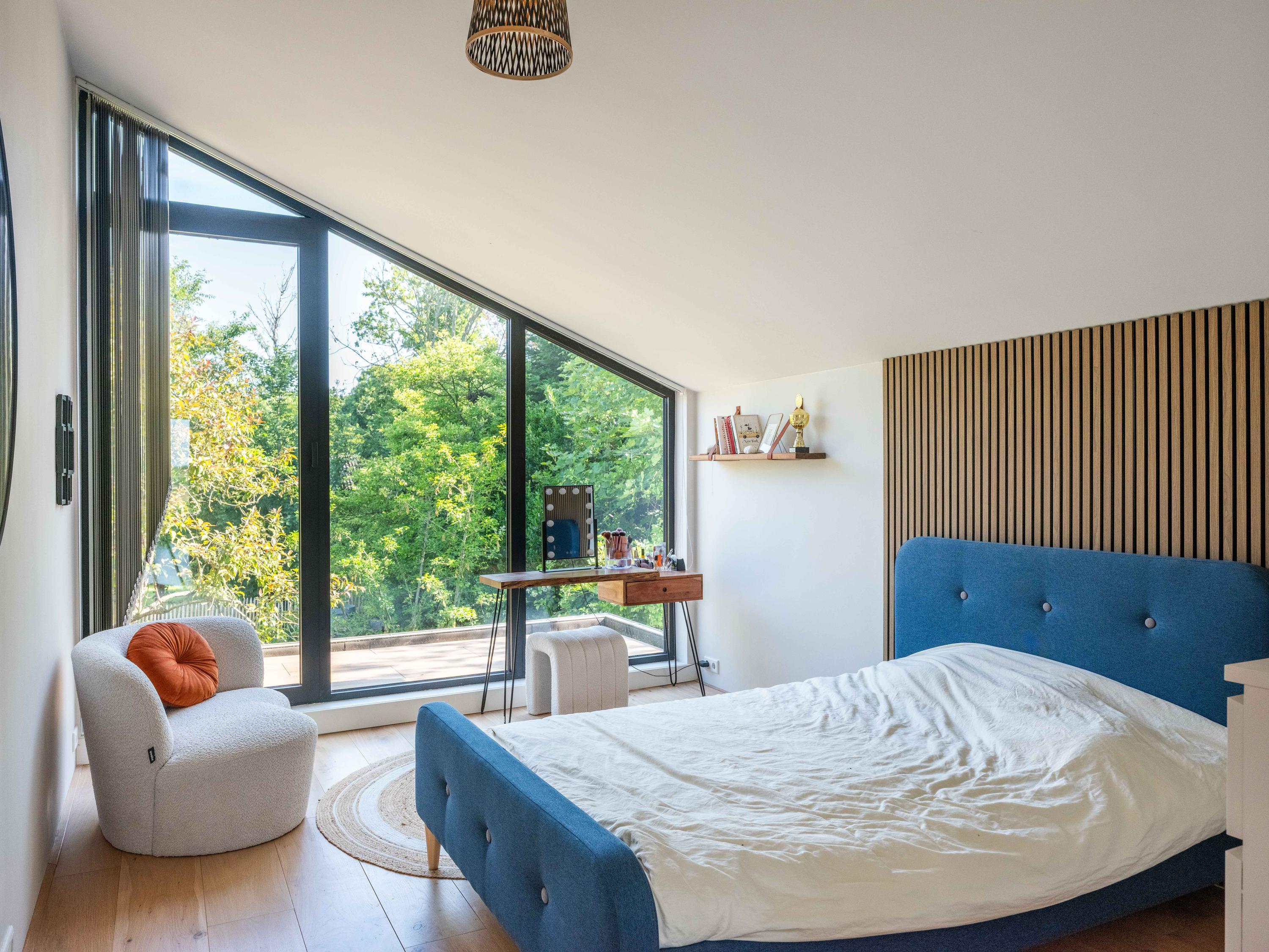 De bovenverdieping is het domein voor de kinderen en hobby's. Naast drie fijne slaapkamers, een tweede badkamer met grote inloopdouche, separaat toilet, en wasruimte, vindt u hier verrassende extra’s. Denk aan een inspirerende werkkamer met weids uitzicht, een serene yogaruimte en een speelse vide waar u zich terugtrekt met een goed boek.