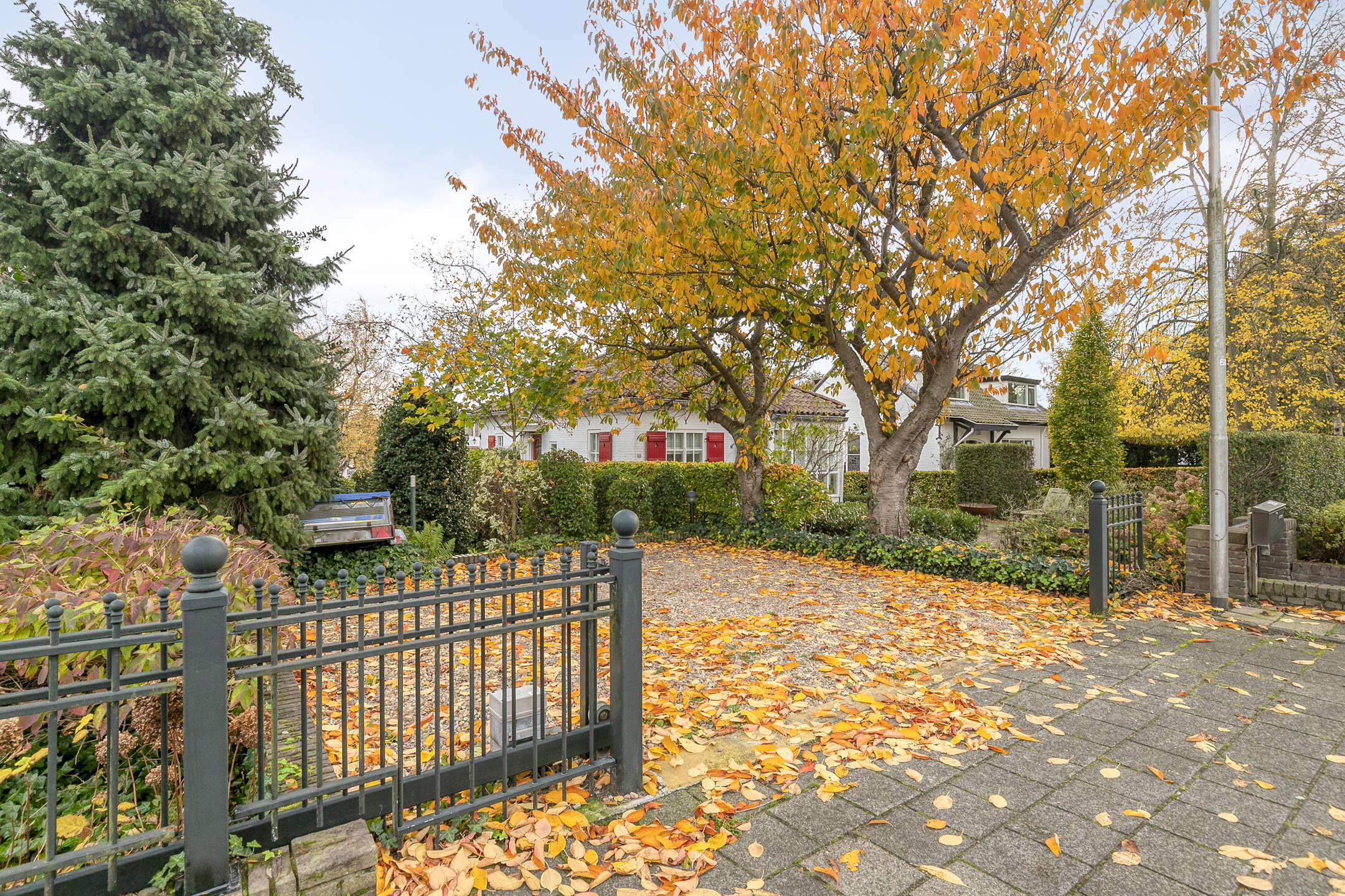 Aan de voorzijde vind je een verzorgde voortuin met eigen oprit waar plek is voor meerdere auto’s. De oprit is voorzien van een volledig op afstand bedienbaar hek.