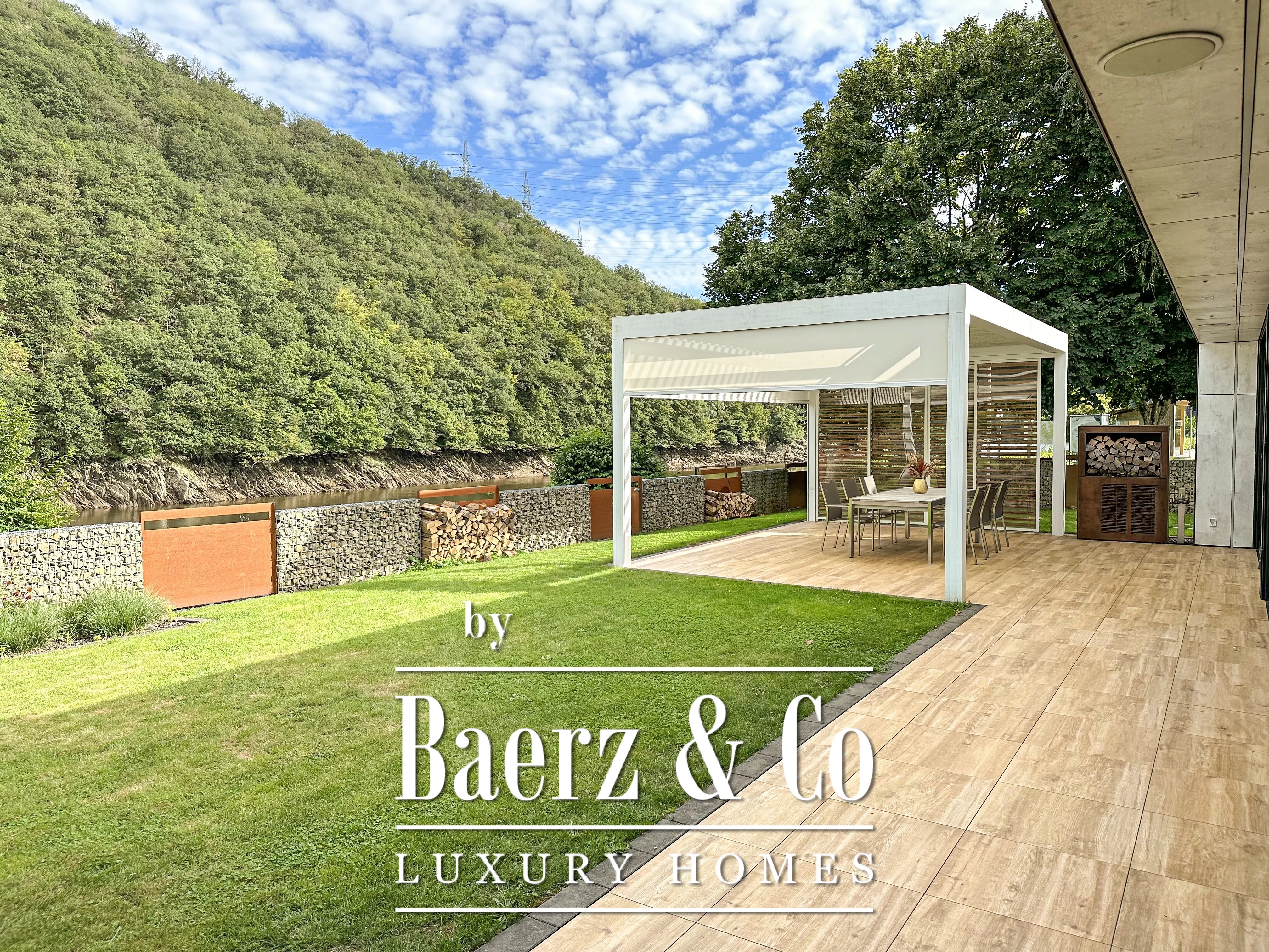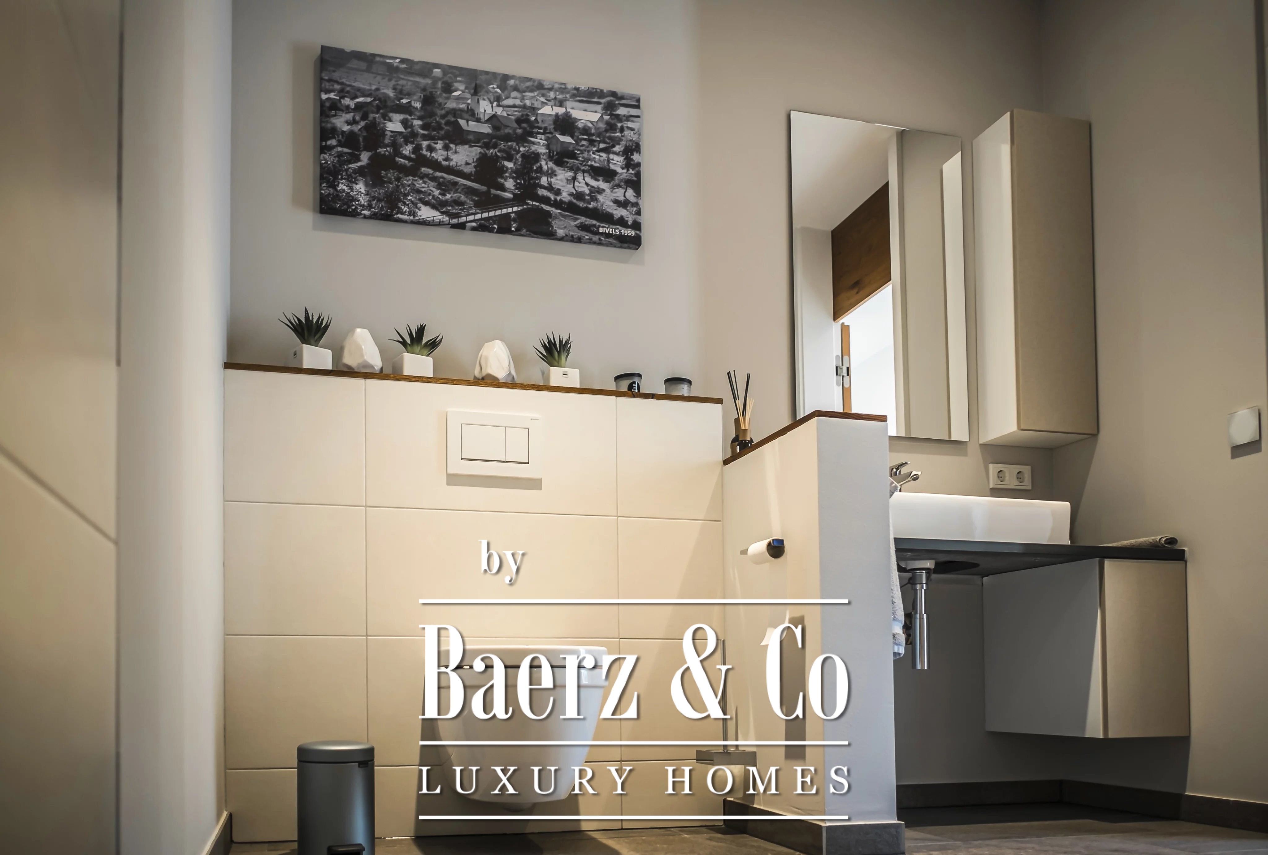 Buiten wacht je een ruime tuin met goed verlichte zones en toegang voor mindervaliden. Extra voorzieningen zijn onder andere een oplaadpunt voor elektrische auto's, dual-flow ventilatie en glasvezel voor snelle internettoegang. Ervaar luxe in deze rustige hoek van Luxemburg.