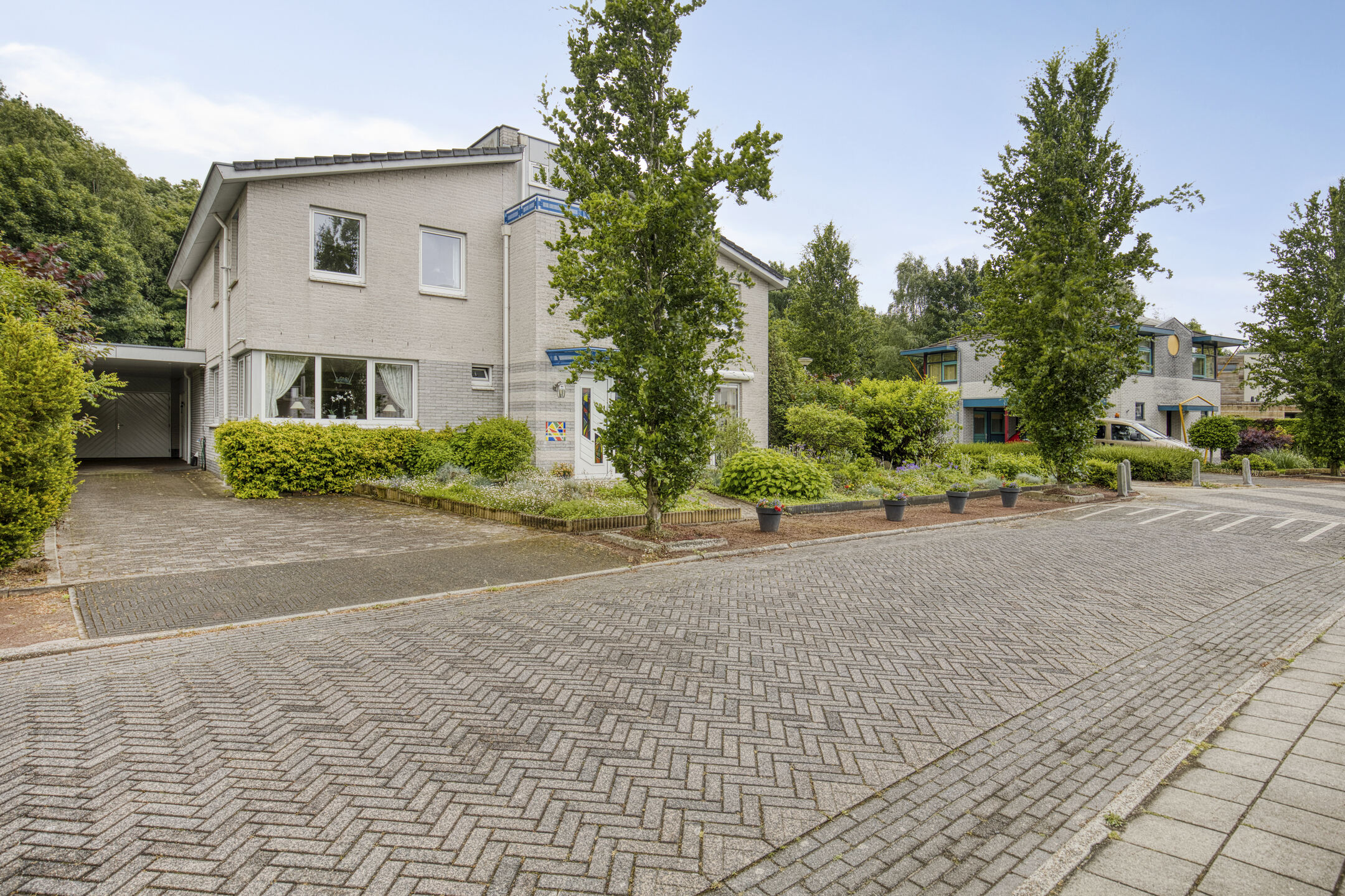 Parkeren: op eigen terrein, onder carport en garage