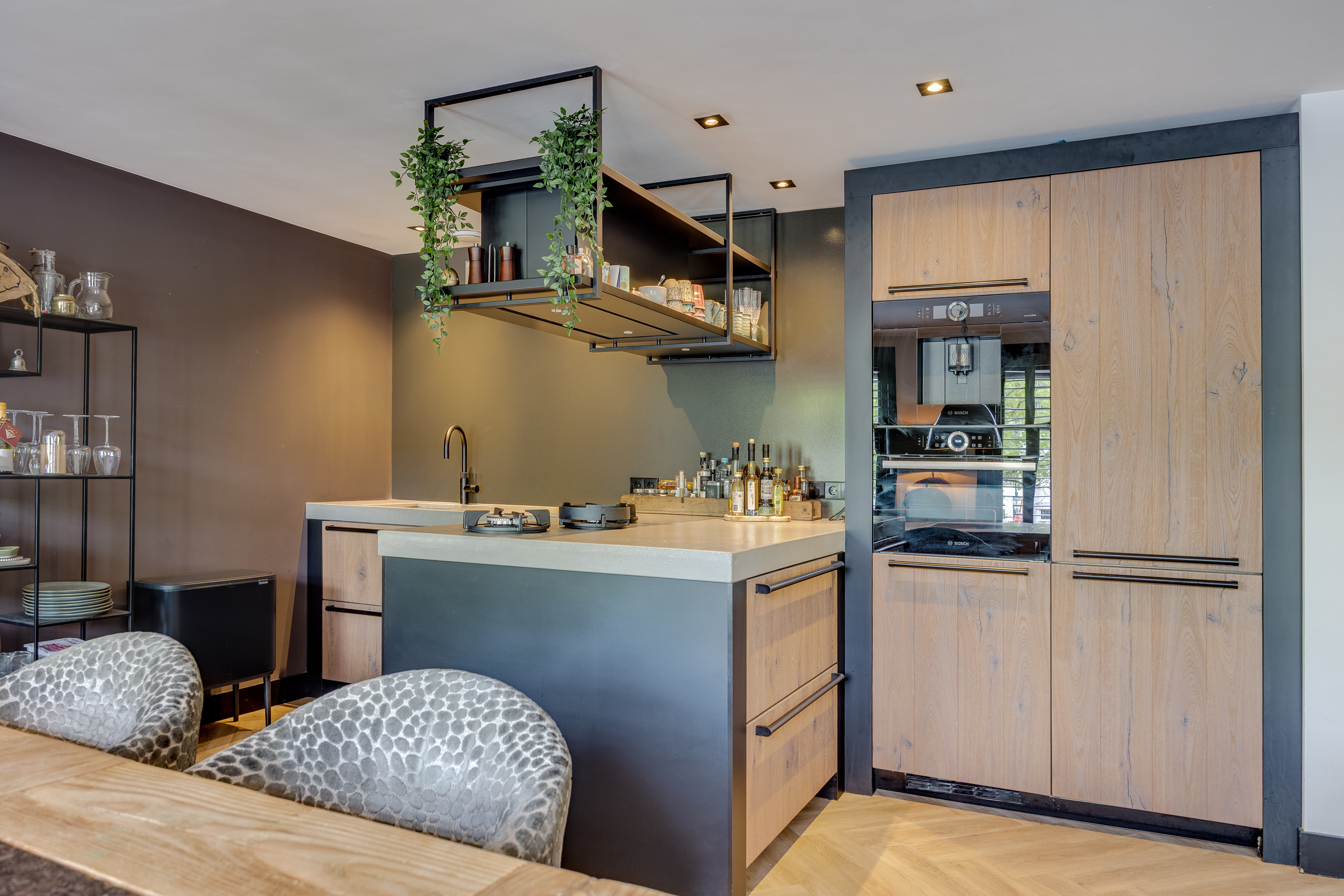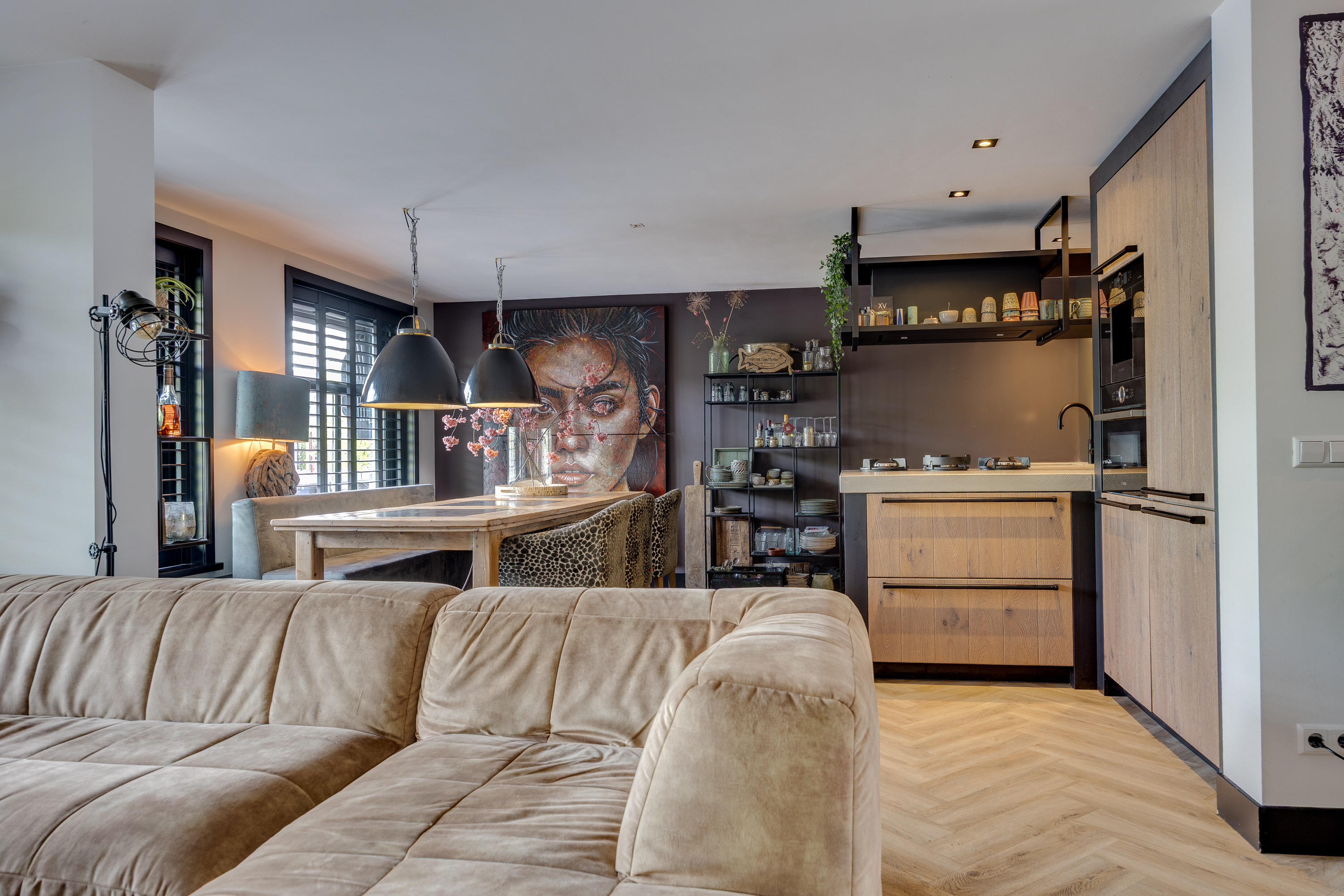 De open woonkeuken (KBK Kerker, 2020) is een droom voor iedere kookliefhebber: uitgevoerd met hoogwaardige inbouwapparatuur, waaronder Pitt Cooking, een combi-oven, combi-magnetron, ingebouwde koffiemachine, Quooker Combi Flex (7 liter), dubbele koelkast en een luxe zelfreinigende plasma-afzuigkap van Wave. Aan de ruime eettafel geniet je hier van lange diners in stijl.