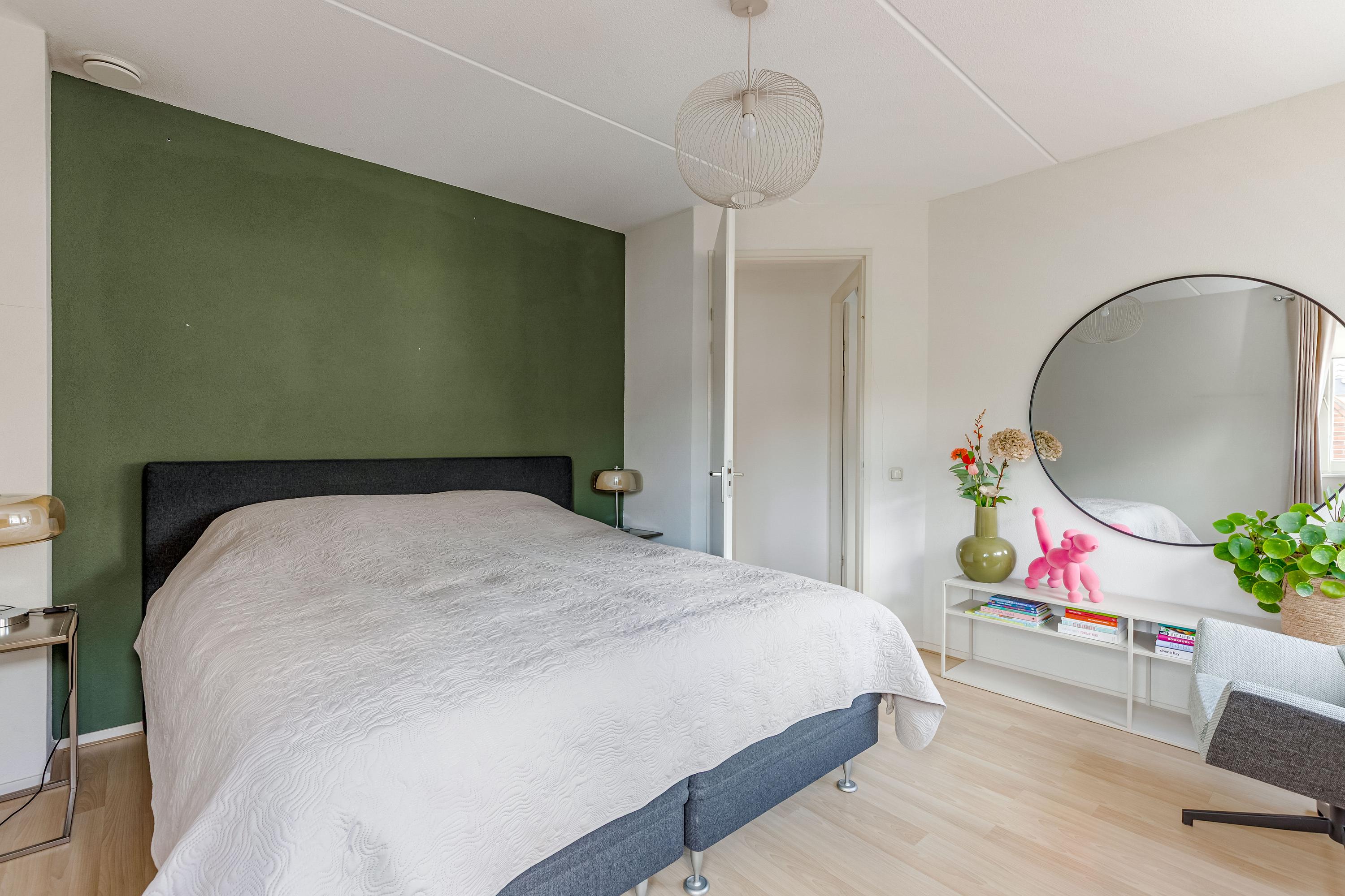 De ruime overloop biedt toegang tot vier goed bemeten slaapkamers en een luxe badkamer. Twee slaapkamers bevinden zich aan de voorzijde, terwijl de derde slaapkamer en de badkamer aan de achterzijde liggen. De stijlvolle badkamer is voorzien van een dubbele wastafel met meubel, ligbad, inloopdouche en een tweede toilet. De vierde slaapkamer is thans in gebruik als inloopkast maar kan indien gewenst worden ingericht als extra slaapkamer of werkruimte.