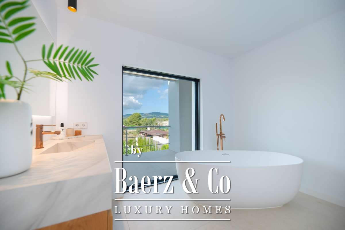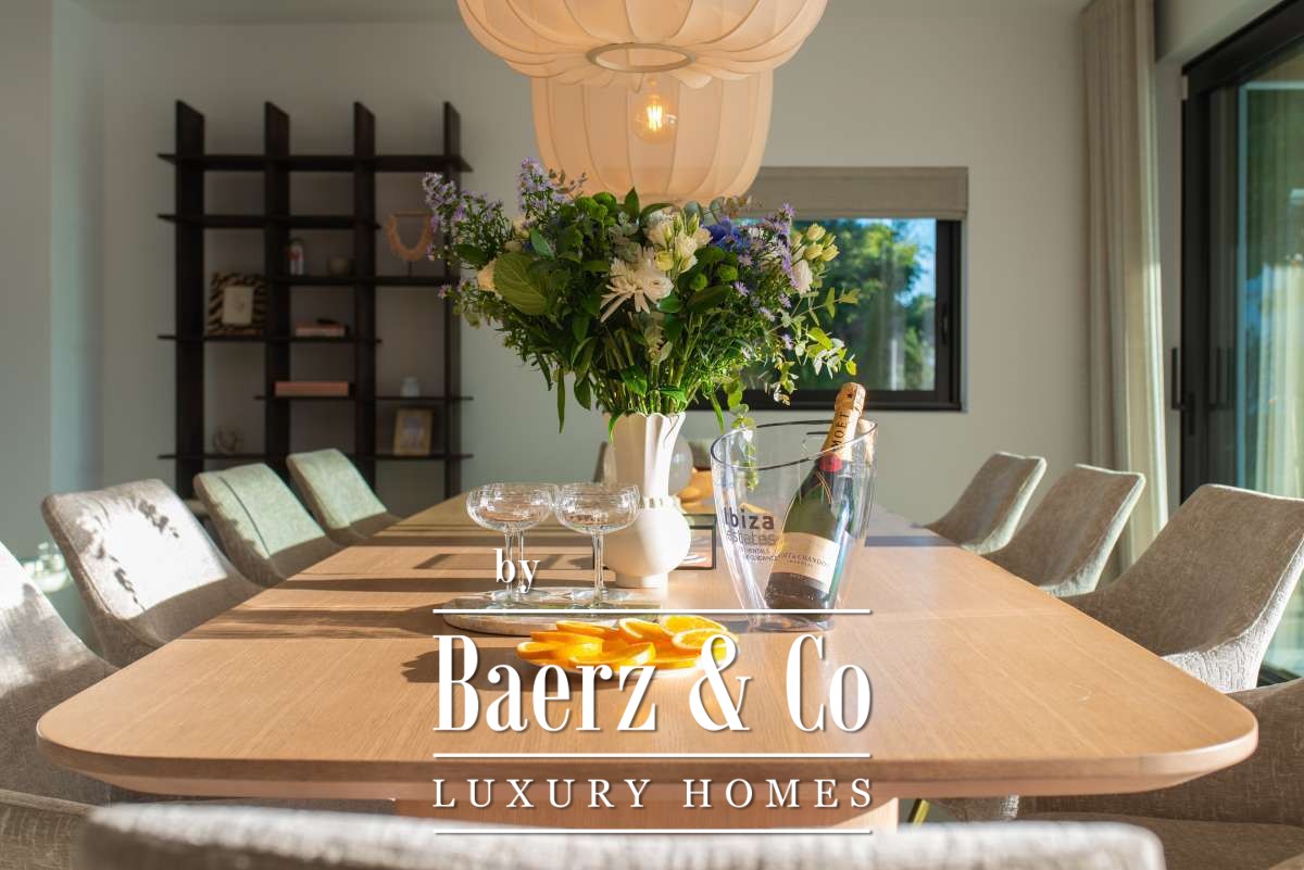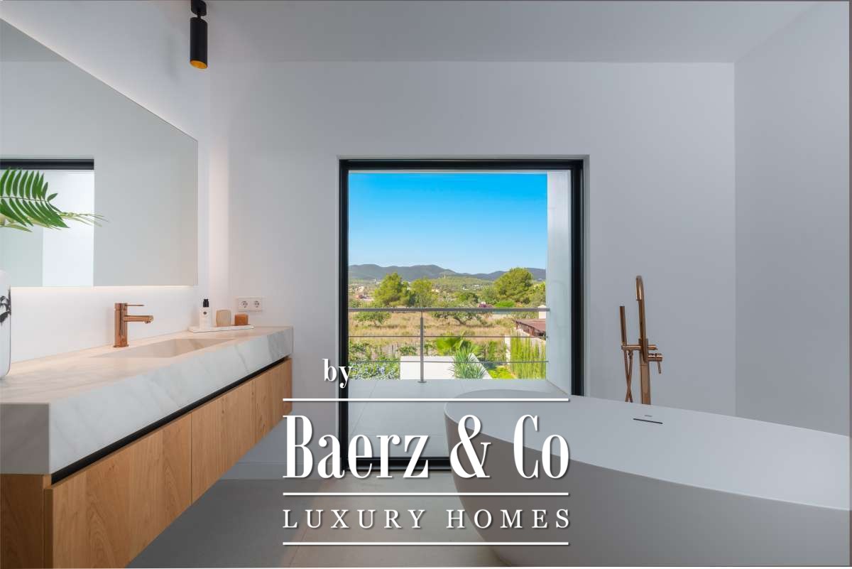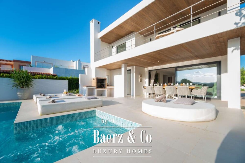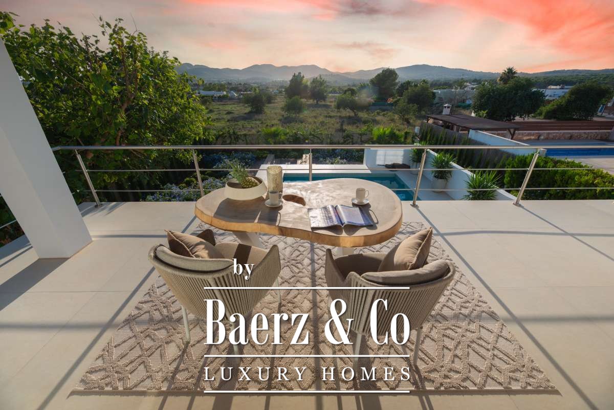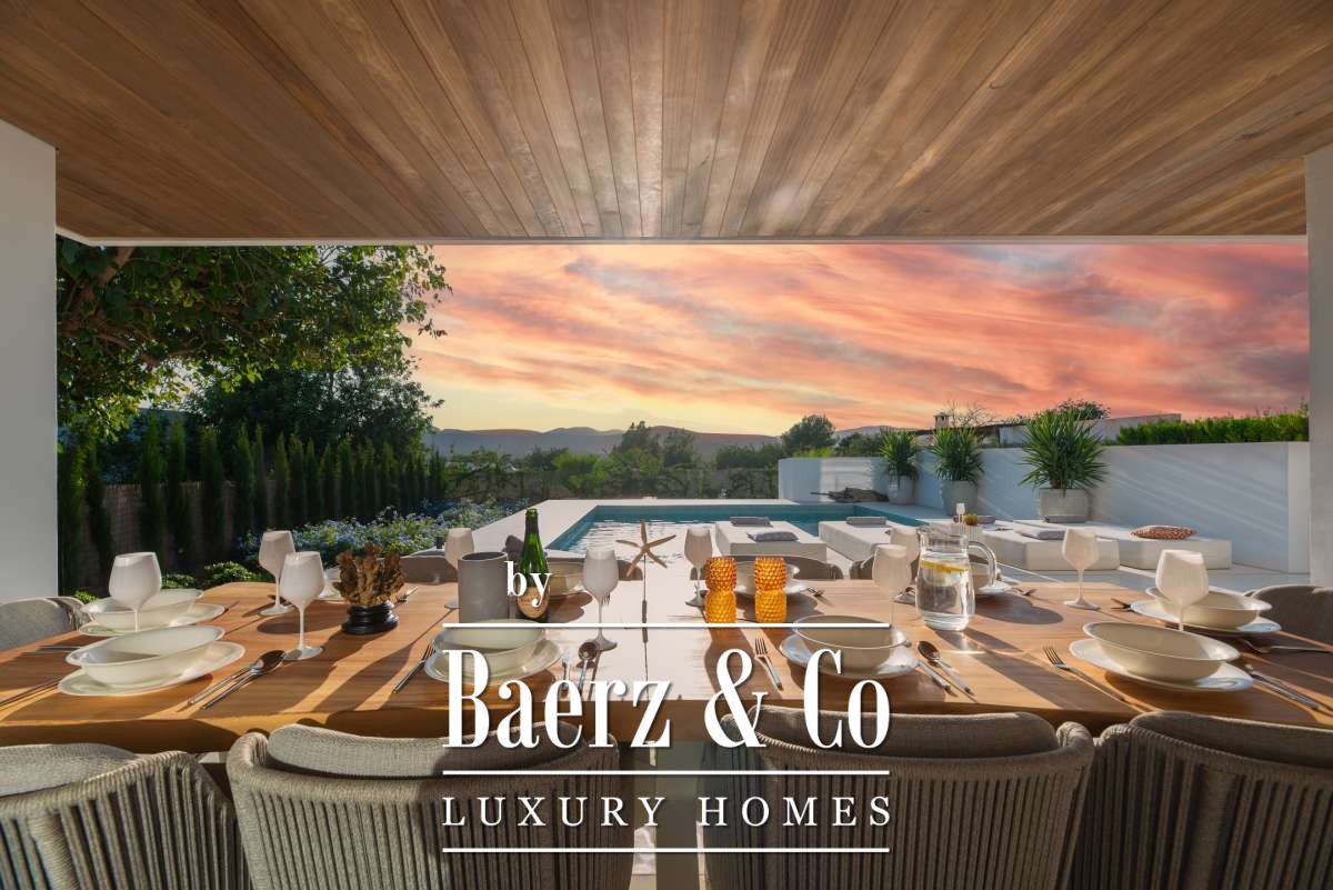 Luxe en elegante 5-slaapkamer villa met verhuur vergunning en privé zwembad in Can RamónDe omgevingOntdek deze prachtige villa in Can Ramón, het perfecte onderkomen voor wie op zoek is naar een luxe en ontspannen levensstijl op Ibiza. Deze woning biedt de perfecte mix van pure elegantie in een rustige omgeving en is makkelijk te bereiken vanuit zowel de charmante lokale dorpjes als het dynamische stadsleven van het eiland. Ibiza-Stad ligt op slechts 10 minuten afstand en biedt een levendige mix van cultuur, uitstekende restaurants en leuke boetiekjes. Daarnaast nodigt het nabijgelegen dorp Jesús u uit om het authentieke Ibiza te ontdekken met gezellige lokale eettentjes en ambachtelijke winkeltjes. De glamoureuze Marina Botafoch biedt een ruime keuze aan toprestaurants en stijlvolle bars, en is perfect voor een avondje uit, op slechts een steenworp afstand. Deze woonlocatie biedt ook een uitstekende verbinding met de haven voor degenen met een passie voor jachten. Als strandliefhebber kunt u uw dagen ontspannen doorbrengen op het goudgele zand van het nabije Talamanca Beach. Bovendien kunt u binnen 30 minuten rijden het familievriendelijke strand van Cala Llonga verkennen, het sfeervolle Cala Nova, of de kristalheldere wateren van Cala San Vicente. Deze villa is een uitstekende uitvalsbasis om te genieten van Ibiza's vele favoriete stranden. Met de luchthaven op slechts 15 minuten rijden, biedt deze accommodatie ongeëvenaard gemak voor frequente reizigers. Villa Can Palau biedt de perfecte luxe woonervaring in een mediterrane chique woonstijl.De villaGeniet van dit prachtig ontworpen luxe object, dat moderne elegantie combineert met bohemian-chique accenten. Dit geweldige huis heeft 5 ruime slaapkamers en 5 luxe badkamers, wat het een ideaal huis maakt voor een groot gezin of voor het ontvangen van gasten, vrienden of familie op regelmatige basis. De lichte en frisse open woon- en eetkamer heeft een moderne grote open haard, die een gezellige sfeer creëert voor onvergetelijke avonden. De eethoek biedt plaats aan 10 gasten, zodat er voldoende ruimte is voor uitgebreide diners en spelavonden. De open moderne, volledig uitgeruste keuken heeft een strakke marmeren keuken bar, ideaal voor ontbijt of een drankje 's avonds met uw gasten. Op de bovenverdieping vindt u de slaapkamers, elk doordacht ontworpen met ingebouwde kasten en en-suite badkamers, versierd met luxe marmeren afwerking, gouden armaturen en inloopdouches. De master slaapkamer valt op met zijn vrijstaande moderne bad, inclusief sereen uitzicht over het platteland. Dit uitzonderlijke eigendom combineert luxe en comfort, waardoor het de perfecte keuze is als uw thuis op Ibiza, het gehele jaar door.De buitenruimtesVanuit de woonkamer stapt u naar buiten op een overdekte patio waar u een grote eettafel vindt, perfect om buiten te dineren met vrienden en familie. Geniet van maaltijden vanaf de ingebouwde barbecue buiten, met uitzicht op uw schitterende privé zwembad, het platteland van Ibiza en de weelderige bergen. Ontspan op een van de ligbedden met kussens of neem een duik in het grote zwembad. Als de avond valt, kunt u samenkomen in de geïntegreerde buitenlounge met een gezellige vuurplaats. Deze tuin biedt eindeloze mogelijkheden voor ontspanning en vermaak. Op de eerste verdieping wacht een groot overdekt balkon met een spectaculair uitzicht over het prachtige landschap van de Balearen. Op de bovenste verdieping ontdekt u een fantastisch dakterras dat een idyllische plek biedt om te zonnebaden, te ontspannen met een boek of zelfs te genieten van een mediterrane siësta. Het pand is volledig omheind, waardoor veiligheid en privacy gegarandeerd zijn. Daarnaast biedt de villa een parkeergarage en een buiten parkeerplaats voor meerdere auto's, wat het gemak en de veiligheid ten goede komt. Ervaar de perfecte mix van comfort en natuur in deze uitzonderlijke villa. Uw ultieme mediterrane luxe levensstijl begint hier.