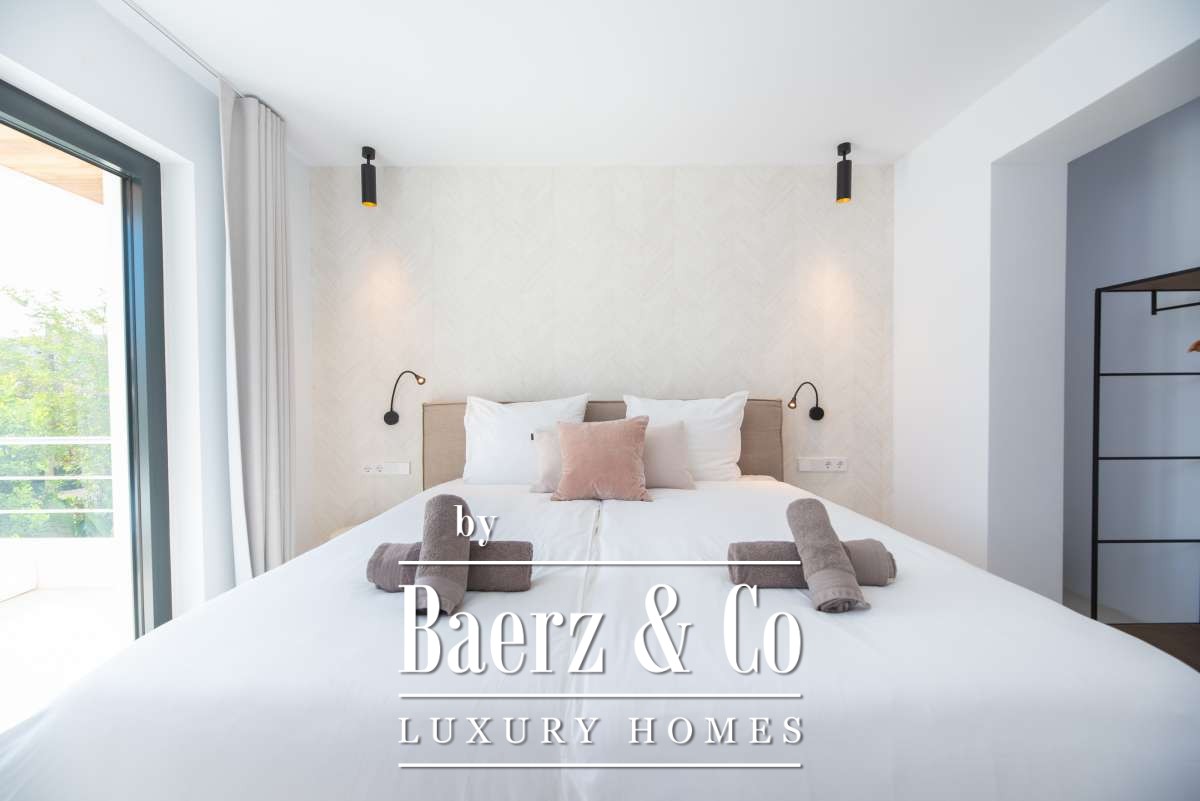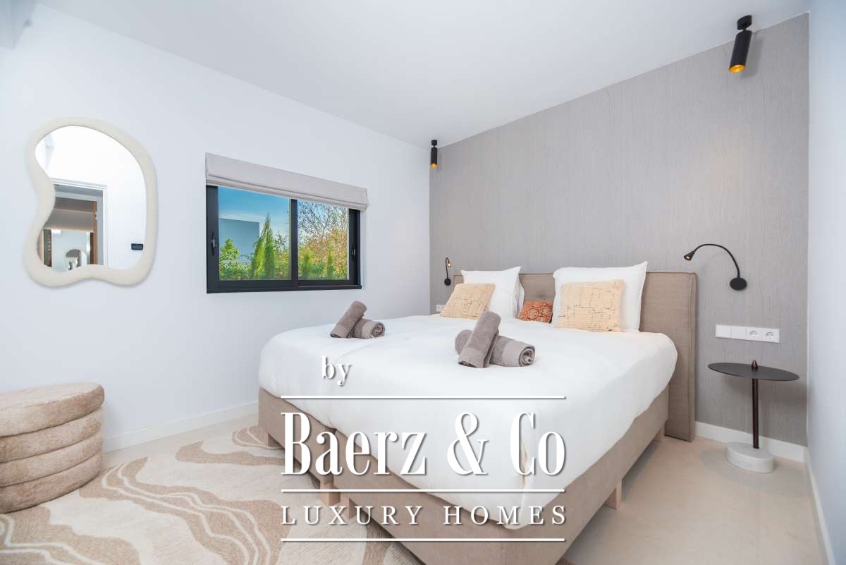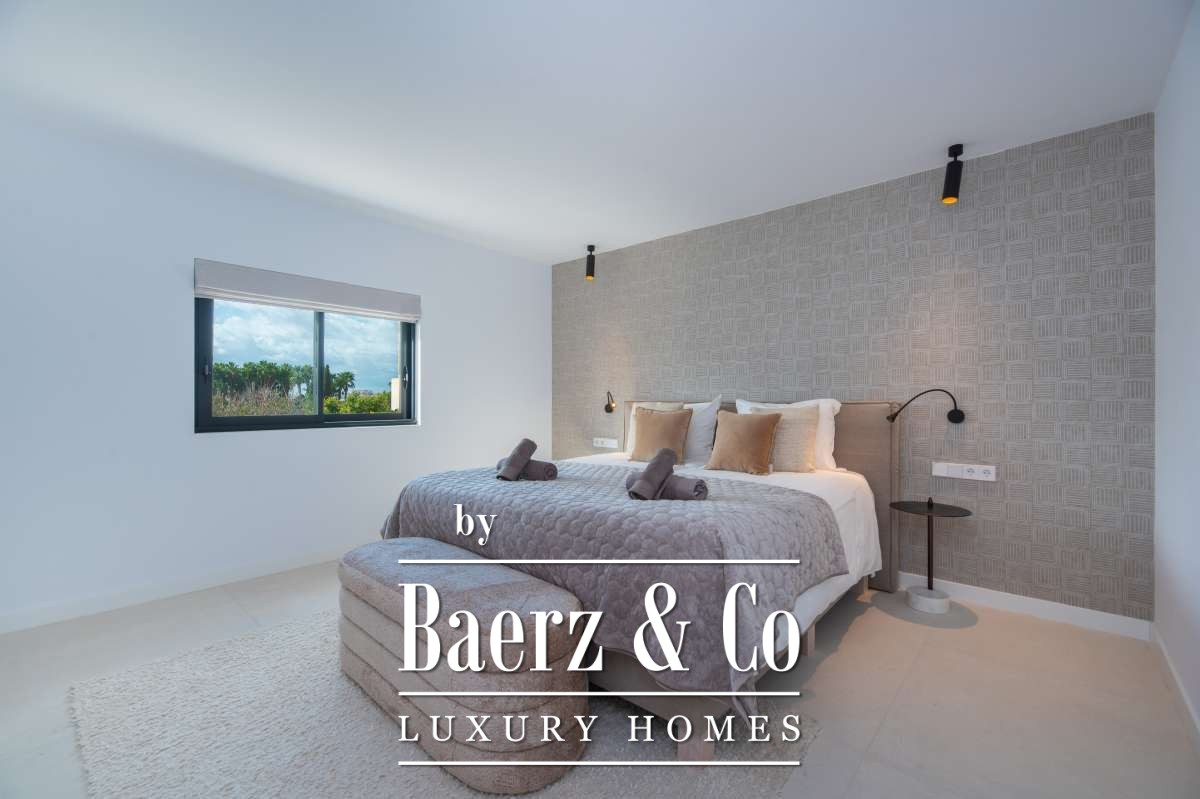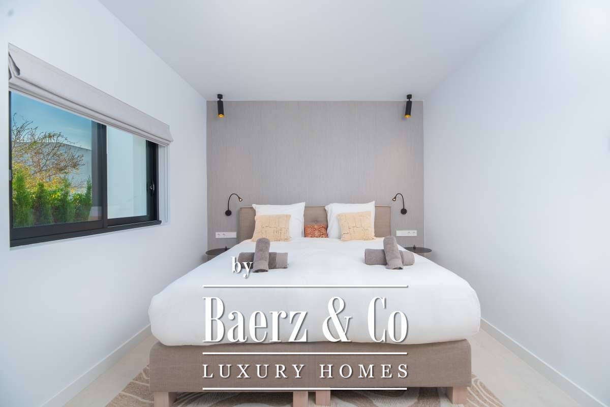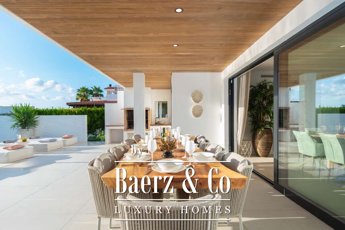 Luxe en elegante 5-slaapkamer villa met verhuur vergunning en privé zwembad in Can RamónDe omgevingOntdek deze prachtige villa in Can Ramón, het perfecte onderkomen voor wie op zoek is naar een luxe en ontspannen levensstijl op Ibiza. Deze woning biedt de perfecte mix van pure elegantie in een rustige omgeving en is makkelijk te bereiken vanuit zowel de charmante lokale dorpjes als het dynamische stadsleven van het eiland. Ibiza-Stad ligt op slechts 10 minuten afstand en biedt een levendige mix van cultuur, uitstekende restaurants en leuke boetiekjes. Daarnaast nodigt het nabijgelegen dorp Jesús u uit om het authentieke Ibiza te ontdekken met gezellige lokale eettentjes en ambachtelijke winkeltjes. De glamoureuze Marina Botafoch biedt een ruime keuze aan toprestaurants en stijlvolle bars, en is perfect voor een avondje uit, op slechts een steenworp afstand. Deze woonlocatie biedt ook een uitstekende verbinding met de haven voor degenen met een passie voor jachten. Als strandliefhebber kunt u uw dagen ontspannen doorbrengen op het goudgele zand van het nabije Talamanca Beach. Bovendien kunt u binnen 30 minuten rijden het familievriendelijke strand van Cala Llonga verkennen, het sfeervolle Cala Nova, of de kristalheldere wateren van Cala San Vicente. Deze villa is een uitstekende uitvalsbasis om te genieten van Ibiza's vele favoriete stranden. Met de luchthaven op slechts 15 minuten rijden, biedt deze accommodatie ongeëvenaard gemak voor frequente reizigers. Villa Can Palau biedt de perfecte luxe woonervaring in een mediterrane chique woonstijl.De villaGeniet van dit prachtig ontworpen luxe object, dat moderne elegantie combineert met bohemian-chique accenten. Dit geweldige huis heeft 5 ruime slaapkamers en 5 luxe badkamers, wat het een ideaal huis maakt voor een groot gezin of voor het ontvangen van gasten, vrienden of familie op regelmatige basis. De lichte en frisse open woon- en eetkamer heeft een moderne grote open haard, die een gezellige sfeer creëert voor onvergetelijke avonden. De eethoek biedt plaats aan 10 gasten, zodat er voldoende ruimte is voor uitgebreide diners en spelavonden. De open moderne, volledig uitgeruste keuken heeft een strakke marmeren keuken bar, ideaal voor ontbijt of een drankje 's avonds met uw gasten. Op de bovenverdieping vindt u de slaapkamers, elk doordacht ontworpen met ingebouwde kasten en en-suite badkamers, versierd met luxe marmeren afwerking, gouden armaturen en inloopdouches. De master slaapkamer valt op met zijn vrijstaande moderne bad, inclusief sereen uitzicht over het platteland. Dit uitzonderlijke eigendom combineert luxe en comfort, waardoor het de perfecte keuze is als uw thuis op Ibiza, het gehele jaar door.De buitenruimtesVanuit de woonkamer stapt u naar buiten op een overdekte patio waar u een grote eettafel vindt, perfect om buiten te dineren met vrienden en familie. Geniet van maaltijden vanaf de ingebouwde barbecue buiten, met uitzicht op uw schitterende privé zwembad, het platteland van Ibiza en de weelderige bergen. Ontspan op een van de ligbedden met kussens of neem een duik in het grote zwembad. Als de avond valt, kunt u samenkomen in de geïntegreerde buitenlounge met een gezellige vuurplaats. Deze tuin biedt eindeloze mogelijkheden voor ontspanning en vermaak. Op de eerste verdieping wacht een groot overdekt balkon met een spectaculair uitzicht over het prachtige landschap van de Balearen. Op de bovenste verdieping ontdekt u een fantastisch dakterras dat een idyllische plek biedt om te zonnebaden, te ontspannen met een boek of zelfs te genieten van een mediterrane siësta. Het pand is volledig omheind, waardoor veiligheid en privacy gegarandeerd zijn. Daarnaast biedt de villa een parkeergarage en een buiten parkeerplaats voor meerdere auto's, wat het gemak en de veiligheid ten goede komt. Ervaar de perfecte mix van comfort en natuur in deze uitzonderlijke villa. Uw ultieme mediterrane luxe levensstijl begint hier.