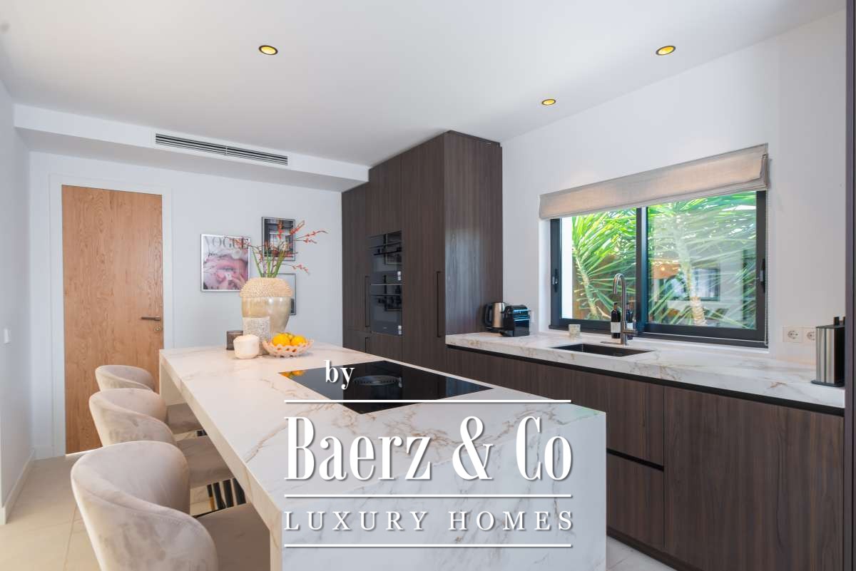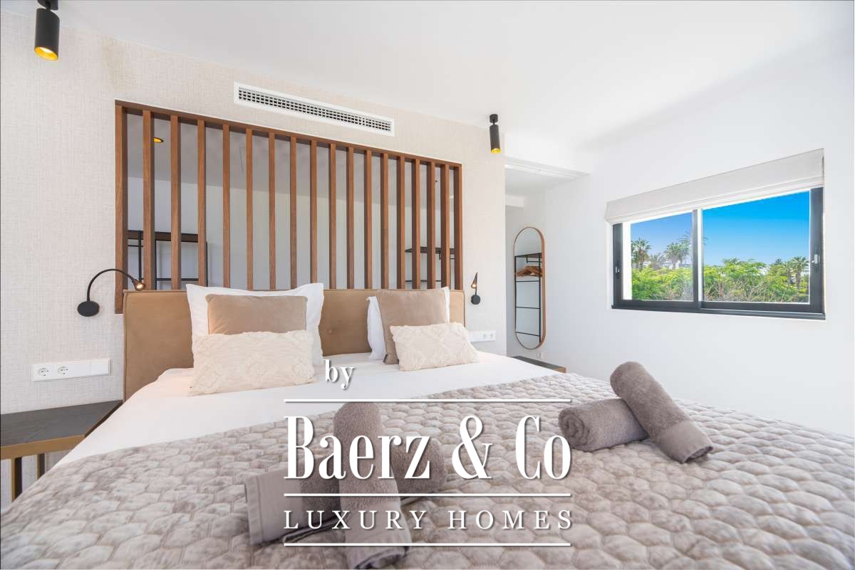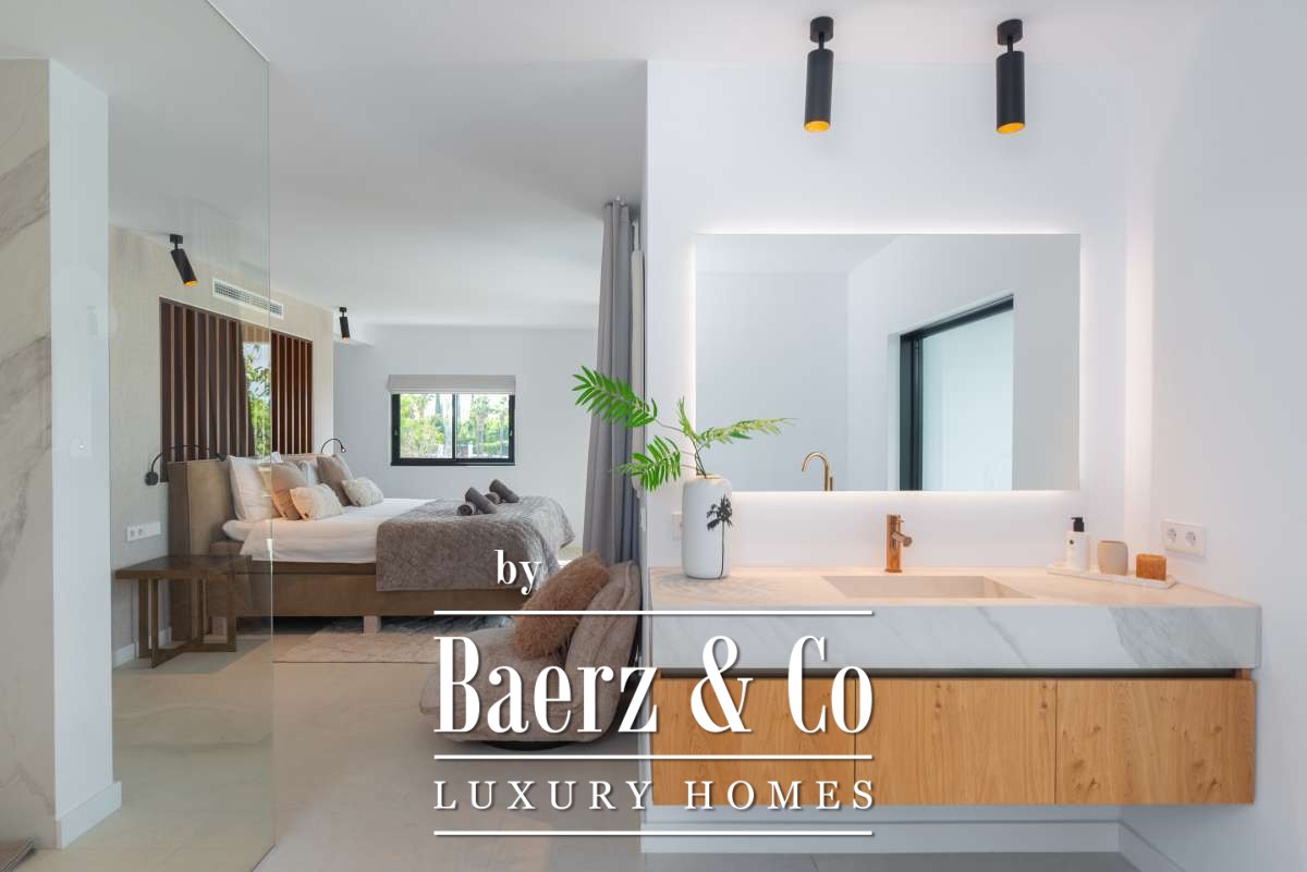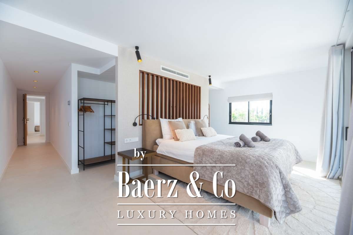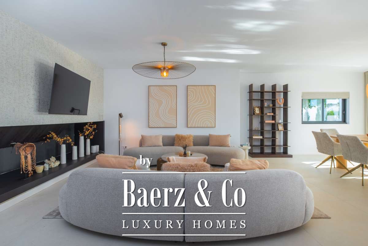 Luxe en elegante 5-slaapkamer villa met verhuur vergunning en privé zwembad in Can RamónDe omgevingOntdek deze prachtige villa in Can Ramón, het perfecte onderkomen voor wie op zoek is naar een luxe en ontspannen levensstijl op Ibiza. Deze woning biedt de perfecte mix van pure elegantie in een rustige omgeving en is makkelijk te bereiken vanuit zowel de charmante lokale dorpjes als het dynamische stadsleven van het eiland. Ibiza-Stad ligt op slechts 10 minuten afstand en biedt een levendige mix van cultuur, uitstekende restaurants en leuke boetiekjes. Daarnaast nodigt het nabijgelegen dorp Jesús u uit om het authentieke Ibiza te ontdekken met gezellige lokale eettentjes en ambachtelijke winkeltjes. De glamoureuze Marina Botafoch biedt een ruime keuze aan toprestaurants en stijlvolle bars, en is perfect voor een avondje uit, op slechts een steenworp afstand. Deze woonlocatie biedt ook een uitstekende verbinding met de haven voor degenen met een passie voor jachten. Als strandliefhebber kunt u uw dagen ontspannen doorbrengen op het goudgele zand van het nabije Talamanca Beach. Bovendien kunt u binnen 30 minuten rijden het familievriendelijke strand van Cala Llonga verkennen, het sfeervolle Cala Nova, of de kristalheldere wateren van Cala San Vicente. Deze villa is een uitstekende uitvalsbasis om te genieten van Ibiza's vele favoriete stranden. Met de luchthaven op slechts 15 minuten rijden, biedt deze accommodatie ongeëvenaard gemak voor frequente reizigers. Villa Can Palau biedt de perfecte luxe woonervaring in een mediterrane chique woonstijl.De villaGeniet van dit prachtig ontworpen luxe object, dat moderne elegantie combineert met bohemian-chique accenten. Dit geweldige huis heeft 5 ruime slaapkamers en 5 luxe badkamers, wat het een ideaal huis maakt voor een groot gezin of voor het ontvangen van gasten, vrienden of familie op regelmatige basis. De lichte en frisse open woon- en eetkamer heeft een moderne grote open haard, die een gezellige sfeer creëert voor onvergetelijke avonden. De eethoek biedt plaats aan 10 gasten, zodat er voldoende ruimte is voor uitgebreide diners en spelavonden. De open moderne, volledig uitgeruste keuken heeft een strakke marmeren keuken bar, ideaal voor ontbijt of een drankje 's avonds met uw gasten. Op de bovenverdieping vindt u de slaapkamers, elk doordacht ontworpen met ingebouwde kasten en en-suite badkamers, versierd met luxe marmeren afwerking, gouden armaturen en inloopdouches. De master slaapkamer valt op met zijn vrijstaande moderne bad, inclusief sereen uitzicht over het platteland. Dit uitzonderlijke eigendom combineert luxe en comfort, waardoor het de perfecte keuze is als uw thuis op Ibiza, het gehele jaar door.De buitenruimtesVanuit de woonkamer stapt u naar buiten op een overdekte patio waar u een grote eettafel vindt, perfect om buiten te dineren met vrienden en familie. Geniet van maaltijden vanaf de ingebouwde barbecue buiten, met uitzicht op uw schitterende privé zwembad, het platteland van Ibiza en de weelderige bergen. Ontspan op een van de ligbedden met kussens of neem een duik in het grote zwembad. Als de avond valt, kunt u samenkomen in de geïntegreerde buitenlounge met een gezellige vuurplaats. Deze tuin biedt eindeloze mogelijkheden voor ontspanning en vermaak. Op de eerste verdieping wacht een groot overdekt balkon met een spectaculair uitzicht over het prachtige landschap van de Balearen. Op de bovenste verdieping ontdekt u een fantastisch dakterras dat een idyllische plek biedt om te zonnebaden, te ontspannen met een boek of zelfs te genieten van een mediterrane siësta. Het pand is volledig omheind, waardoor veiligheid en privacy gegarandeerd zijn. Daarnaast biedt de villa een parkeergarage en een buiten parkeerplaats voor meerdere auto's, wat het gemak en de veiligheid ten goede komt. Ervaar de perfecte mix van comfort en natuur in deze uitzonderlijke villa. Uw ultieme mediterrane luxe levensstijl begint hier.