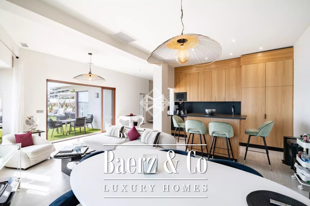 Appartement Cannes biedt een verfijnde balans tussen mediterrane ontspanning en doordachte luxe, gelegen in de gezinsvriendelijke enclave Moure Rouge. Deze volledig gerenoveerde residentie met vijf slaapkamers beslaat 166 m² en ligt direct aan de zee; vanaf het verhoogde terras met jacuzzi zijn er weidse uitzichten over het water. Het woongenot wordt bepaald door een lichte woon- en eetkamer met haard, waarbij het natuurlijke licht de aandacht naar de zee trekt. De keuken, afgewerkt op hoog niveau, sluit intuïtief aan bij het sociale hart van de woning.