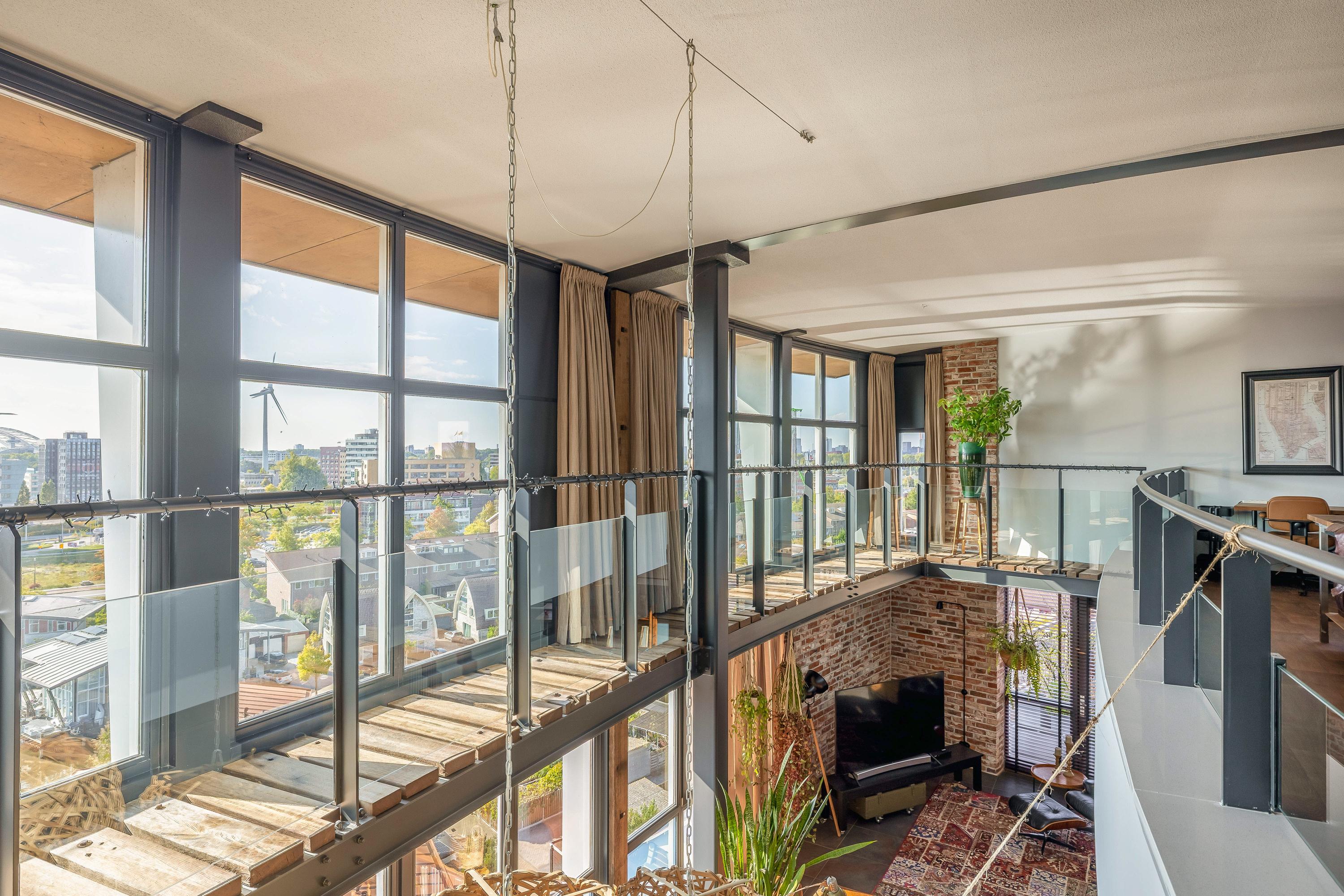 Wonen op het hoogste niveau. Dit unieke dubbel penthouse (251 m²) beslaat de 8e en 9e verdieping en biedt ultieme rust, luxe en privacy – zonder directe buren. De 7 meter hoge raampartij trakteert je op een adembenemend uitzicht over de skyline van Rotterdam, de Brienenoordbrug en De Kuip.