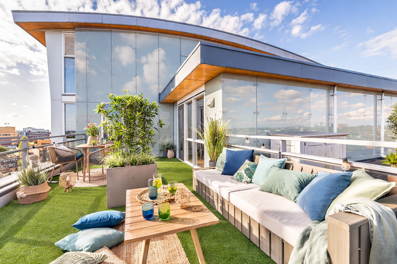 Buiten wordt binnen: maar liefst 98 m² aan zonnige dakterrassen op het zuidoosten én zuidwesten garanderen zon van ’s ochtends vroeg tot zonsondergang.