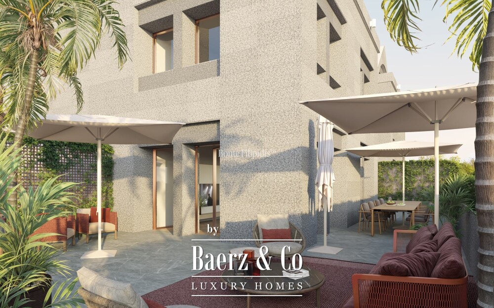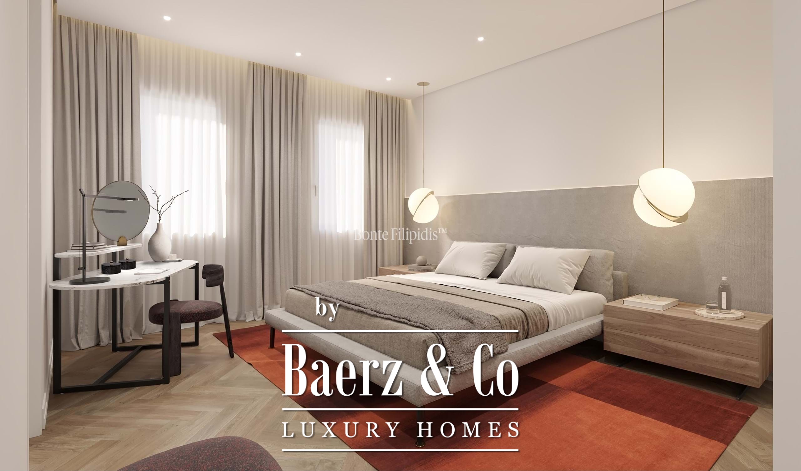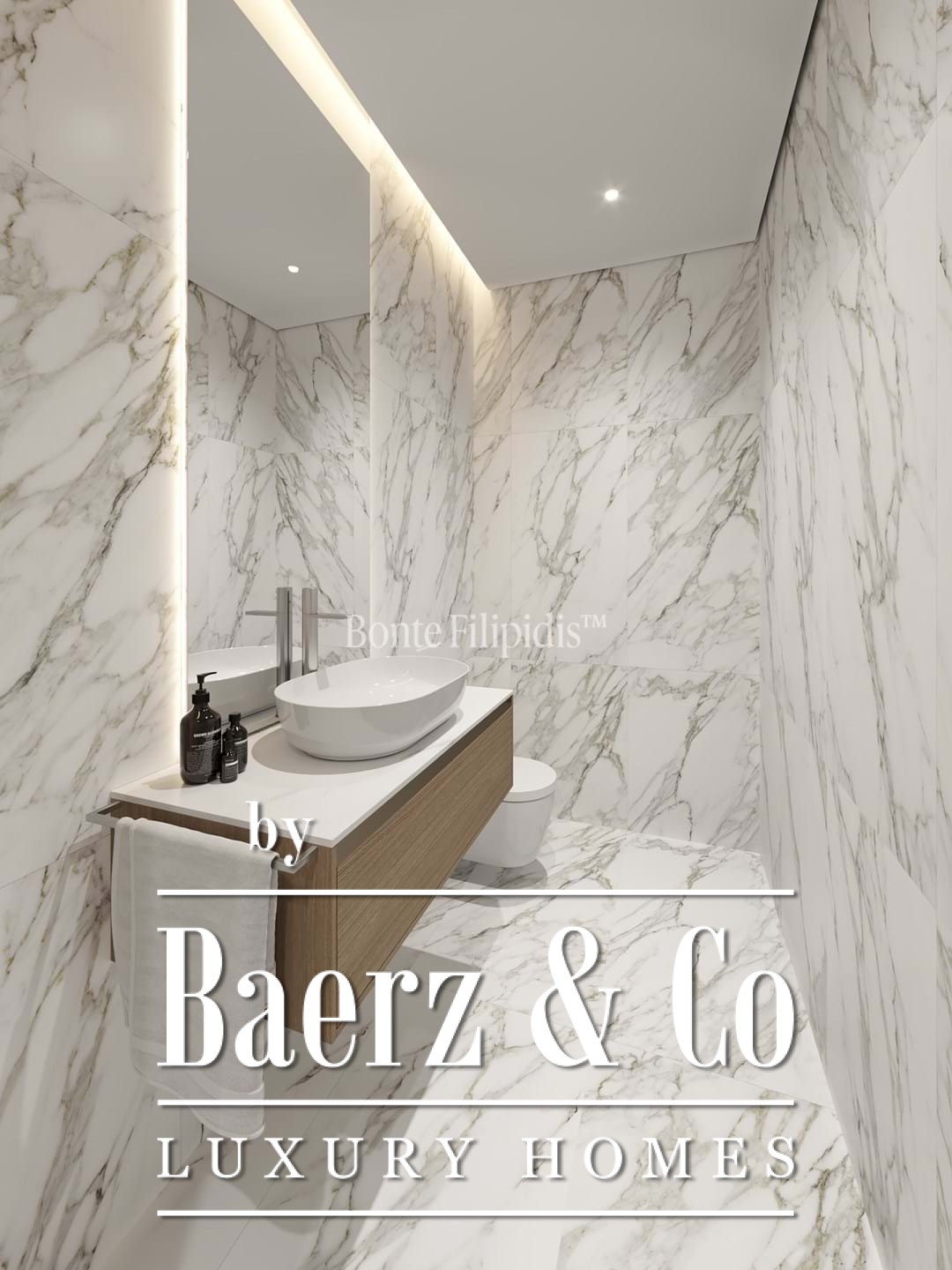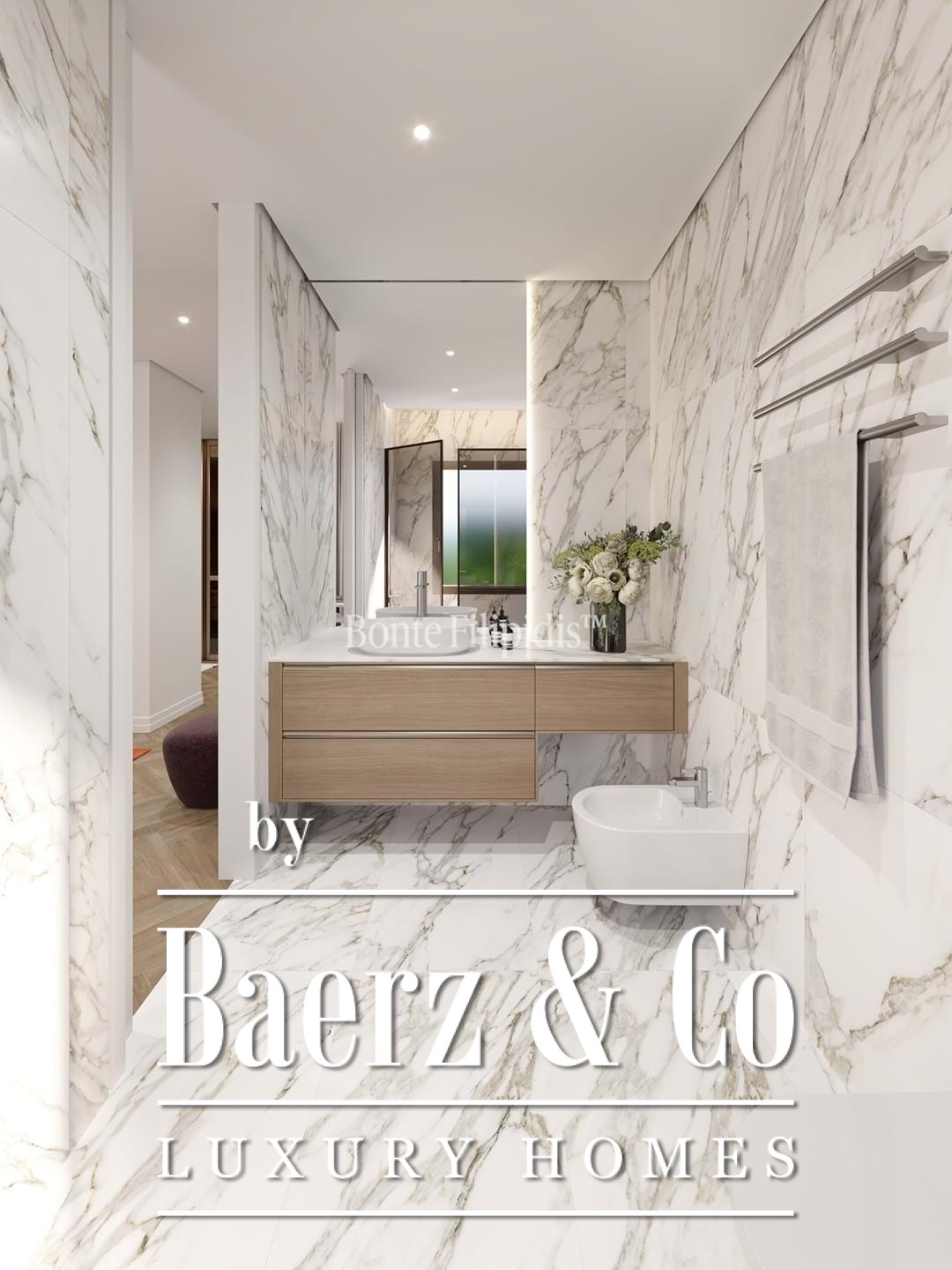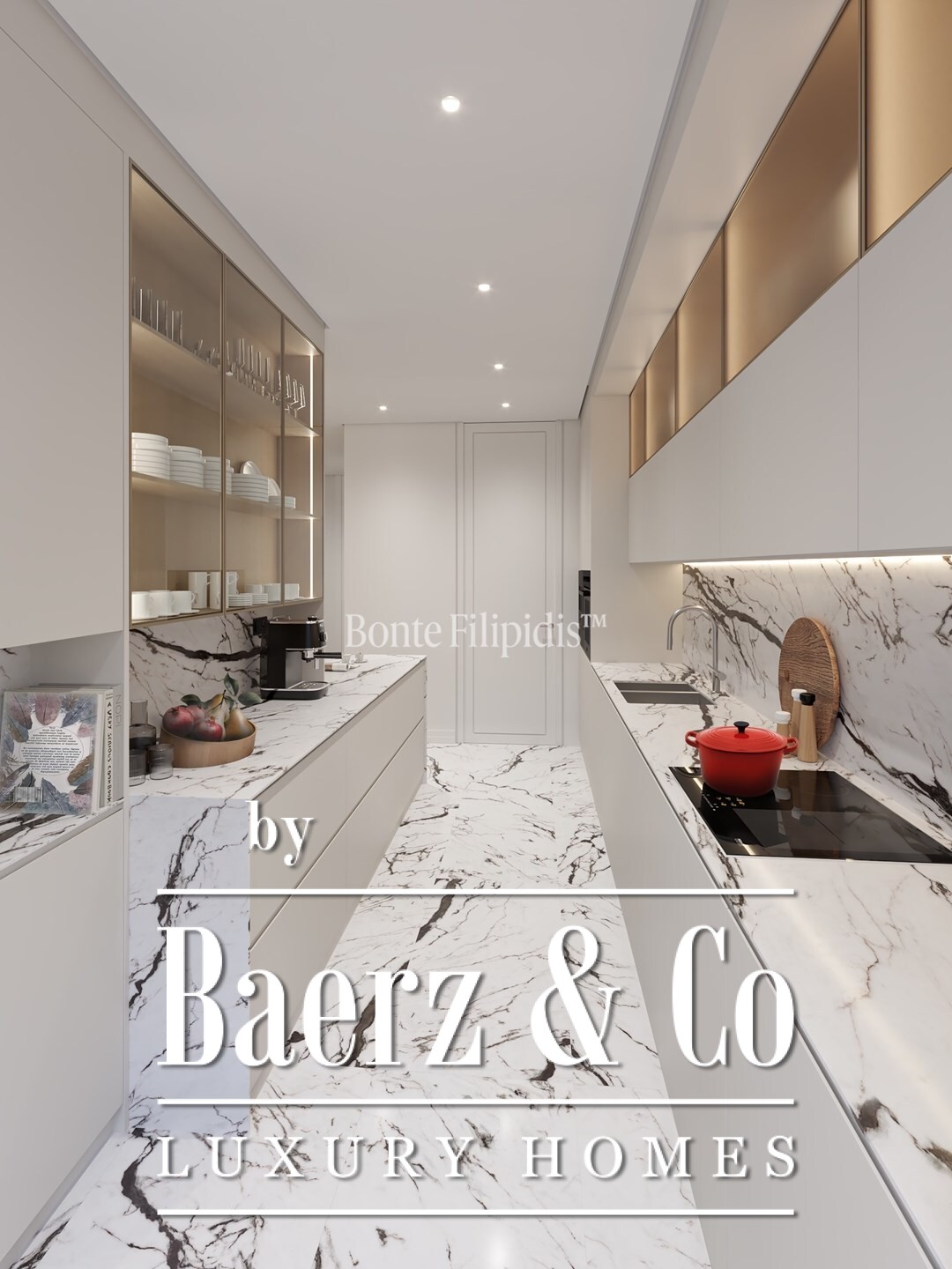 De keuken is voorzien van maatwerk kasten, geïntegreerde apparatuur en marmeren afwerkingen, waarbij functionaliteit moeiteloos wordt gecombineerd met ingetogen elegantie. In het privé-gedeelte bieden drie slaapkamers veel comfort, waaronder een suite met inloopkast. Elk van de badkamers is uitgerust met hedendaagse voorzieningen en marmer, hetgeen het consequente gebruik van hoogwaardige materialen onderstreept.