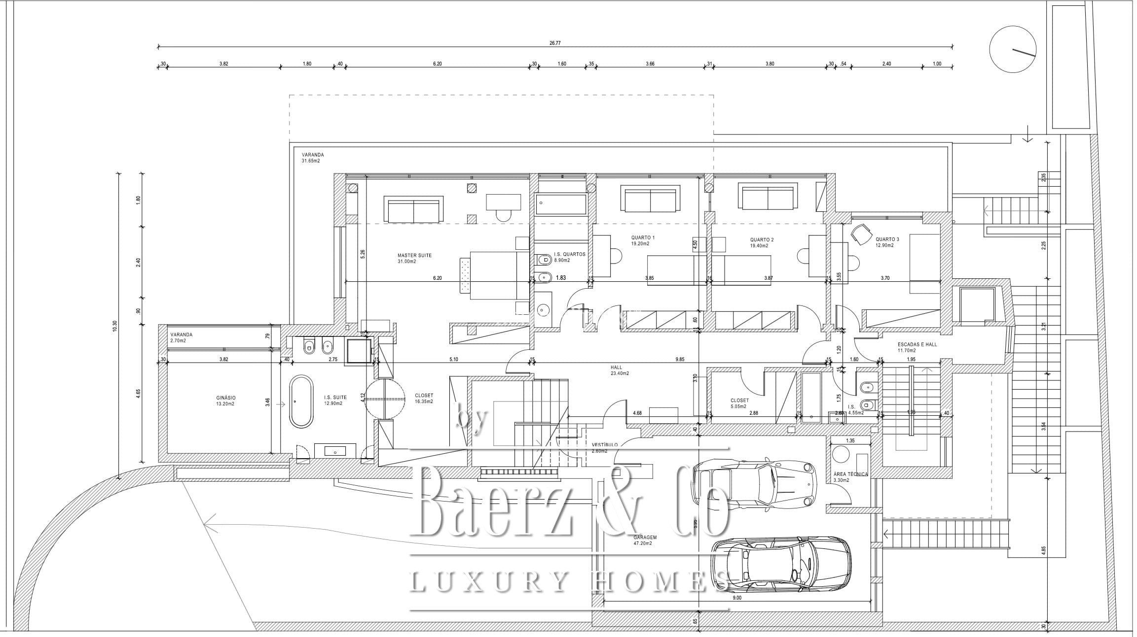 De centrale woon- en eetkamer meet 100 m² en is onderverdeeld in drie subtiele zones, elk met toegang tot een panoramisch, rondom gelegen terras. Deze ruimtes sluiten aan op een royale keuken en ontbijtruimte, ideaal voor zowel ontspannen gezinsleven als stijlvolle ontvangsten. Het tuinniveau introduceert een lichte pool lounge met directe toegang tot de aangelegde tuin en een privézwembad, wat bijdraagt aan het karakteristieke samenspel tussen binnen en buiten.