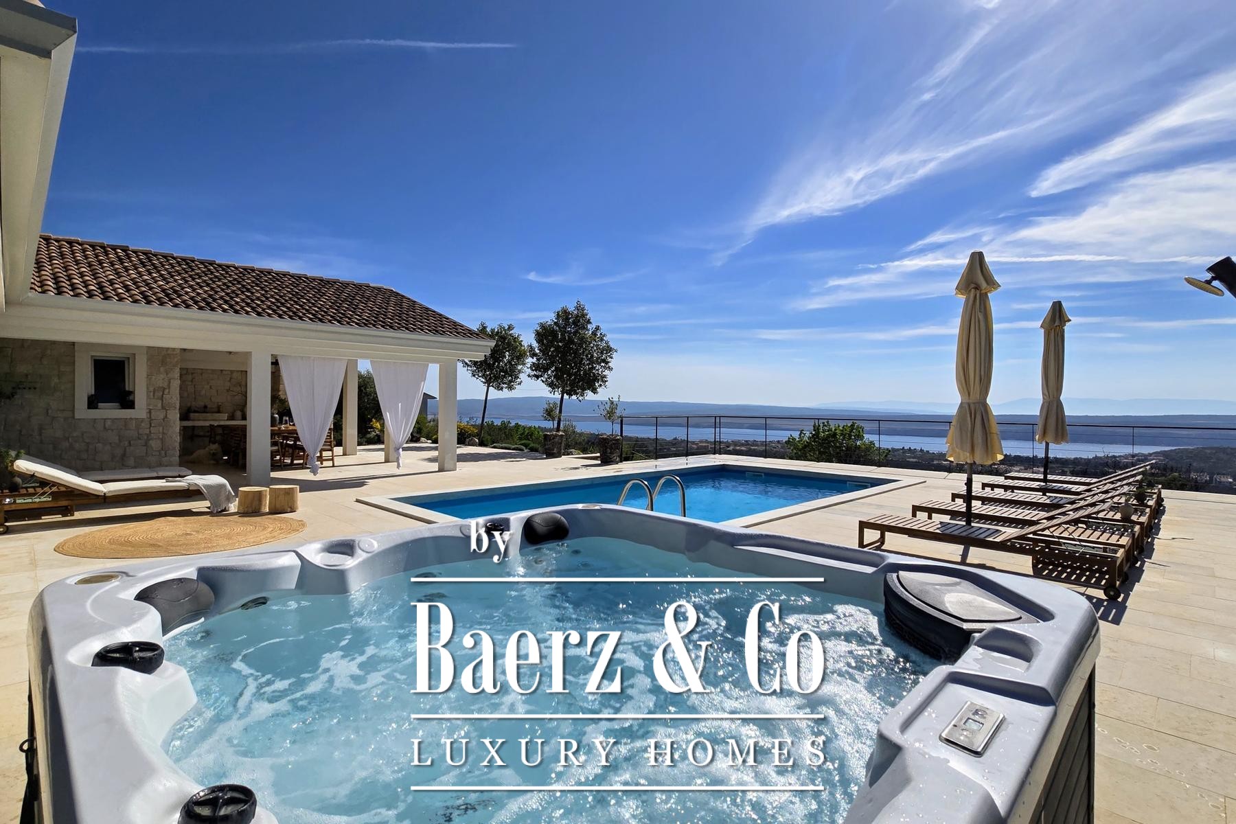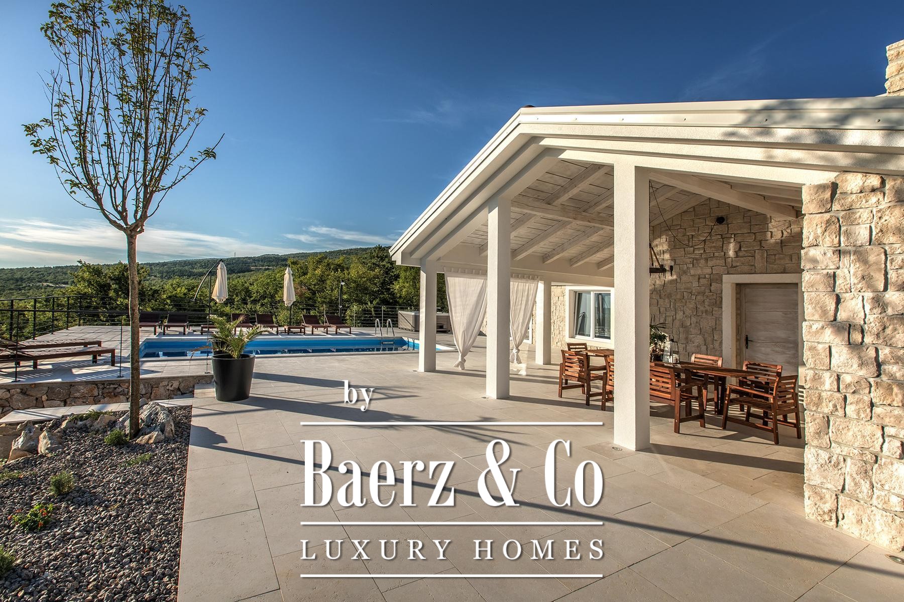 Het buitenleven wordt gekenmerkt door mediterrane beplanting op een volledig omheind perceel van 700 m² met olijf-, lavendel-, rozemarijn- en laurierstruiken. Het verwarmde zwembad van 38 m², de jacuzzi voor zes personen en een massieve houten eettafel nodigen uit tot ontspannen en samenkomen. De stenen barbecue en zonneweide vergroten de gastvrije ambiance van de villa. Met de zee op slechts 900 meter afstand, biedt dit object een zeldzame rust midden in dennen- en eikenbossen. Met een gecertificeerde vijfsterren-verhuurstatus en onbezwaard eigendom is deze stenen villa Crikvenica een uitzonderlijk toevluchtsoord en een waardevolle investering.
