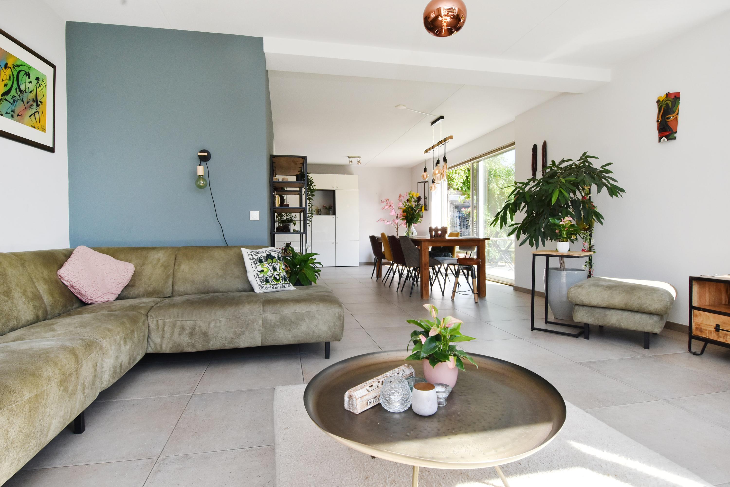 Vanuit de ruime hal kom je de sfeervolle, lichte living binnen. Deze vormt door de grote schuifpui een prachtige verbinding met de zonnige tuin. De tuin is recent fraai aangelegd en voorzien van veel groen, een gazon een zonnig terras, een veranda en overkapping: een heerlijke plek om het hele jaar door te genieten en relaxen. De tuin grenst aan het water.