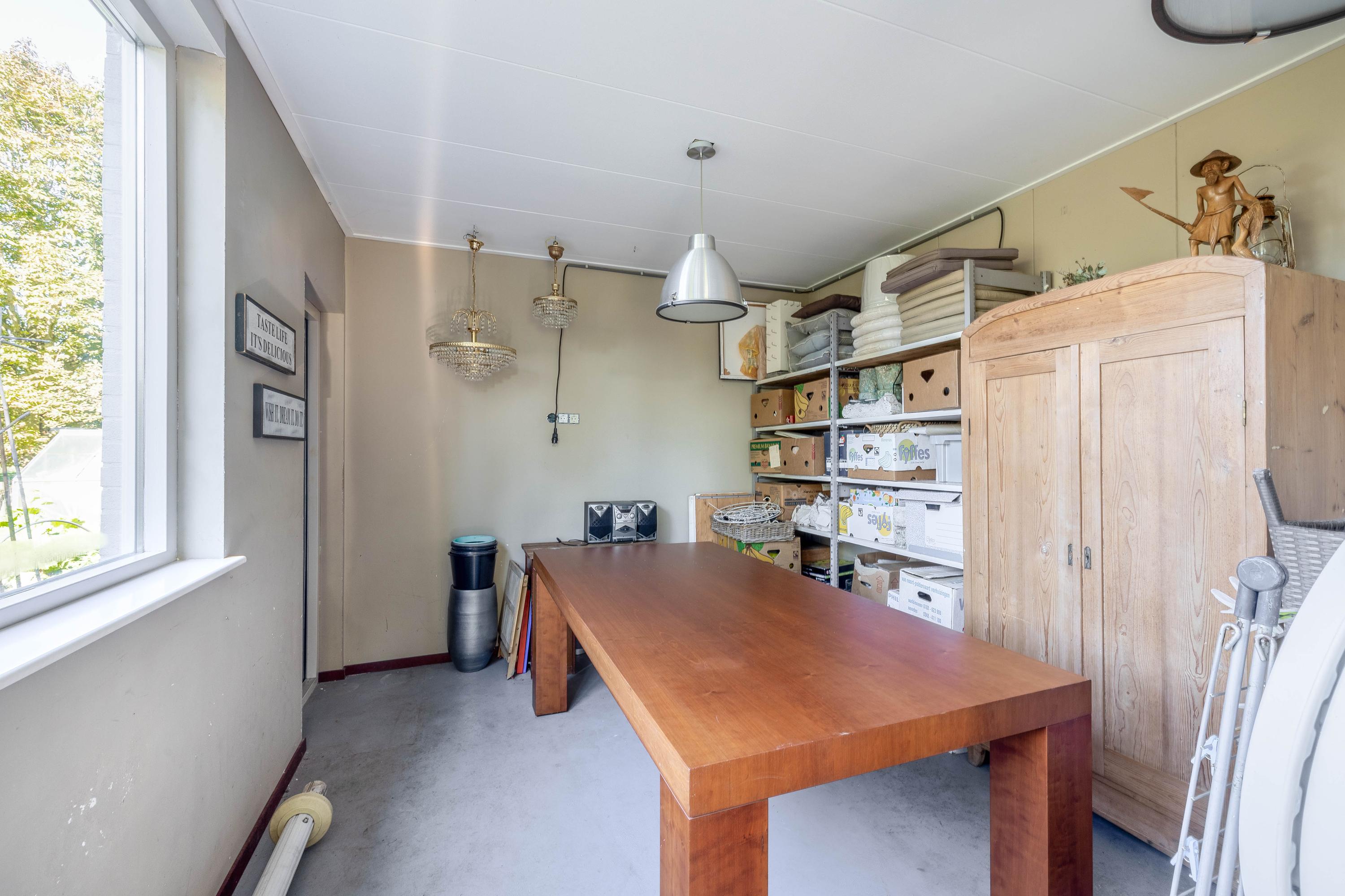Achter het huis vind je een enorme werkplaats van meer dan 115 m2, die in 2012 volledig gerenoveerd is met onder andere een nieuw pannendak. Ideaal voor ondernemers die werken aan huis, praktijkruimte, mantelzorgwoning, fanatieke klussers, hobbyisten of voor wie extra opslag nodig heeft. De werkplaats is makkelijk bereikbaar via een brede oprit. Hier kun je jouw werk en wonen op een unieke manier combineren zonder concessies te hoeven doen, want er is in 2024 ook nog een garage gebouwd en een carport.
