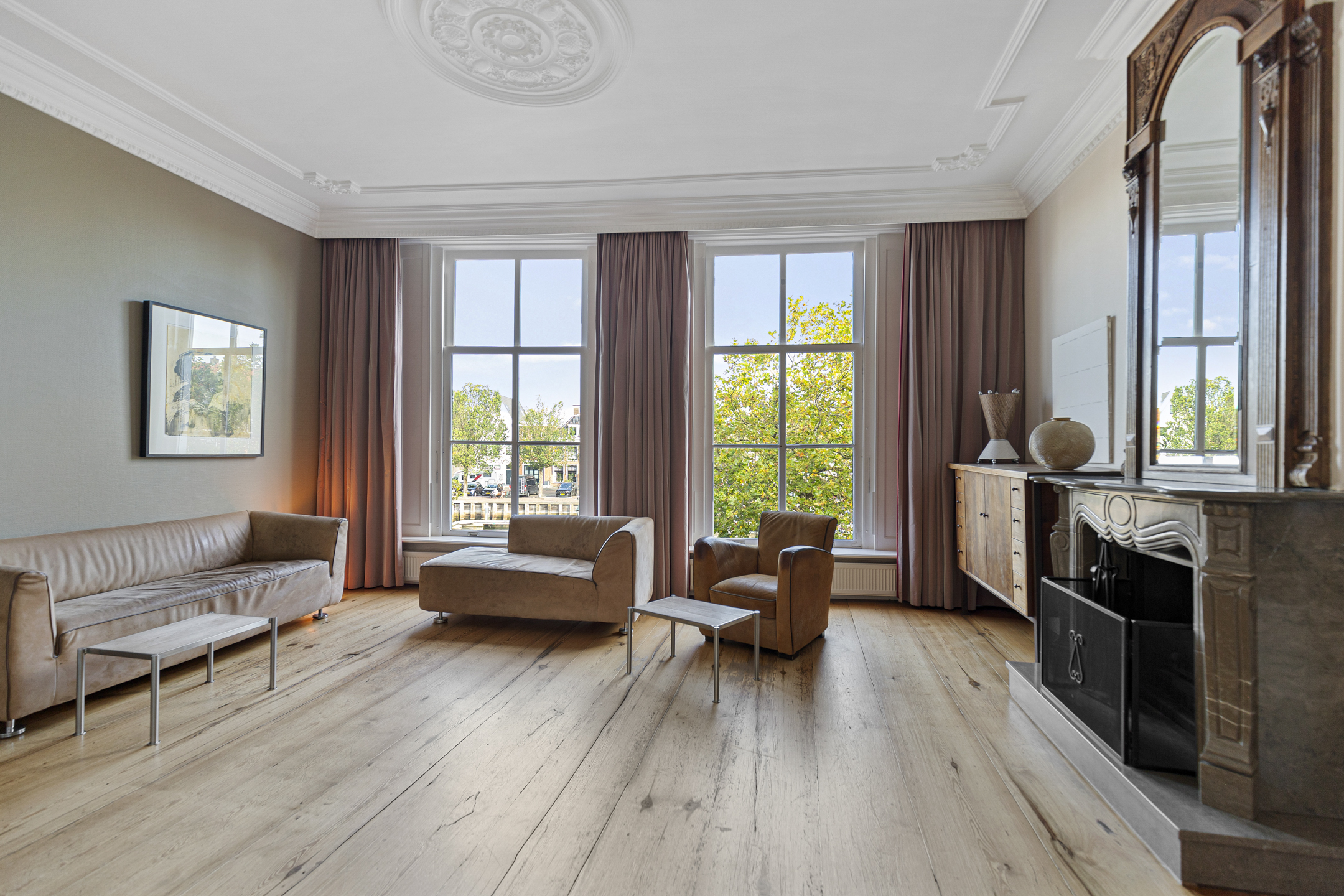 De authentieke gevel met gouden leeuwenkopjes, het middenrisaliet en de zesruitsvensters geven dit pand allure. Binnen ervaart u de ruimte dankzij hoog geornamenteerde plafonds, brede originele houten vloeren, marmeren schouwen en verfijnde lambriseringen. De vier verdiepingen tellen maar liefst negen ruime kamers en drie badkamers, praktisch ingedeeld en verrassend royaal.