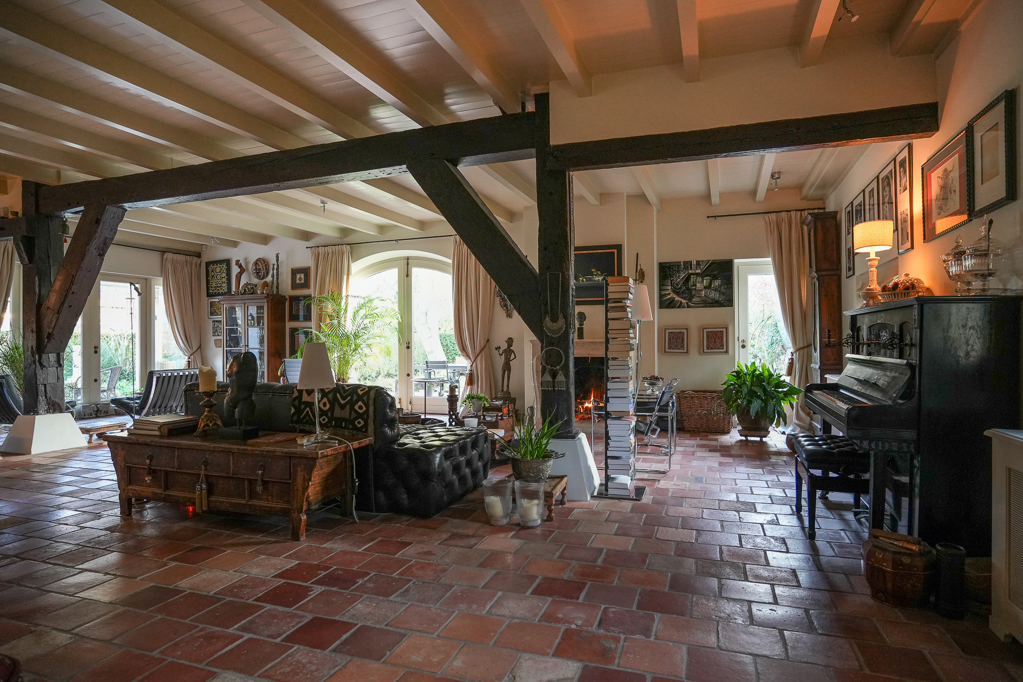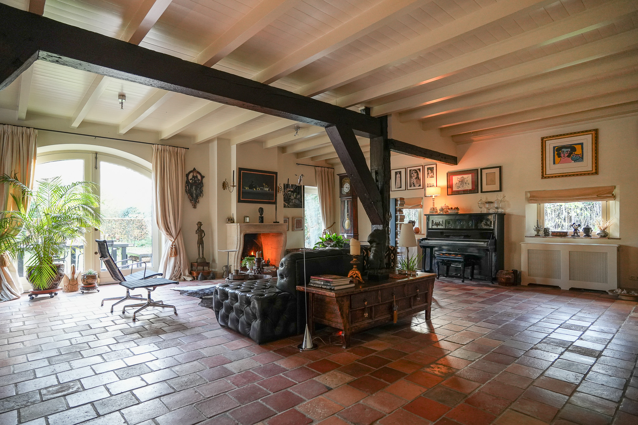 Twee paar openslaande deuren geven toegang tot het terras en de tuin, die ruim 100 meter doorloopt tot in het achterliggende privébos(je).