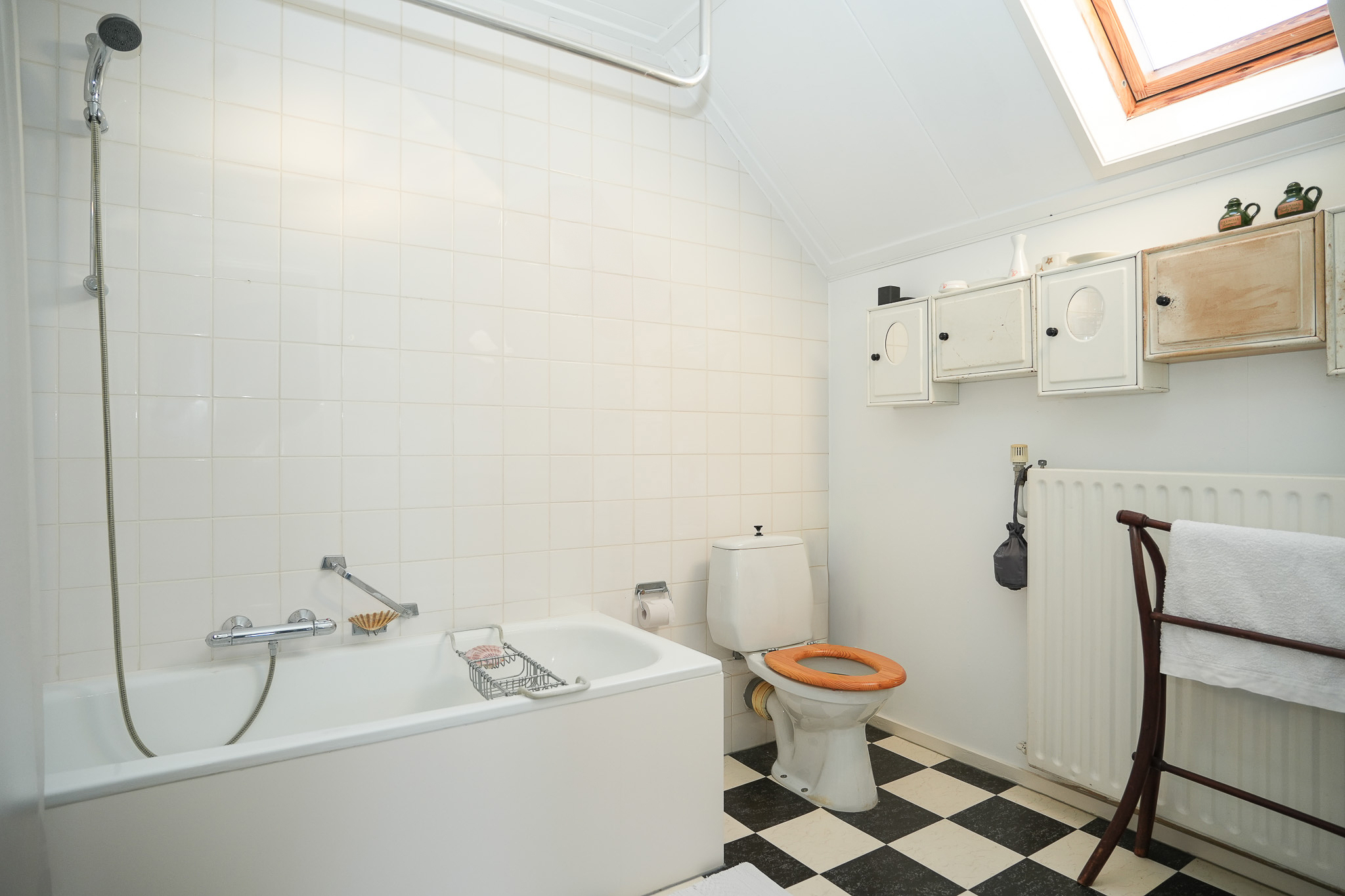 Royale open ruimte met pantry onder de geïsoleerde kap in het achterhuis en twee slaapkamers en een tweede badkamer in het voorhuis op de eerste verdieping.