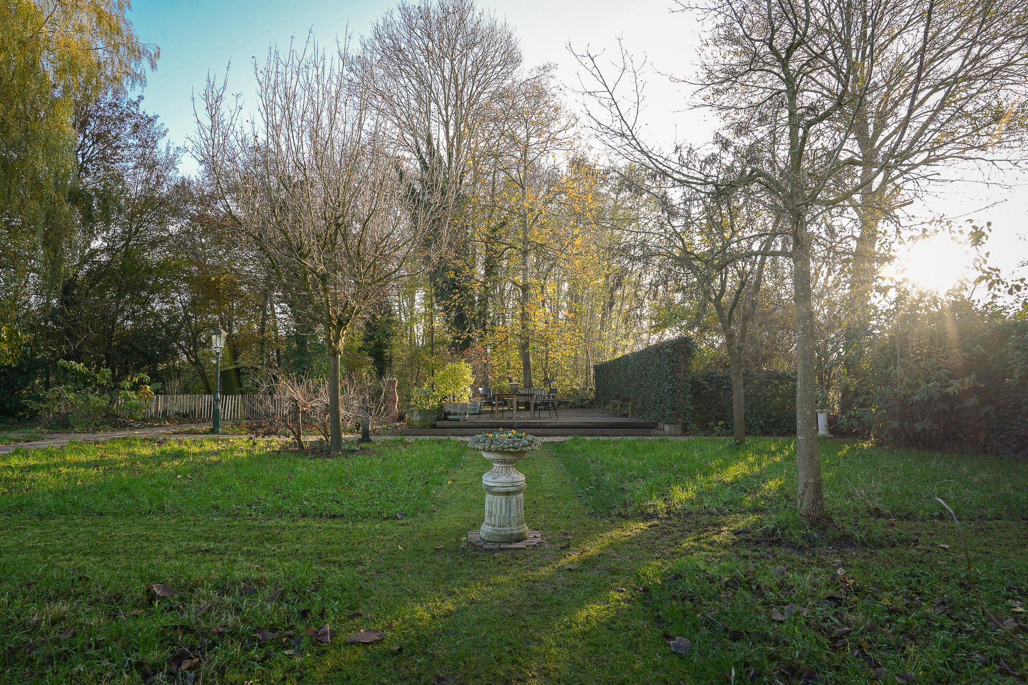 Het bijgebouw is met vergunning aanzienlijk te vergroten. Aan de achterzijde loopt het zuidgerichte perceel over in een eigen bos(je). Aan het begin van het bos staan een dierenverblijf met buitenren, een groot vlonderterras en een paddenpoel. Al met al een groene enclave met een parkachtige uitstraling, waar veel vogels en andere dieren zich thuis voelen. Regelmatig zijn er egels, kool- en pimpelmezen, merels, lijsters, vinken, roodborstjes, boomklevers, spechten, maar ook hazen en fazanten te zien. Her en der hangen nestkastjes voor vogels, vlinders en vleermuizen, die vrijwel ieder jaar volop worden gebruikt.
