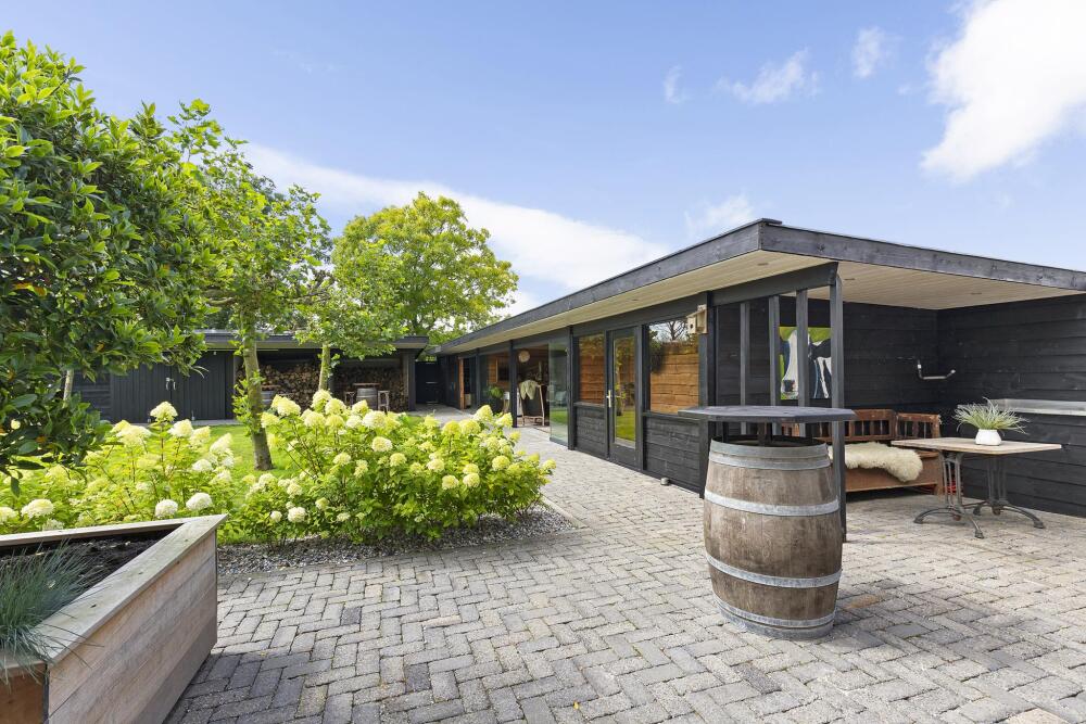 De met de woning in carré opgestelde bijgebouwen geven de tuin een besloten intieme sfeer. In het stijlvol houten geïsoleerde tuinhuis met 3 glazen schuifpuien en brede overkapping zijn een ware jachthut en wellnessruimte gesitueerd. De buitenkeuken verbindt het geheel met het woonhuis. Indien gewenst is dit op eenvoudige wijze inpandig te maken.