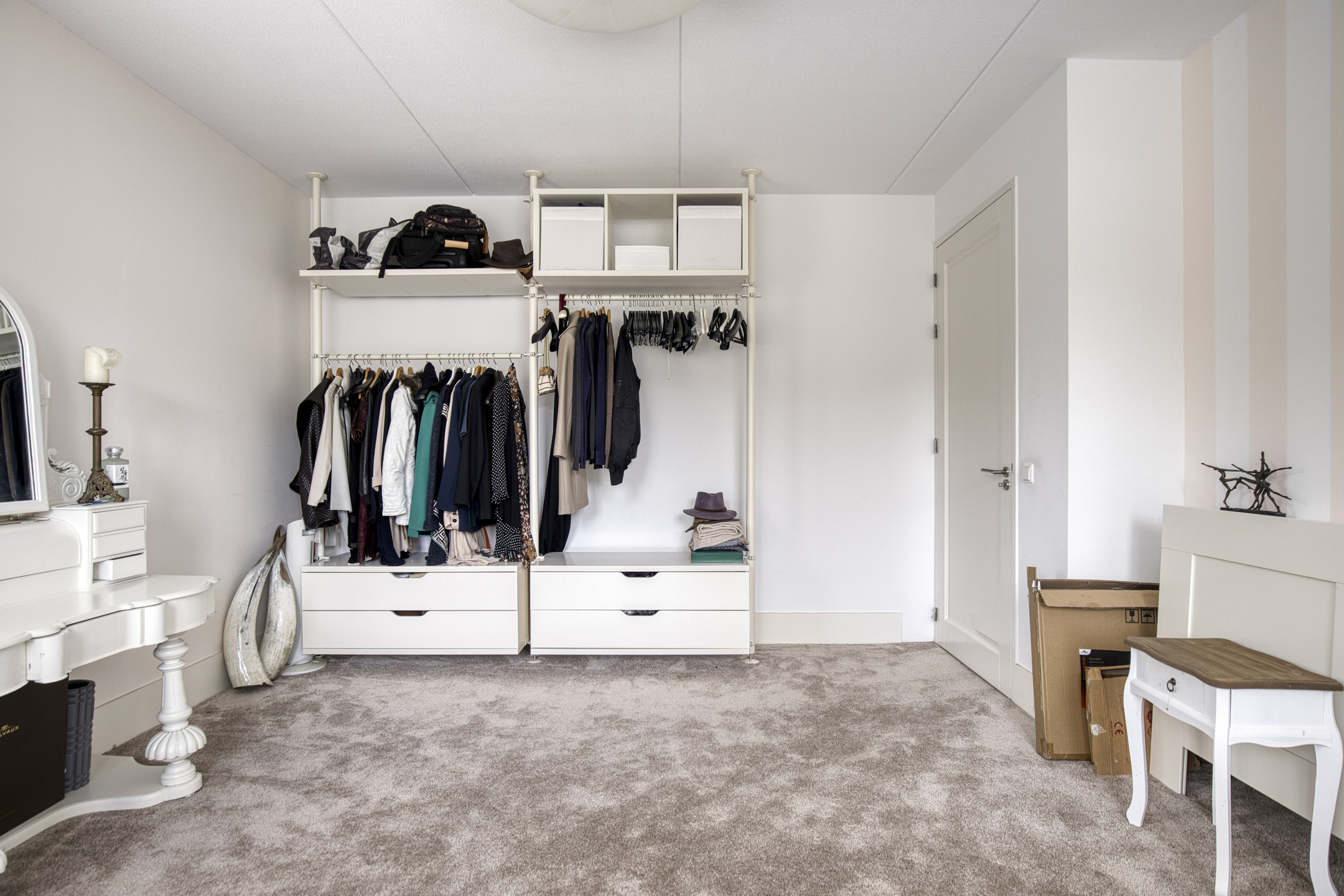 slaapkamer/kantoor rechts voor (ca. 13 m²), wandafwerking stucwerk, vloer afgewerkt met tapijt, plafond afgewerkt met stucwerk;