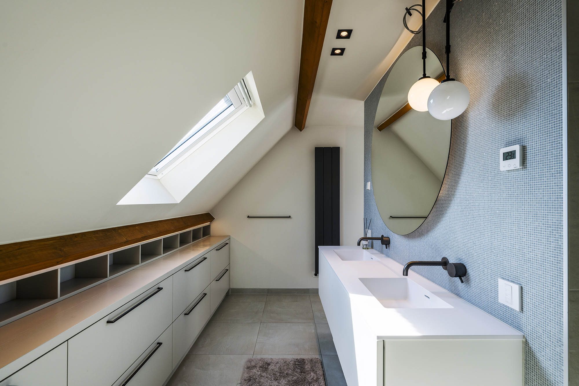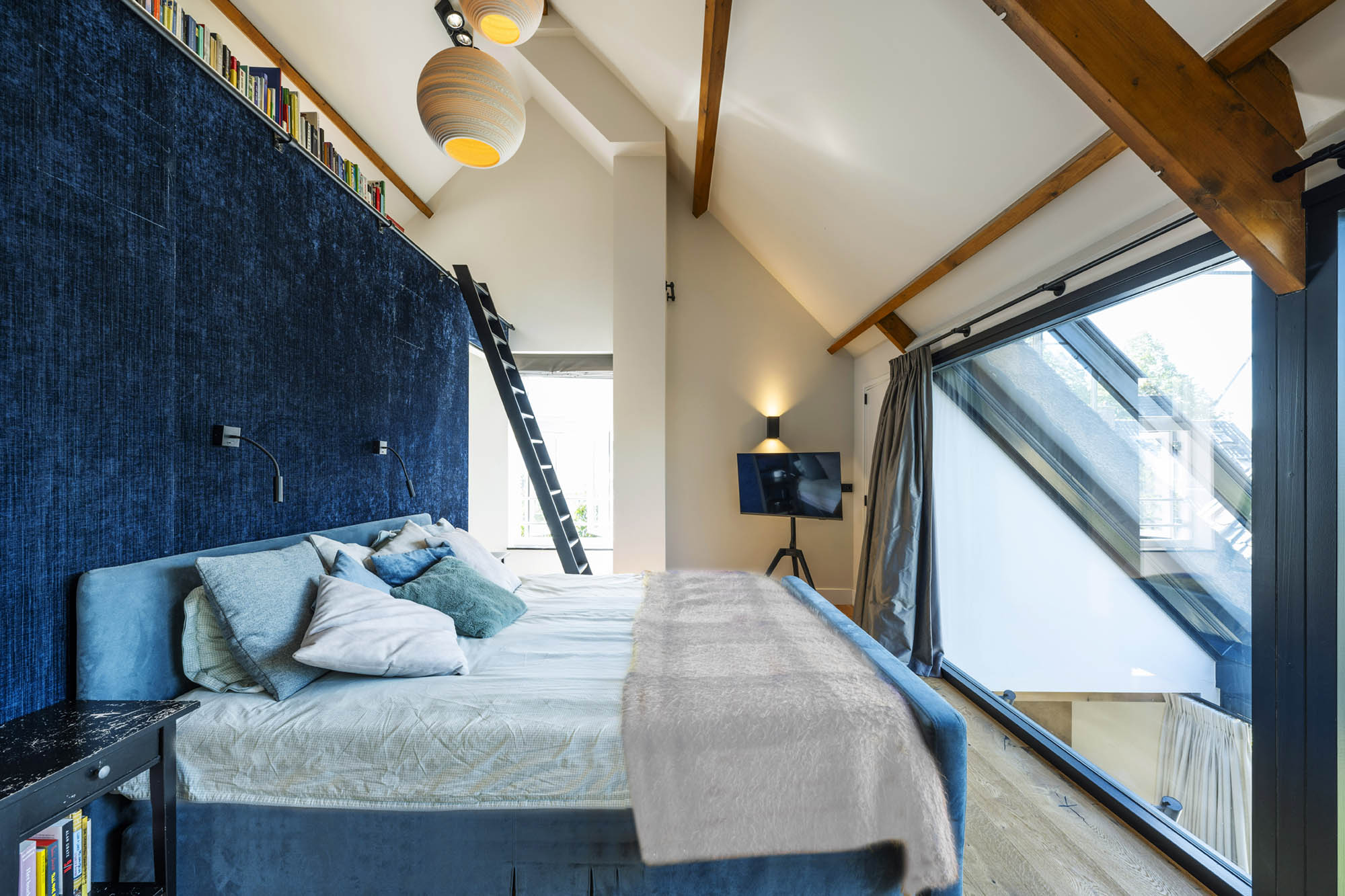 Via een prachtige trap kom je op de eerste verdieping daar bevinden zich de luxe oudersuite, compleet met maatwerk kasten en een badkamer waarin het daglicht zacht door het glazen dak valt. Daarnaast zijn er vier unieke royale kinderkamers, elk met een eigen karakter: van bedstede tot slaapvide. Een tweede badkamer en separaat toilet maken de verdieping compleet.