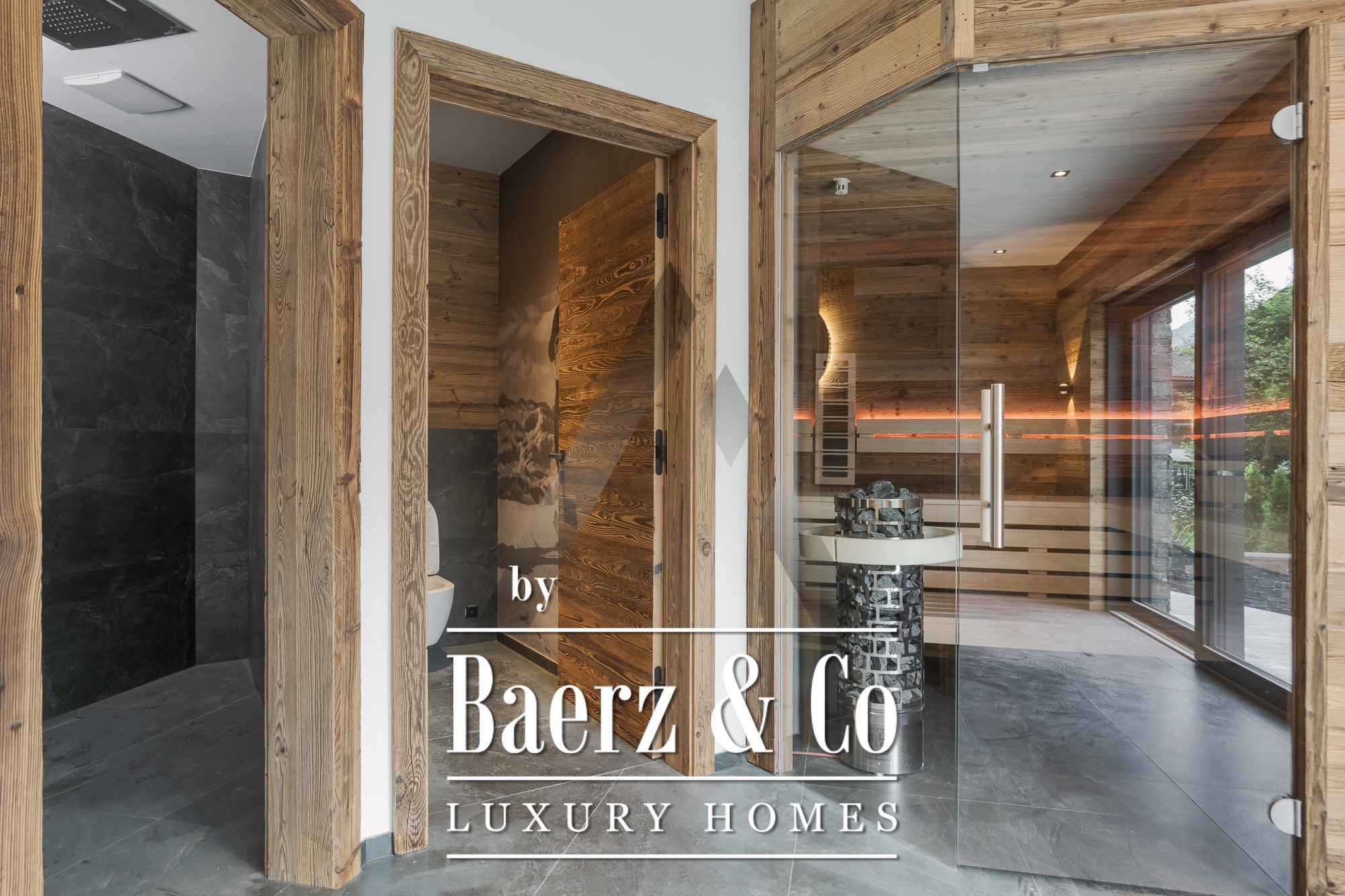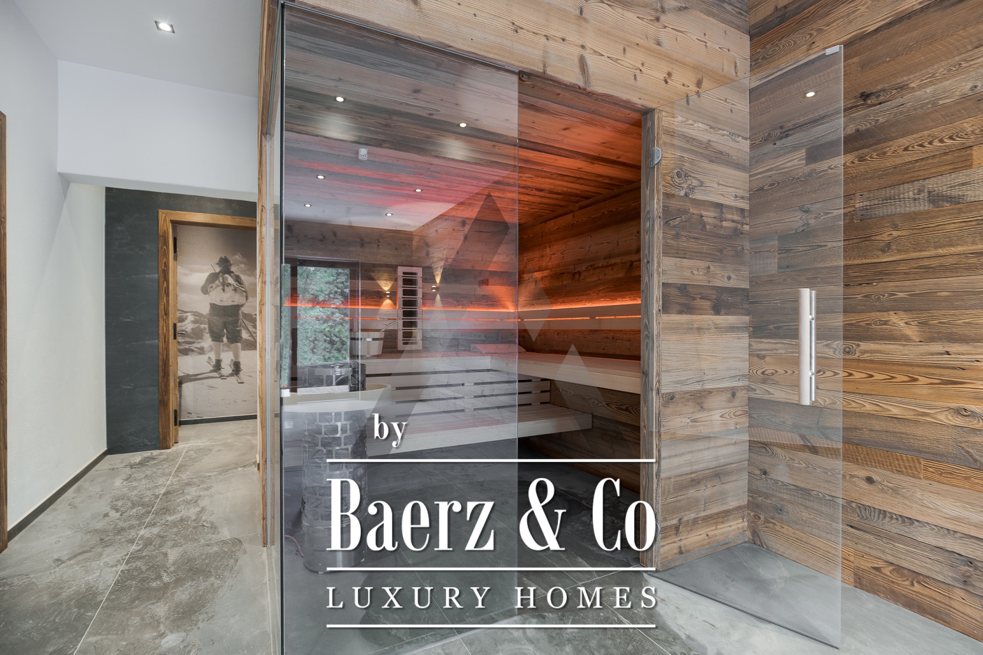 De glazen puien van vloer tot plafond in het riante leef- en eetgedeelte van 70 m² openen naar het omliggende landschap, terwijl natuursteen en oud hout de tijdloze elegantie van het exterieur benadrukken. De professionele keuken is uitgerust met apparatuur van Gaggenau en Bora Professional, ideaal voor culinaire liefhebbers. Een eigen wellnessruimte met sauna en ontspanningszone nodigt uit tot rust en herstel, aangevuld met doordachte voorzieningen als een lift, open haard, BUS-systeem en parkeerplaatsen zowel ondergronds als buiten.