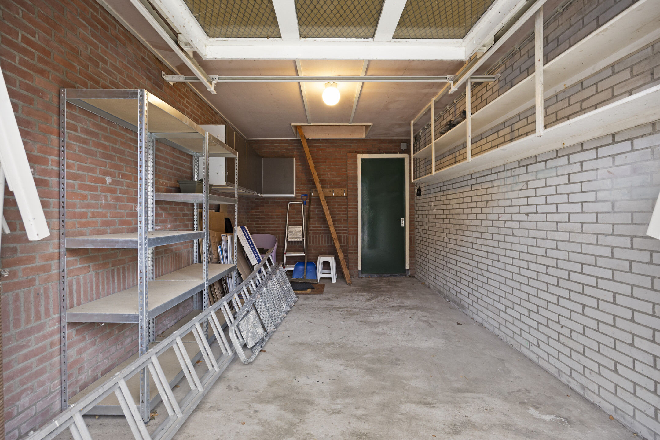 De garage biedt alle ruimte voor een auto en heeft onder de kap nog een zeer ruime zolder. Ideaal voor extra bergruimte, maar ook als speelzolder of bijvoorbeeld een gastenverblijf.