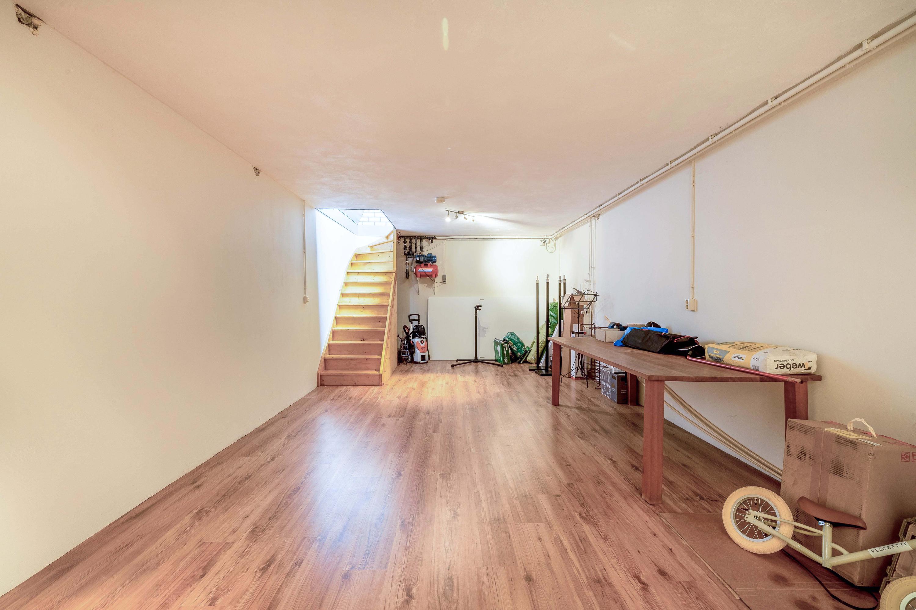 Het souterrain biedt door de grootte en hoogte diverse mogelijkheden. Denk bijvoorbeeld aan het creëren van een kantoor aan huis, hobbyruimte of speelruimte.
