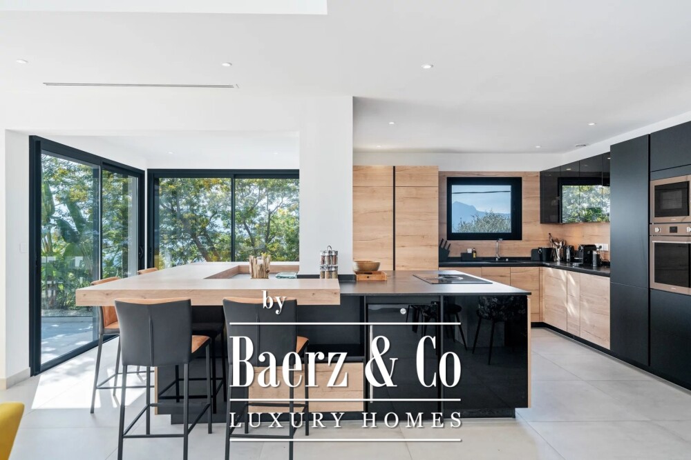 Deze eigentijdse villa in Mandelieu-la-Napoule biedt 302 m² woonruimte, op slechts 30 minuten van La Croisette en 10 minuten van de kust. De architectuur is doordacht ontworpen, met drie woonlagen die per lift bereikbaar zijn. Er is een perfecte overgang tussen de royale interieurs en het adembenemende uitzicht op zee en het Estérelgebergte. Binnen zijn er vijf slaapkamers, elk met een eigen en-suite badkamer, waardoor privacy en comfort overal is gegarandeerd.