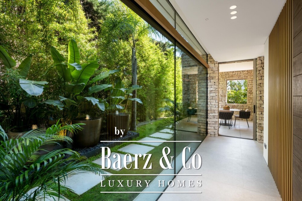 Vijf slaapkamers met eigen badkamer vormen afzonderlijke privévertrekken, met een master suite die directe toegang heeft tot een privéterras, een speciale beautyruimte en een verfijnde badkamer. Op het entertainmentniveau ontdekt u een op maat gemaakte bar, een wijnbodega, een lounge en een thuisbioscoop, met daarnaast het bijzondere genoegen van onderwaterzicht op het infinity zwembad. De nabijheid van het Hard Rock Hotel, Centro Plaza, Puerto Banús en de directe toegang tot de A-7 kustweg maakt dit adres een van de meest gewilde locaties in Marbella; het wordt gekenmerkt door privacy, verfijning en een zintuiglijke verbinding met de mediterrane omgeving.