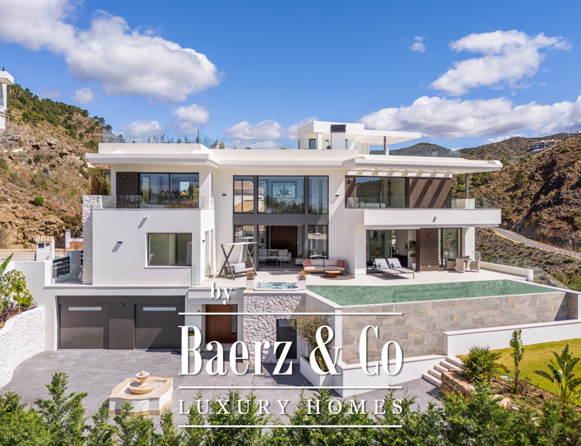 Villa Marbella met uitzicht op zee en bergen biedt verfijnd wonen in de rustige enclave Lomas de la Quinta, een exclusieve, afgesloten gemeenschap die bekend staat om haar privacy en serene sfeer. Deze villa van 764 m² met zes slaapkamers ligt op een perceel van 1.377 m² en heeft een eigentijdse architectuur waarin natuurlijke materialen, royaal licht en ruimte samenkomen. Vanaf het eerste moment bepalen het zeezicht en het uitzicht op de Sierra de las Nieves de sfeer, zowel op de 317 m² aan terrassen als in een van de twee loungegedeeltes waar grote ramen het mediterrane landschap omlijsten.