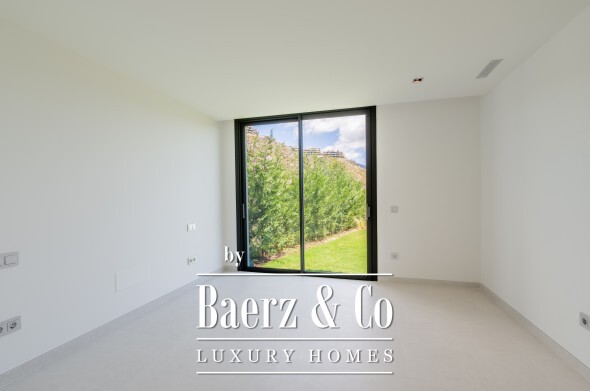 Buitenleven is hier onlosmakelijk verbonden met het interieur. Twee afzonderlijke tuinen, een zoutwater infinity pool en een jacuzzi zorgen voor een moeiteloze overgang tussen elegante binnenruimtes en het groen buiten. Het solarium, aangelegd met een kleine tuin, biedt panoramische 360º vergezichten over zee, golfbaan en bergen. Met een optionele lift van het souterrain tot aan het solarium is ieder niveau gemakkelijk bereikbaar en uitnodigend.