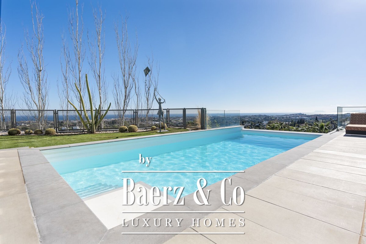 Villa Marbella prijkt hoog boven El Herrojo in La Quinta, met panoramisch zeezicht en een sfeer van ingetogen verfijning. Deze villa in Marbella beslaat 740 m² woonruimte op een perceel van 1.393 m² en brengt eigentijdse architectuur samen met het ontspannen ritme van de Middellandse Zee. Zeven slaapkamers en tien badkamers zijn geplaatst binnen een open indeling, waar hoge plafonds en royale raampartijen zorgen voor een lichte, evenwichtige ambiance. Het interieur is met zorg ontworpen en wordt gekenmerkt door strakke lijnen en een ingetogen moderniteit die tijdloze zekerheid en geen vluchtige trends uitdraagt.