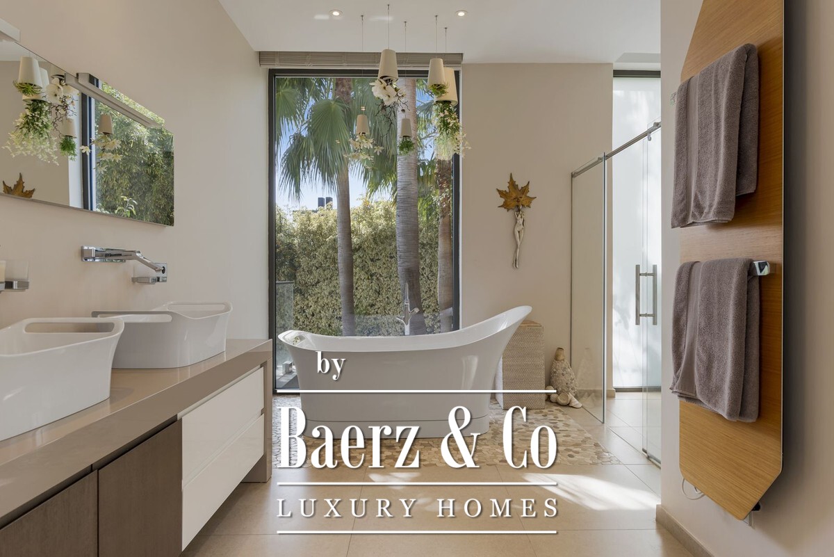 Dankzij de strategische ligging met zuidwestelijk uitzicht omlijst de villa het zee-, berg- en kustlandschap op vanzelfsprekende wijze, wat het dagelijkse leven verrijkt. Het verwarmde privé-infinity zwembad, met een diepte van 2,7 meter, vormt het middelpunt van de buitenbeleving, geflankeerd door rustgevende terrassen en aangelegde tuinen. Veiligheid en privacy zijn gegarandeerd binnen de besloten gemeenschap, met 24-uurs beveiliging en een serene sfeer die de nabijheid tot Marbella’s kosmopolitische cultuur, beroemde golfbanen en de kust nauwelijks doet vermoeden.