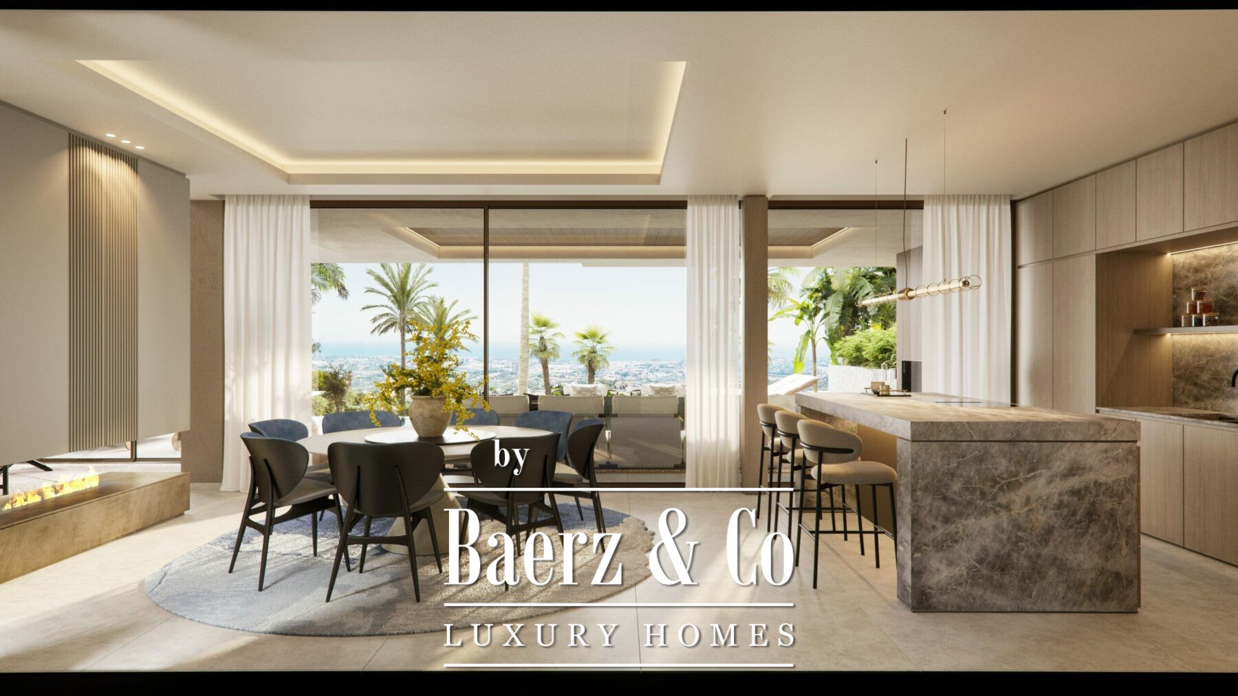 Villa Marbella met zee- en bergzicht biedt een leven van verfijning in het hart van Nueva Andalucia. Deze villa, onderdeel van een exclusief off-plan project met zesentwintig woningen, ligt op een perceel van 979 m² en beschikt over een woonoppervlak van 488 m², doordrenkt van hedendaagse architectuur. Het ontwerp, gerealiseerd door een gerenommeerd architect, creëert open, lichtovergoten ruimtes waarin vijf slaapkamers en vijf badkamers naadloos samenkomen in een intelligente overgang tussen binnen- en buitenleven.