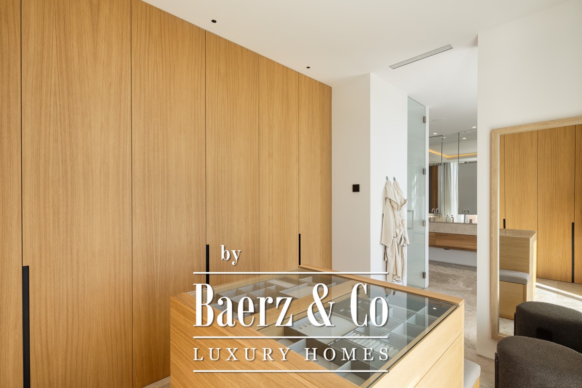 Binnen de 854 m² woonoppervlakte zorgen royale volumes en een neutraal kleurenpalet voor een subtiele luxe uitstraling. Natuurlijk licht stroomt via de grote glazen deuren naar binnen, waardoor de open leefruimtes naadloos worden verbonden met de terrassen die uitnodigen tot optimaal buitenleven. De moderne keuken is ingericht voor de meest veeleisende fijnproever, terwijl vijf slaapkamers, waaronder een exclusieve master suite met privéterras, inloopkast en verfijnde badkamer, elke bewoner een persoonlijke toevluchtsoord bieden.