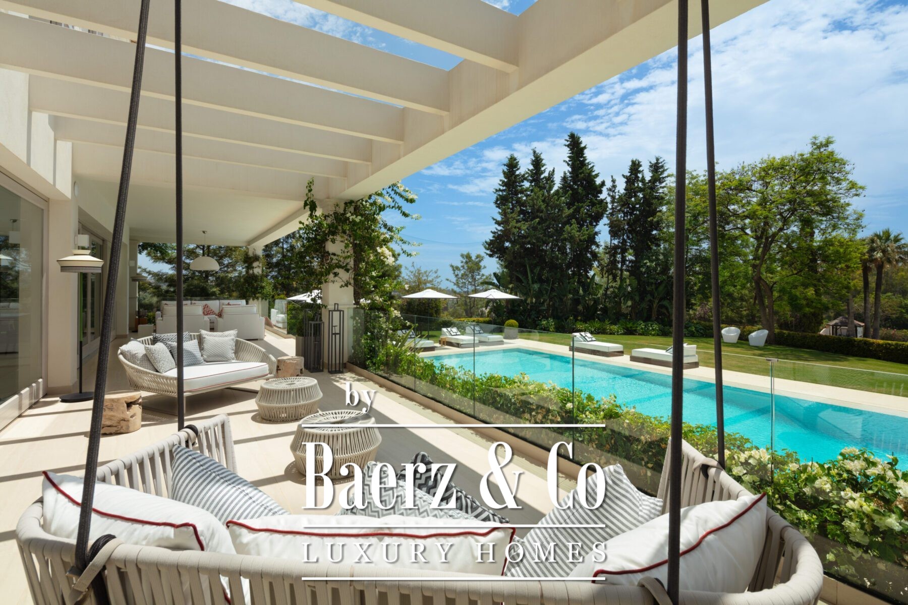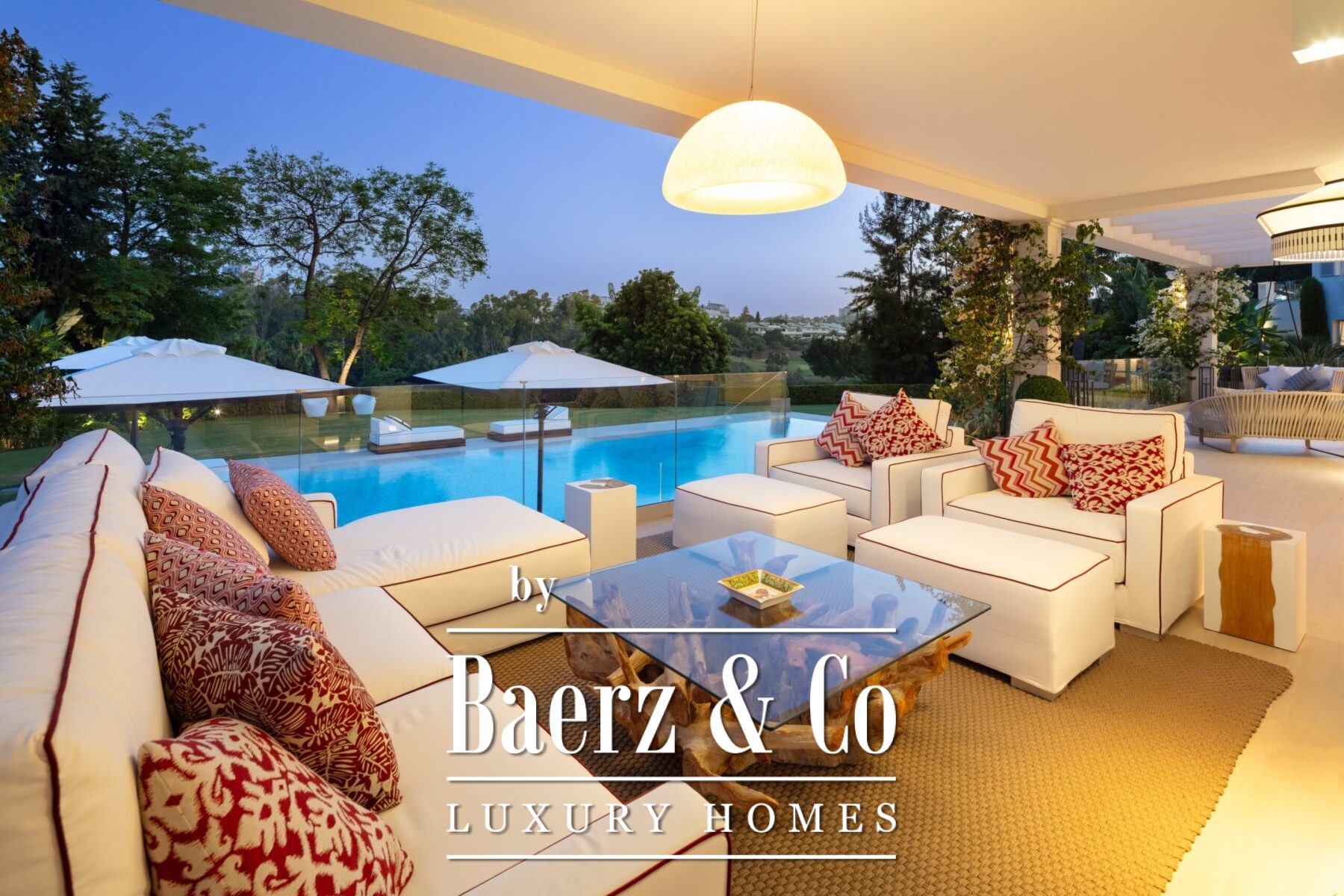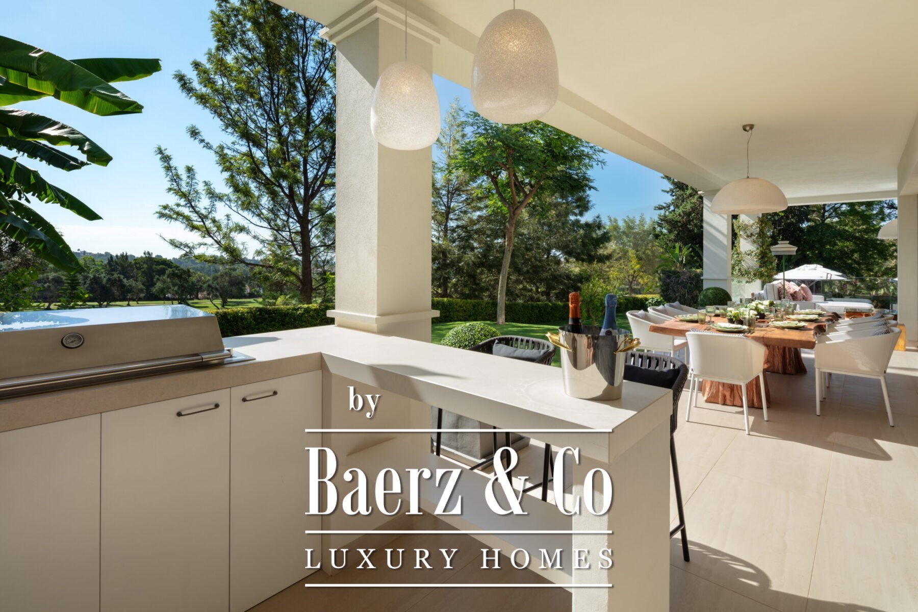 De relatie met het perceel van 2.349 m² wordt zichtbaar door volwassen tuinen en royale terrassen, die uitnodigen tot een leven in de openlucht onder het heldere Marbellaanse firmament. Indrukwekkende vergezichten over de golfbaan en bergen worden aangevuld door voorzieningen als een privézwembad, buitenkeuken, barbecue, dubbele garage en 24-uurs beveiliging, die samen een sfeer van ingetogen verfijning creëren. De nabijheid van golfbanen, lokale faciliteiten en de zee onderstreept de blijvende aantrekkingskracht van deze luxe villa te koop in Marbella.