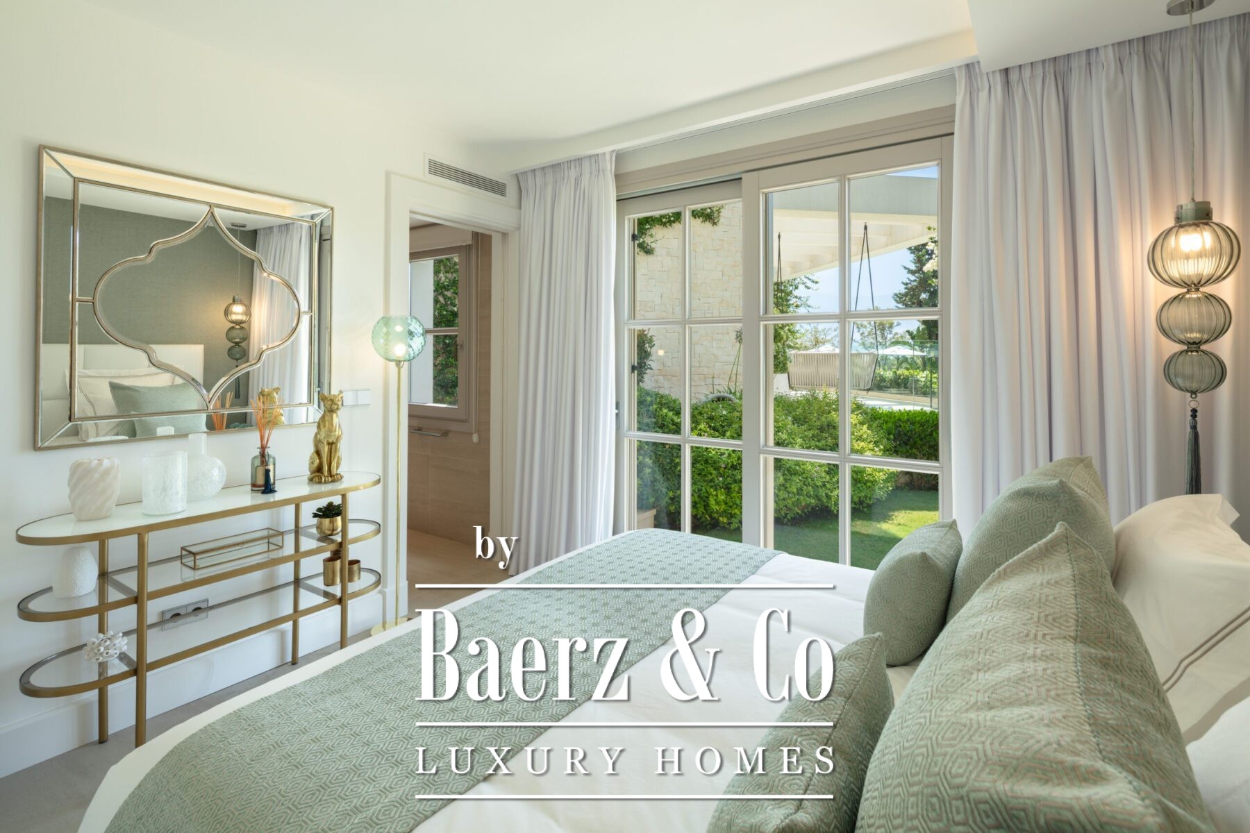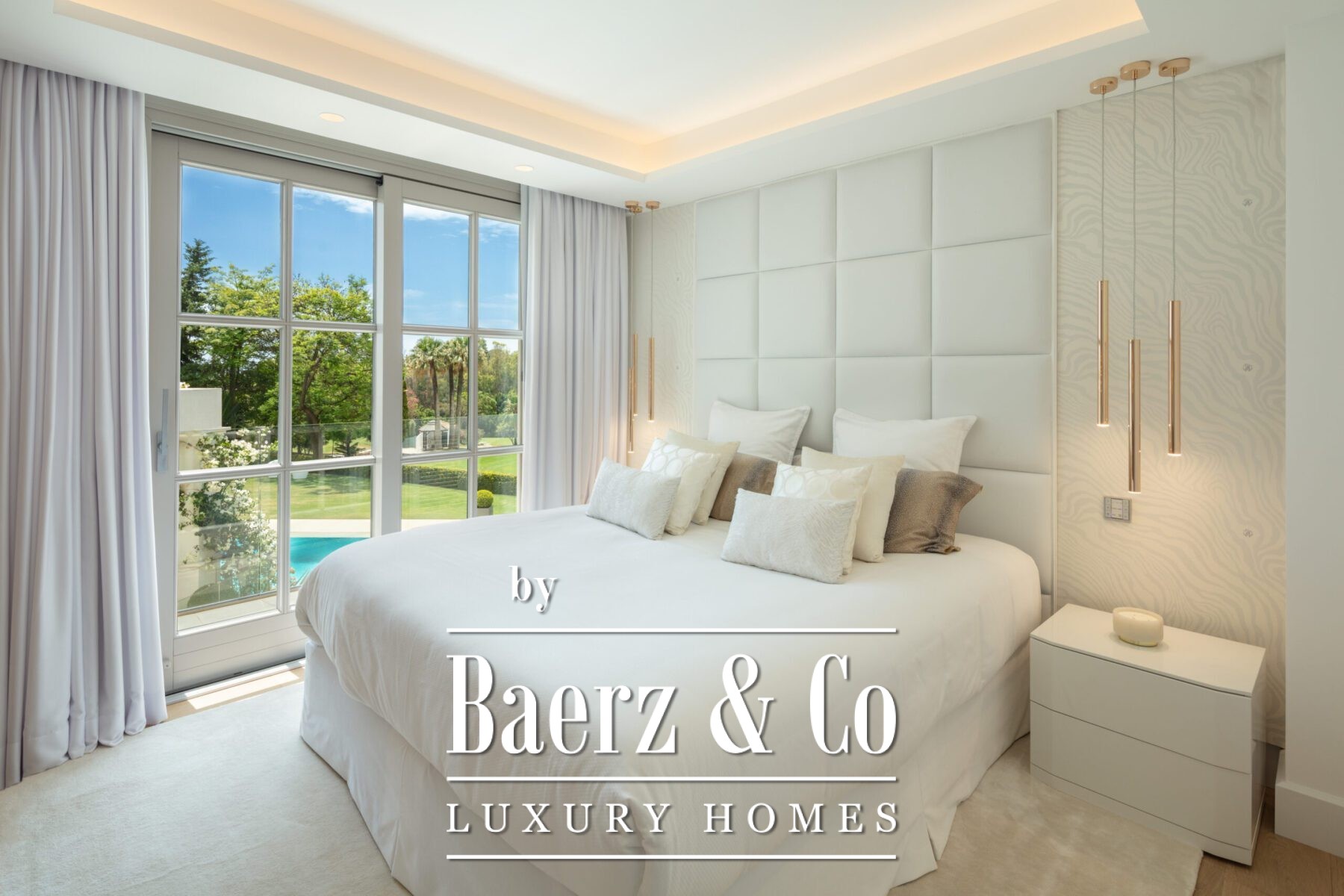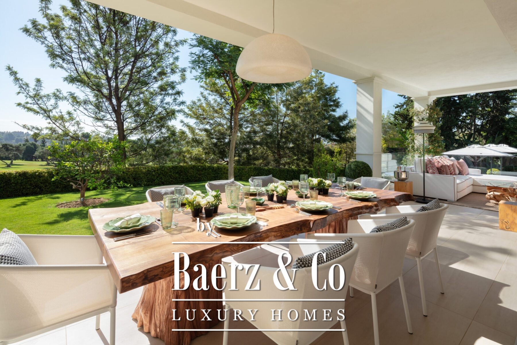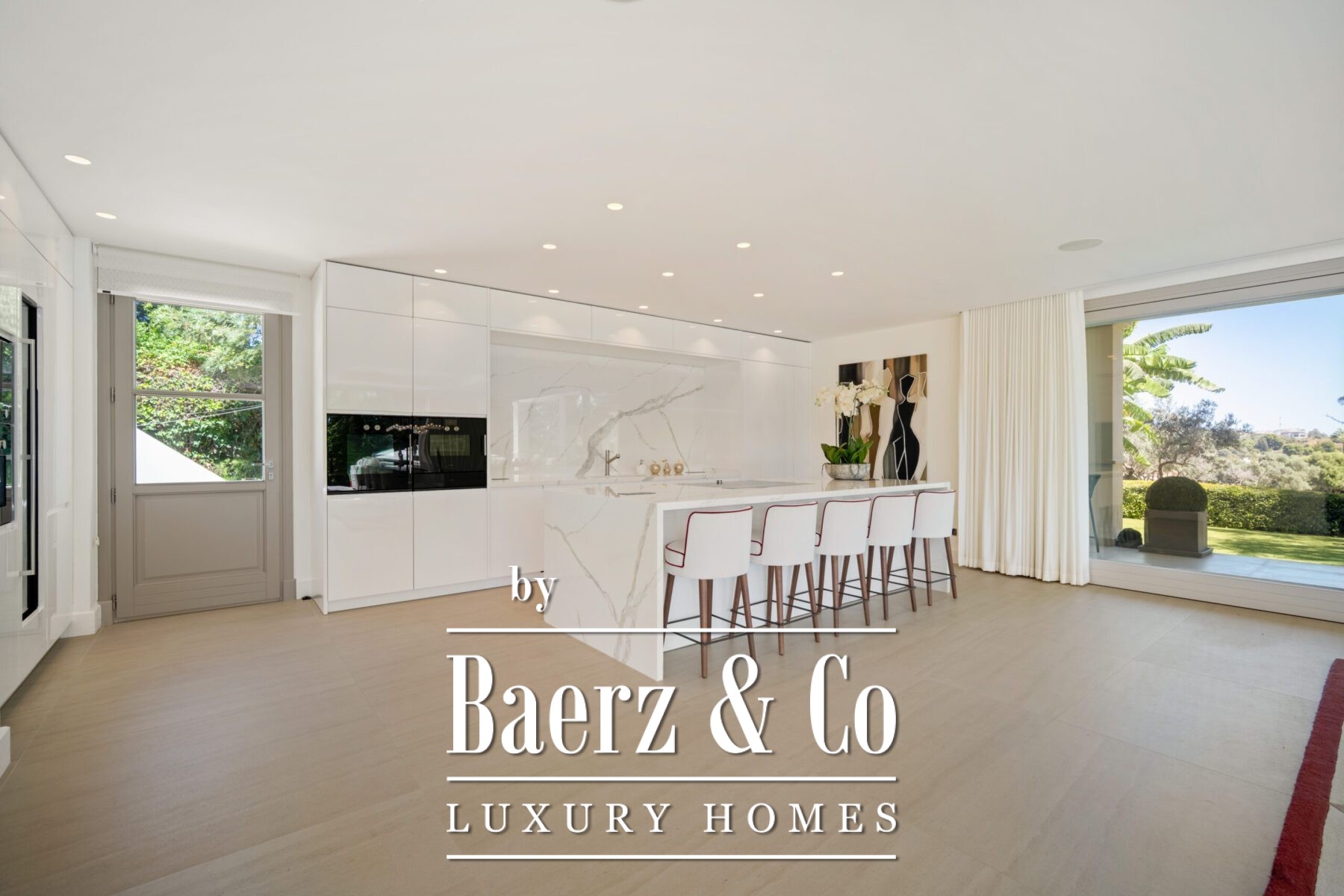De relatie met het perceel van 2.349 m² wordt zichtbaar door volwassen tuinen en royale terrassen, die uitnodigen tot een leven in de openlucht onder het heldere Marbellaanse firmament. Indrukwekkende vergezichten over de golfbaan en bergen worden aangevuld door voorzieningen als een privézwembad, buitenkeuken, barbecue, dubbele garage en 24-uurs beveiliging, die samen een sfeer van ingetogen verfijning creëren. De nabijheid van golfbanen, lokale faciliteiten en de zee onderstreept de blijvende aantrekkingskracht van deze luxe villa te koop in Marbella.