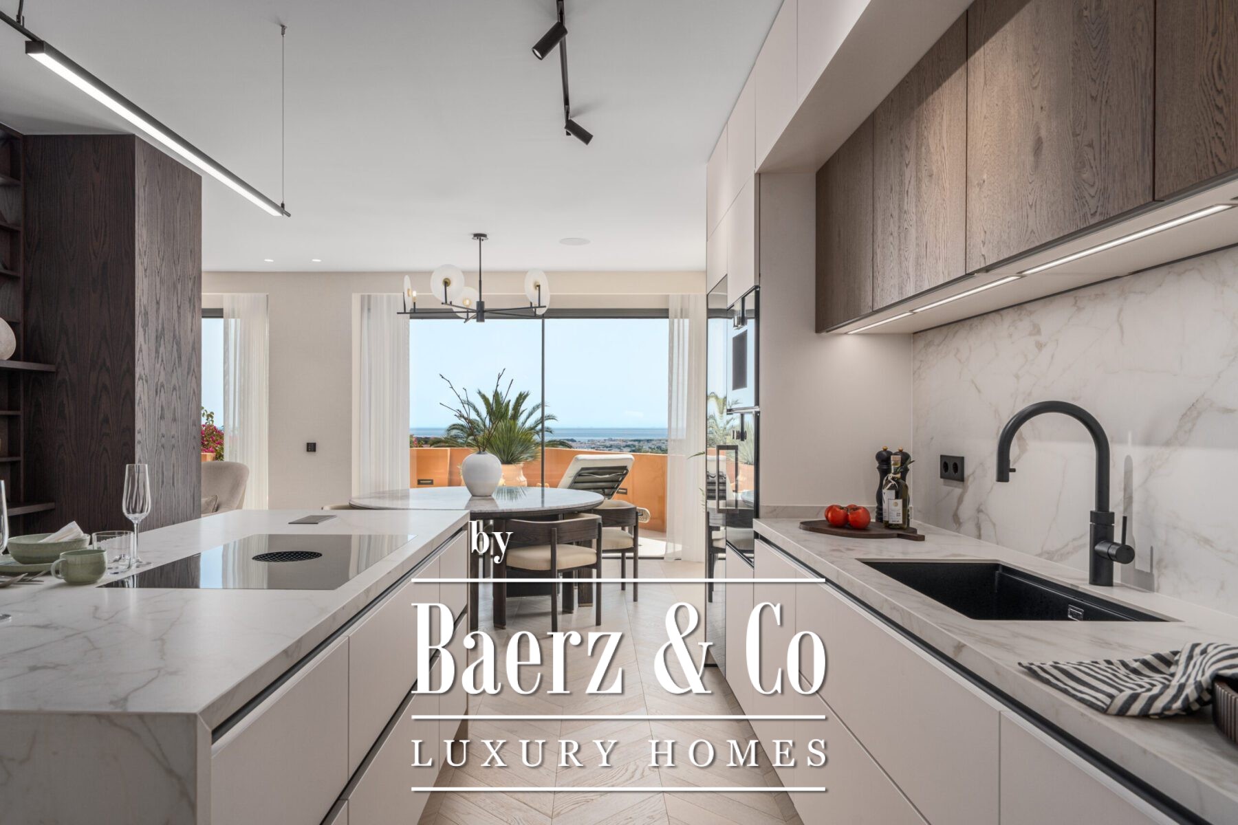 Apartment Marbella biedt een zeldzaam uitzicht over de prestigieuze straten van La Cerquilla, Nueva Andalucía. Deze volledig gerenoveerde begane grondwoning omvat 215 m² en biedt panoramisch uitzicht op de Middellandse Zee, de bergen en befaamde golfbanen, waardoor een harmonieuze verbinding ontstaat tussen verfijnd interieurdesign en het omringende landschap.