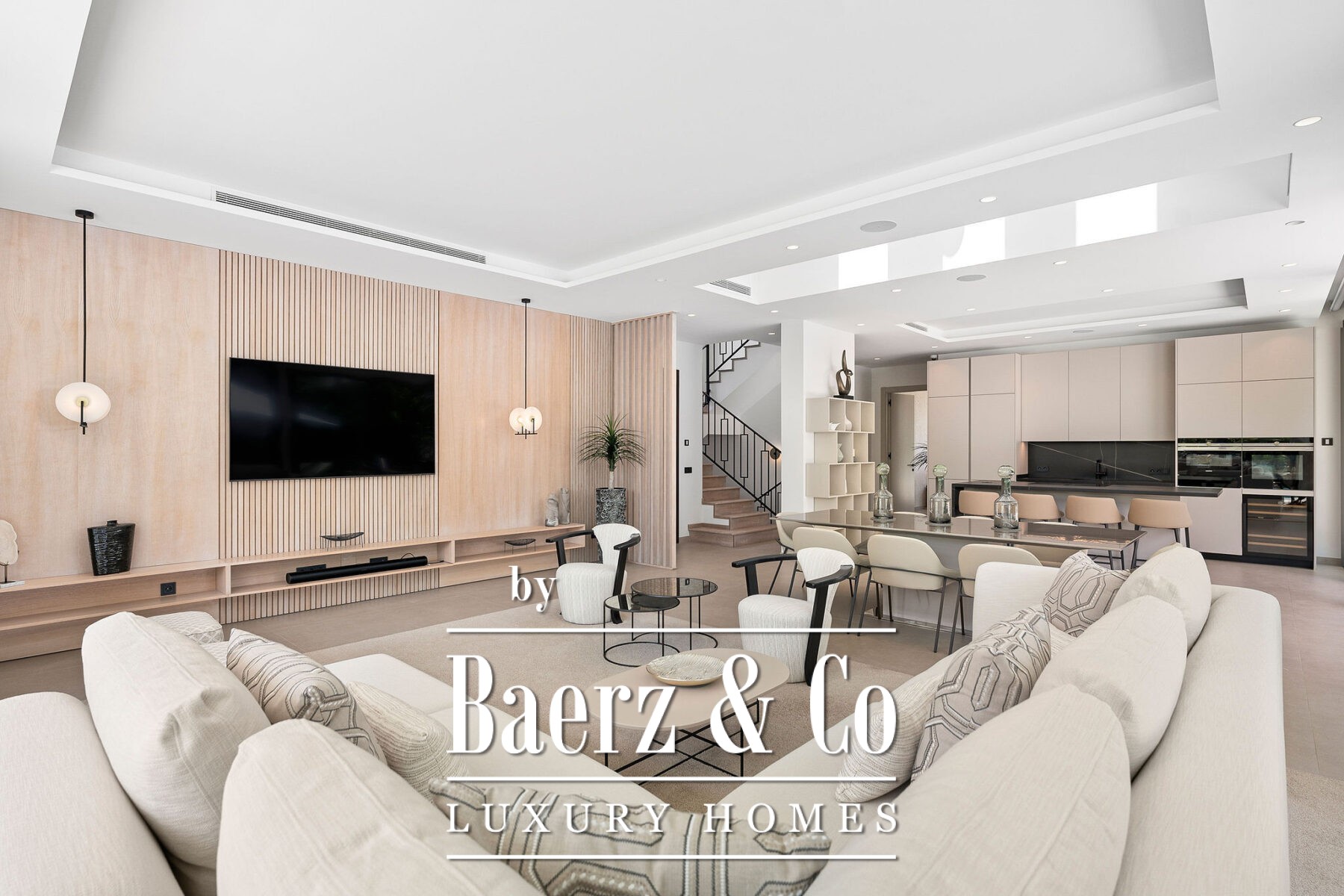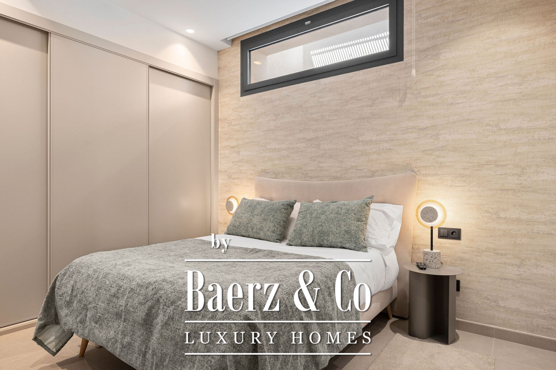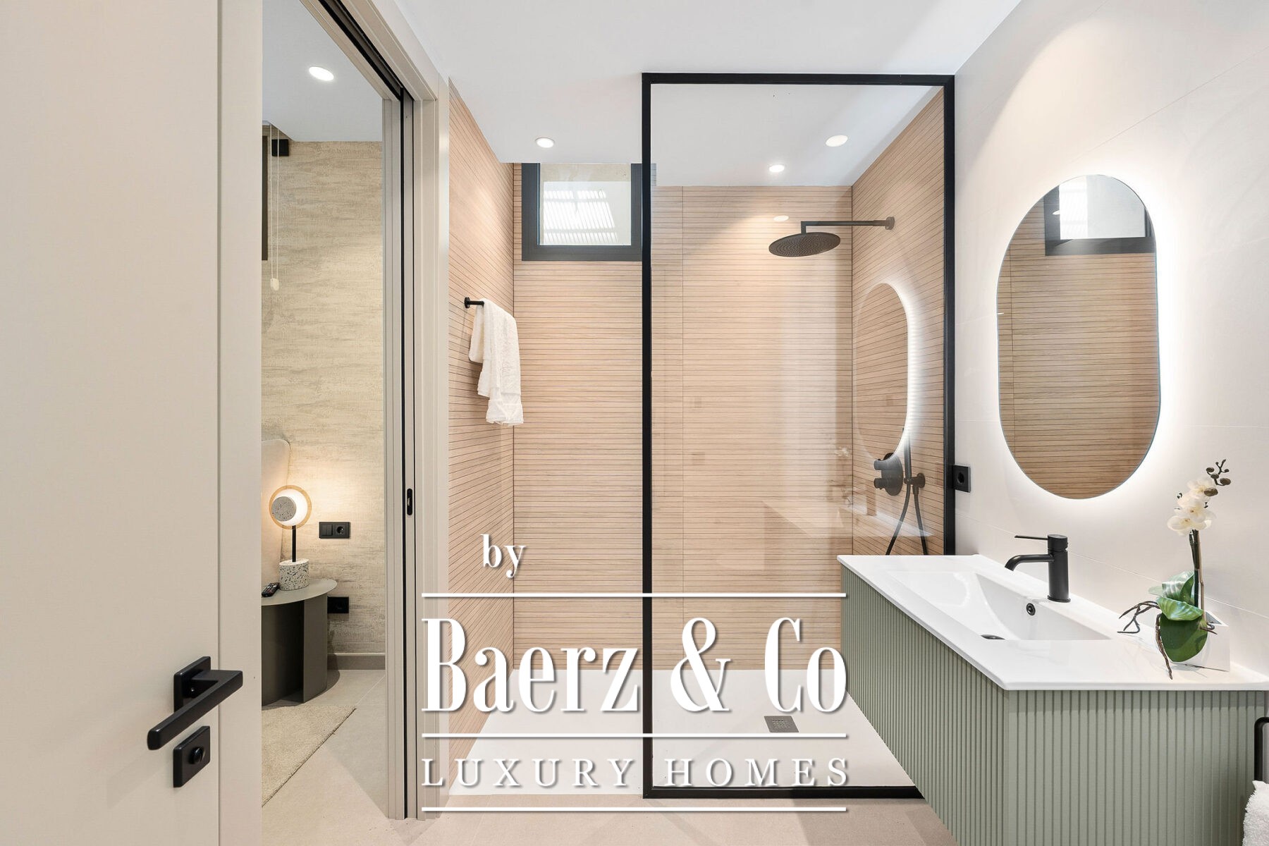 Deze moderne villa in Nueva Andalucía weerspiegelt het stille vertrouwen van eigentijds mediterraan wonen in een van de meest gewilde buurten van Marbella. Gelegen in La Cerquilla, beslaat deze in 2023 gebouwde woning 770 vierkante meter verdeeld over drie verdiepingen op een perceel van 1.000 vierkante meter, en vormt zij een toevluchtsoord van privacy en verfijnd design. Vier ruime slaapkamers met en-suite badkamers en vijf badkamers in totaal vloeien samen in een open plattegrond, waarbij een stijlvolle keuken van Siemens en Miele het sociale hart vormt. Slimme voorzieningen zoals een Sonos-systeem, domotica en een veilig auto-lock systeem bieden moeiteloze controle en discretie.