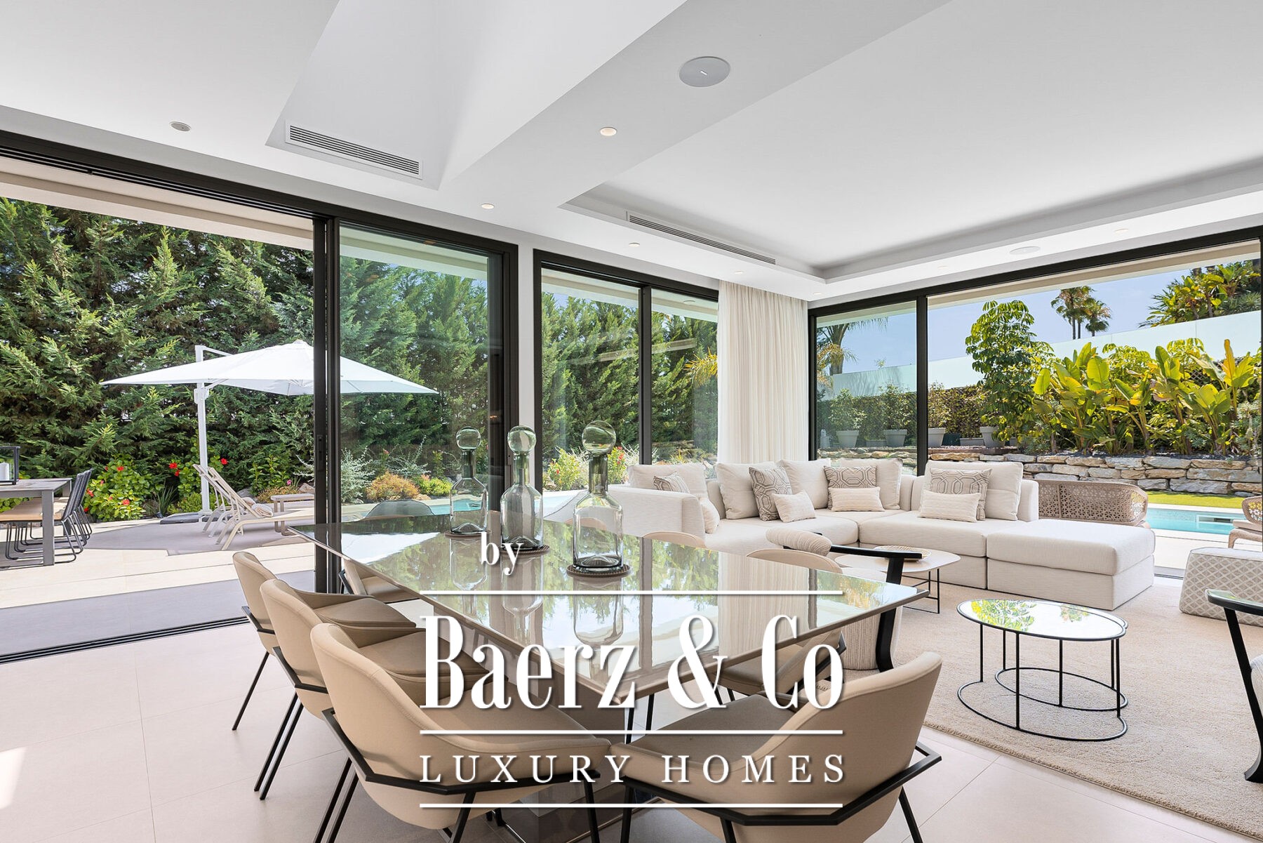 Deze villa combineert zeldzame rust met directe toegang tot golf, stranden en internationale scholen, en is te koop in Nueva Andalucía, op steenworp afstand van Los Naranjos, Las Brisas en Ocean Club Marbella. Van fine dining en exclusieve boetieks in Centro Plaza tot het welzijnsaanbod aan de Golden Mile, alles wat Marbella te bieden heeft is binnen handbereik. De woning biedt directe toegang tot de AP-7 snelweg, die rechtstreeks leidt naar de luchthaven van Málaga en de rest van de Costa del Sol. Een harmonieuze compositie van hoogwaardige technologie en tijdloze mediterrane architectuur.
