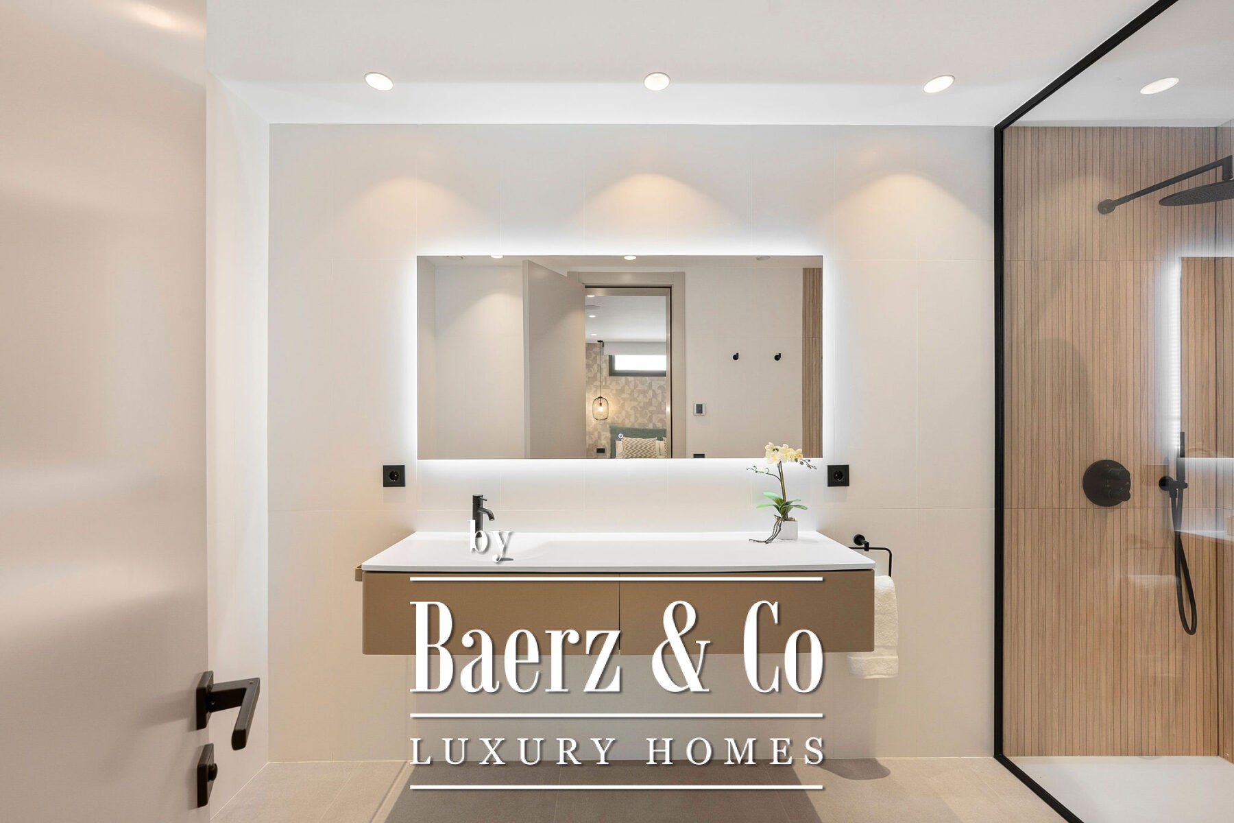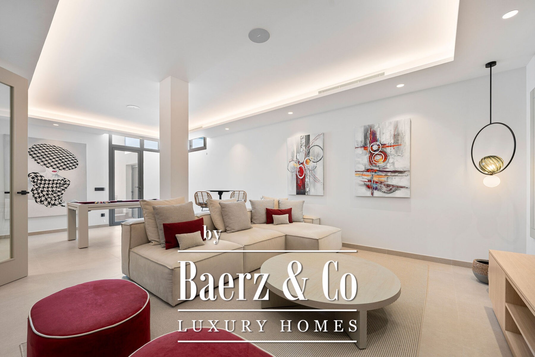 Elke ruimte is ontworpen voor comfort en flexibiliteit. De begane grond verwelkomt gasten met royale woon- en eetgedeelten, terwijl de bovenverdieping rustgevende ochtenden belooft vanaf twee privéterrassen grenzend aan de mastersuite. In het souterrain bevinden zich een privébioscoop, speelkamer, fitnessruimte en wijnbodega die ontspanning tot een dagelijkse belevenis maken. Elektrische vloerverwarming in de badkamers van het souterrain en de garage bieden functionele luxe.