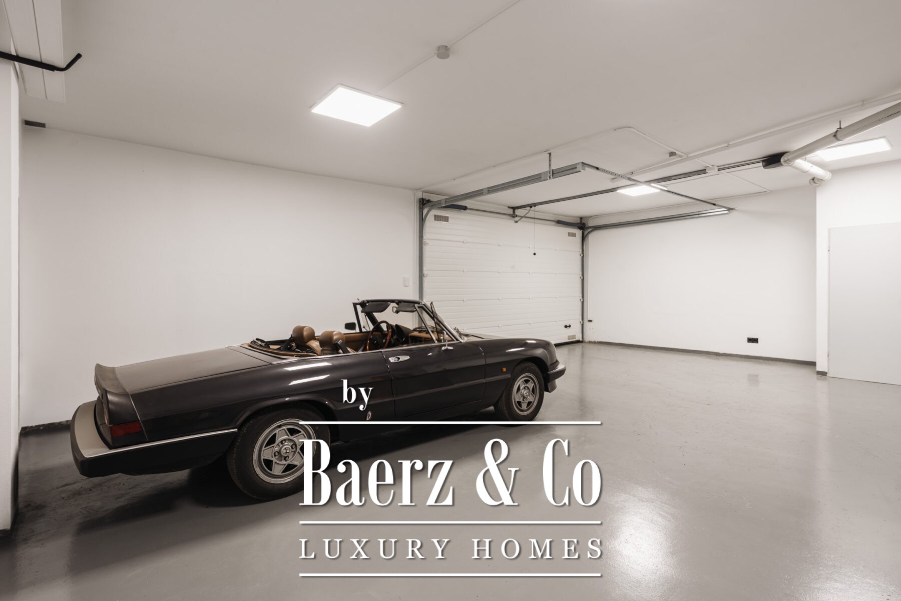 De begane grond beschikt over een uitgestrekt souterrain, ingericht met een garage voor drie auto’s, een berging en extra parkeergelegenheid, wat de veiligheid en het comfort vergroot. Een uitgebreid alarmsysteem, veiligheidsluiken en privétoegangen benadrukken de betrouwbare privacy.