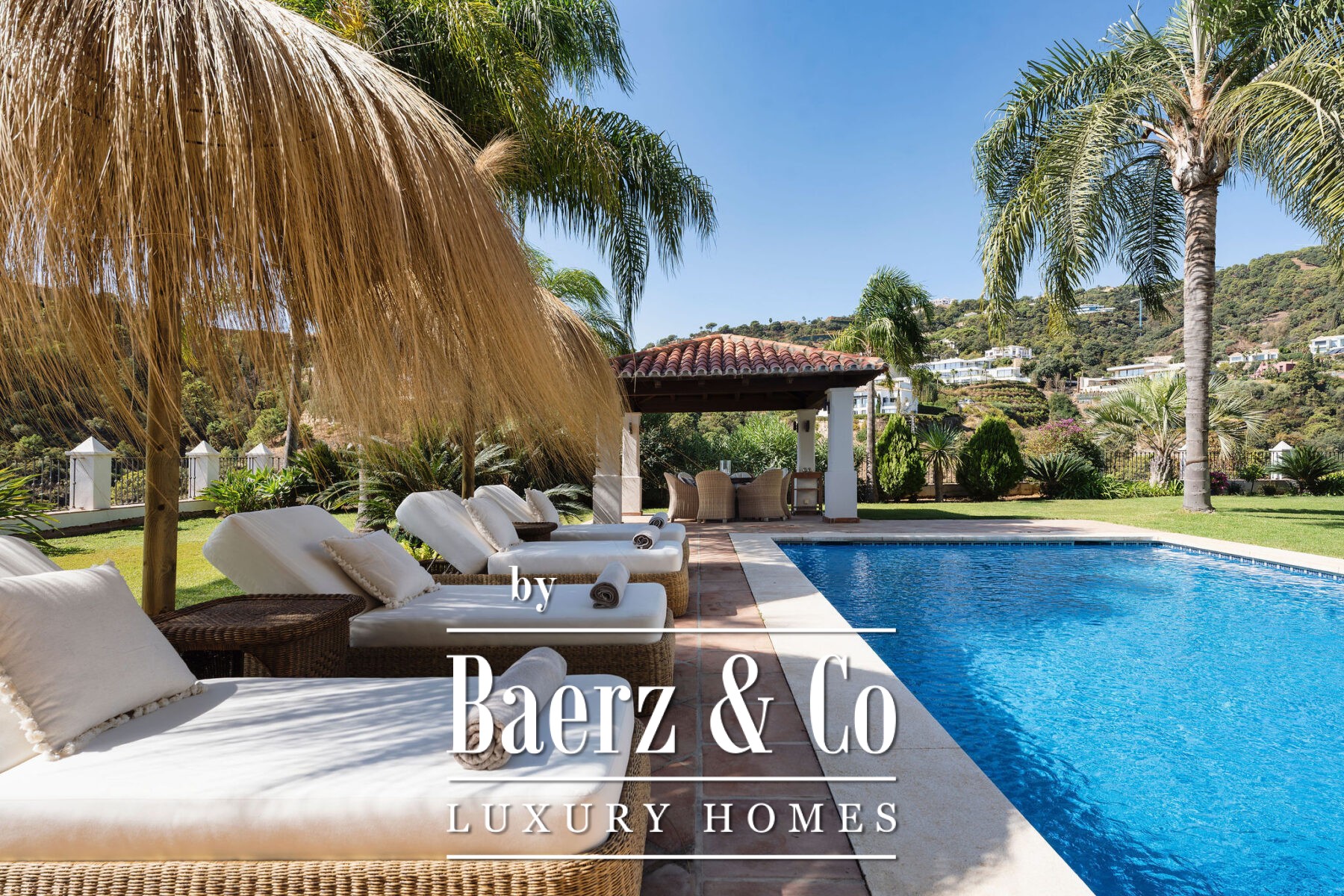 Villa El Madroñal Benahavís, met panoramisch zeezicht, vertegenwoordigt een zeldzaam niveau van verfijnd wonen in het hart van een geëerde beveiligde residentie. Deze volledig in 2024 gerenoveerde villa van 531 m² vormt een harmonieus samenspel tussen tijdloze Andalusische charme en doordachte moderne luxe. De woning is gesitueerd op een perceel van 5.344 m² en biedt weidse, blijvende uitzichten over zee en het berglandschap, ongeacht het seizoen, terwijl de zon haar zuidelijke en zuidwestelijke baan volgt.