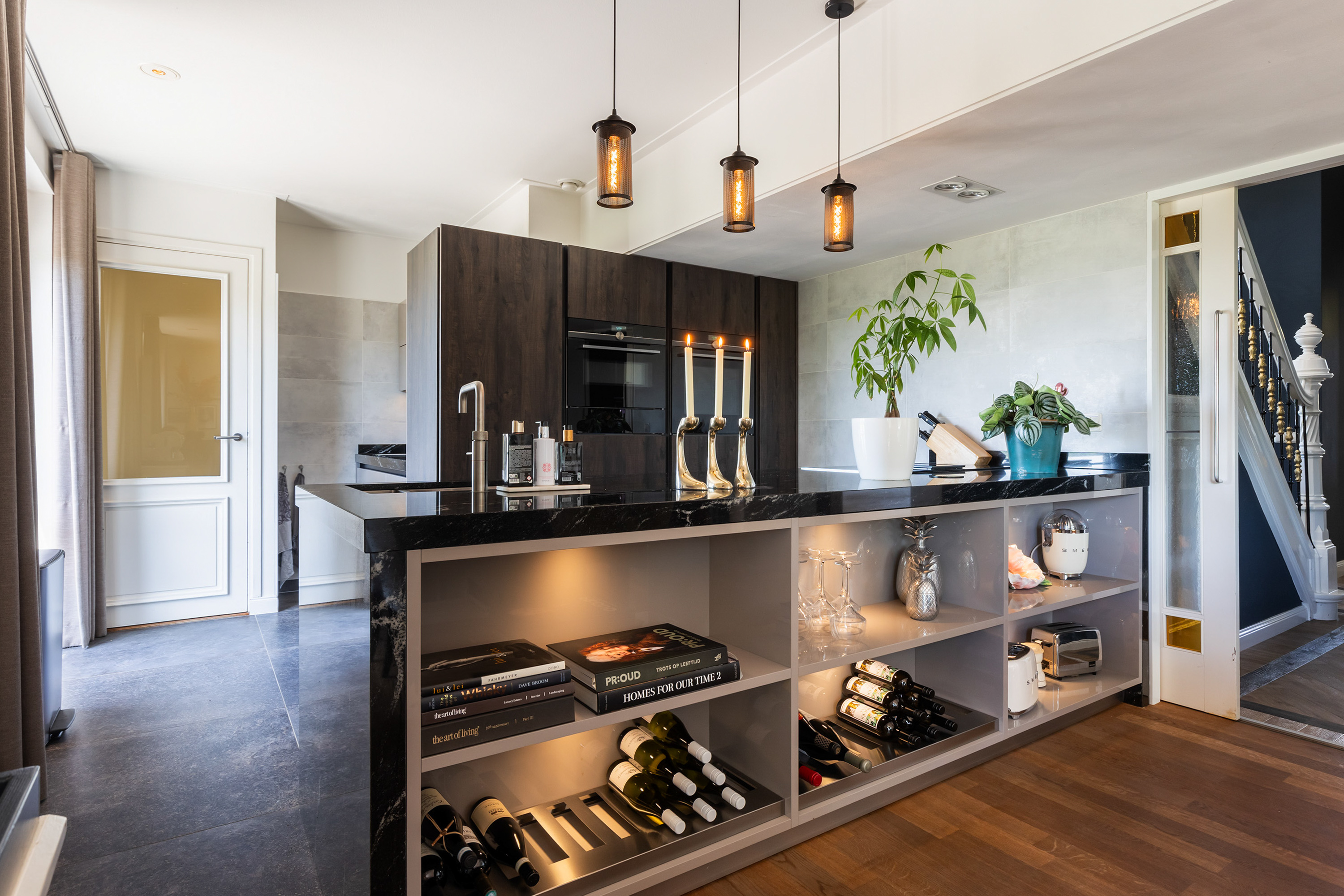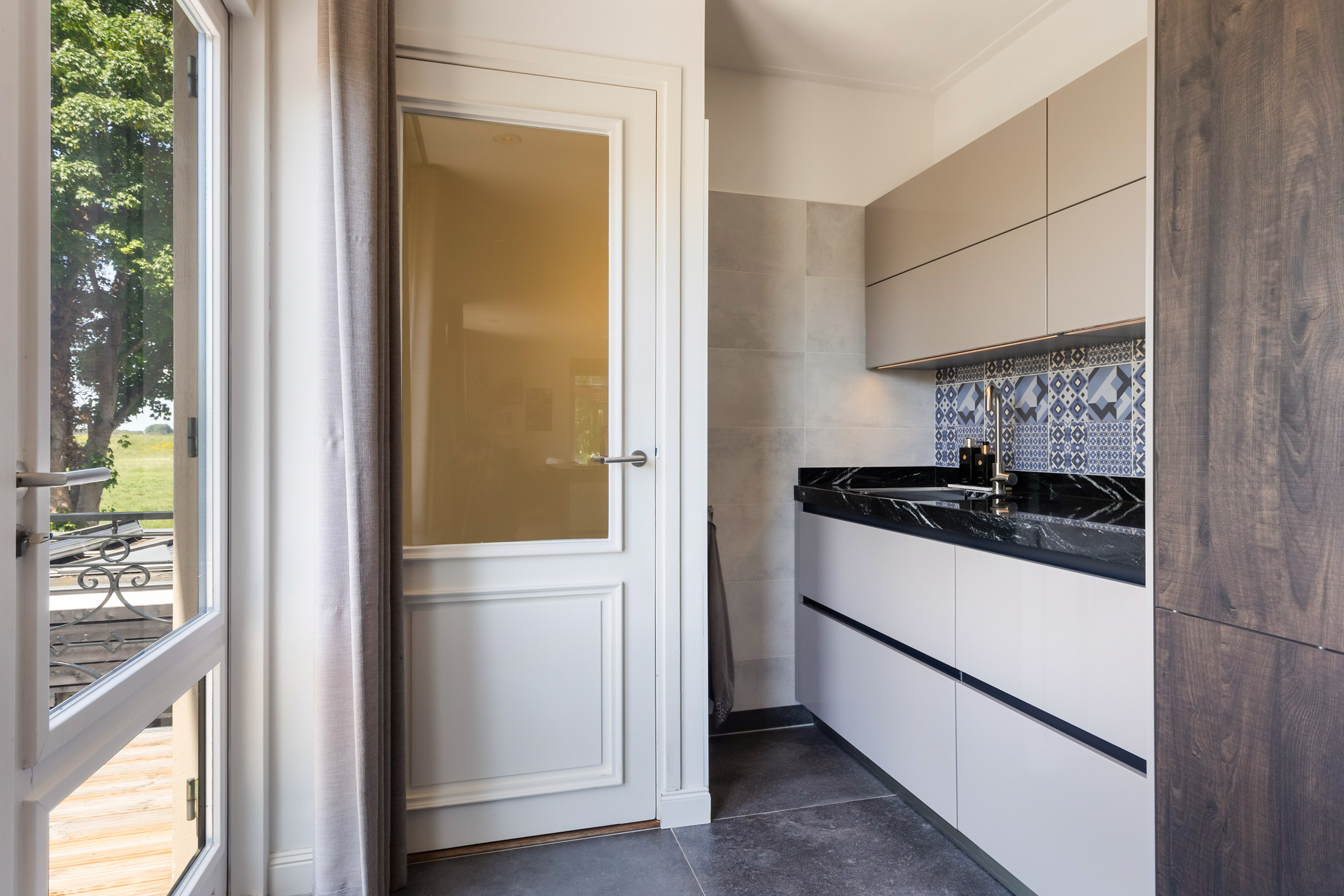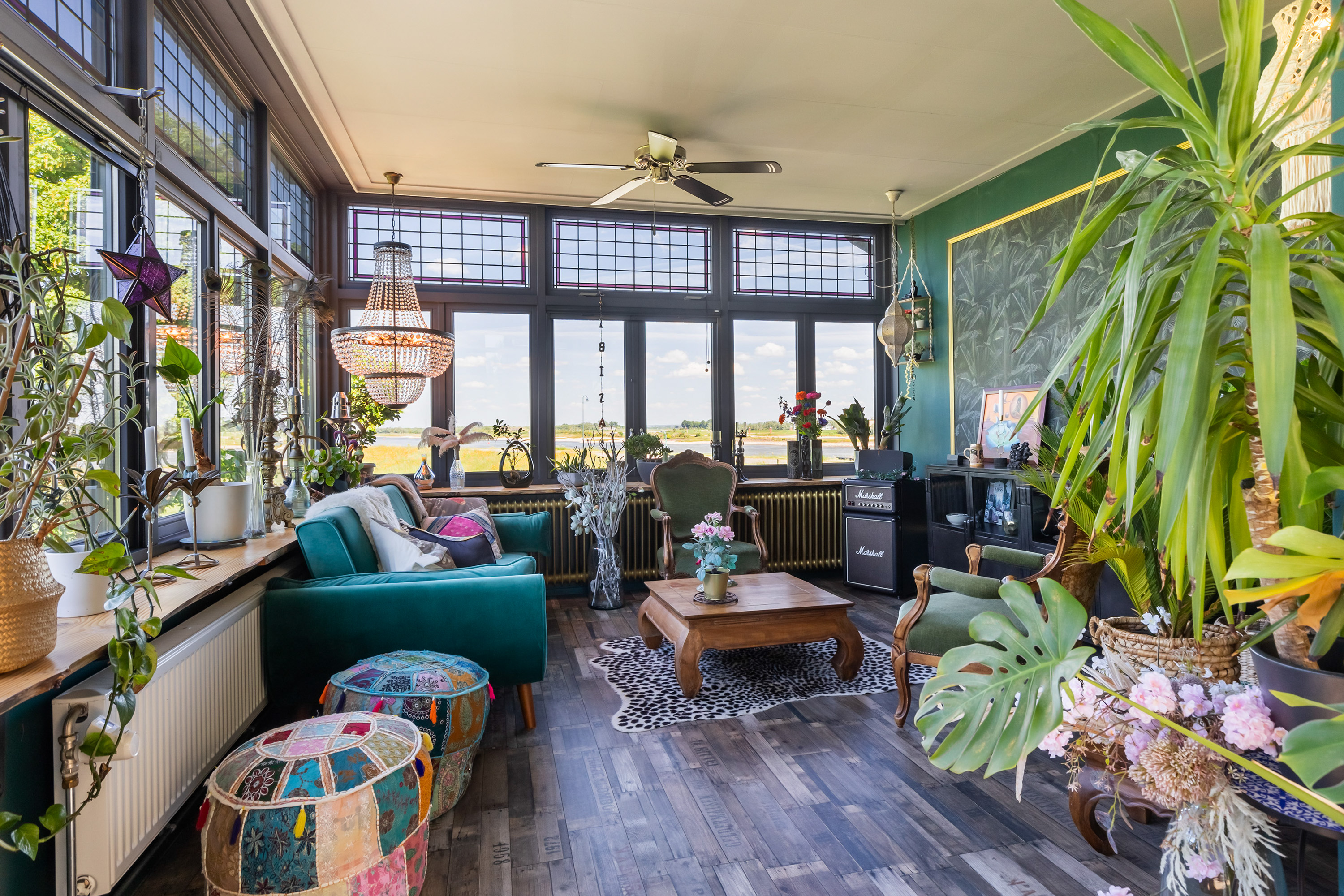 De villa onderscheidt zich niet alleen door haar ligging, maar ook door haar veelzijdigheid. Met vier volwaardige woonlagen is er een natuurlijke scheiding ontstaan tussen wonen, werken en ontvangen. Op dijkniveau bevindt zich het hart van de woning: een elegante leefverdieping waar verschillende woonfuncties op harmonieuze wijze samenkomen. Vanuit de vestibule bereikt u een royale werkkamer met haardpartij en uitzicht over de rivier. De aansluitende woon- en eetkamer, evenals de open keuken, vormen één ruimtelijk geheel, verbonden door een sfeervolle doorkijkhaard. Grote raampartijen en openslaande deuren zorgen voor een directe verbinding met het balkon, waar het uitzicht over water en landerijen telkens opnieuw indruk maakt.