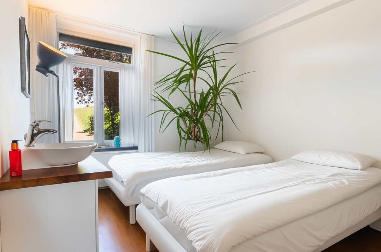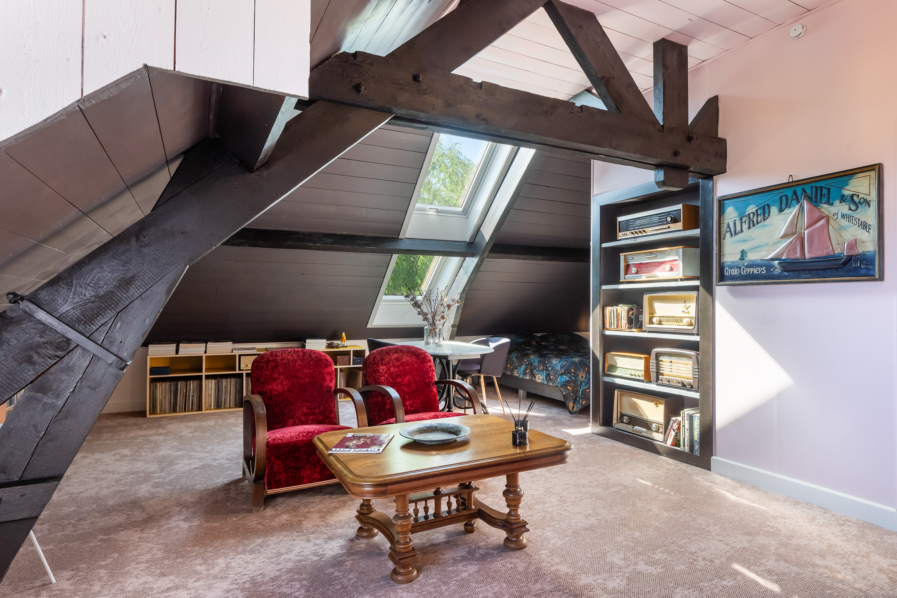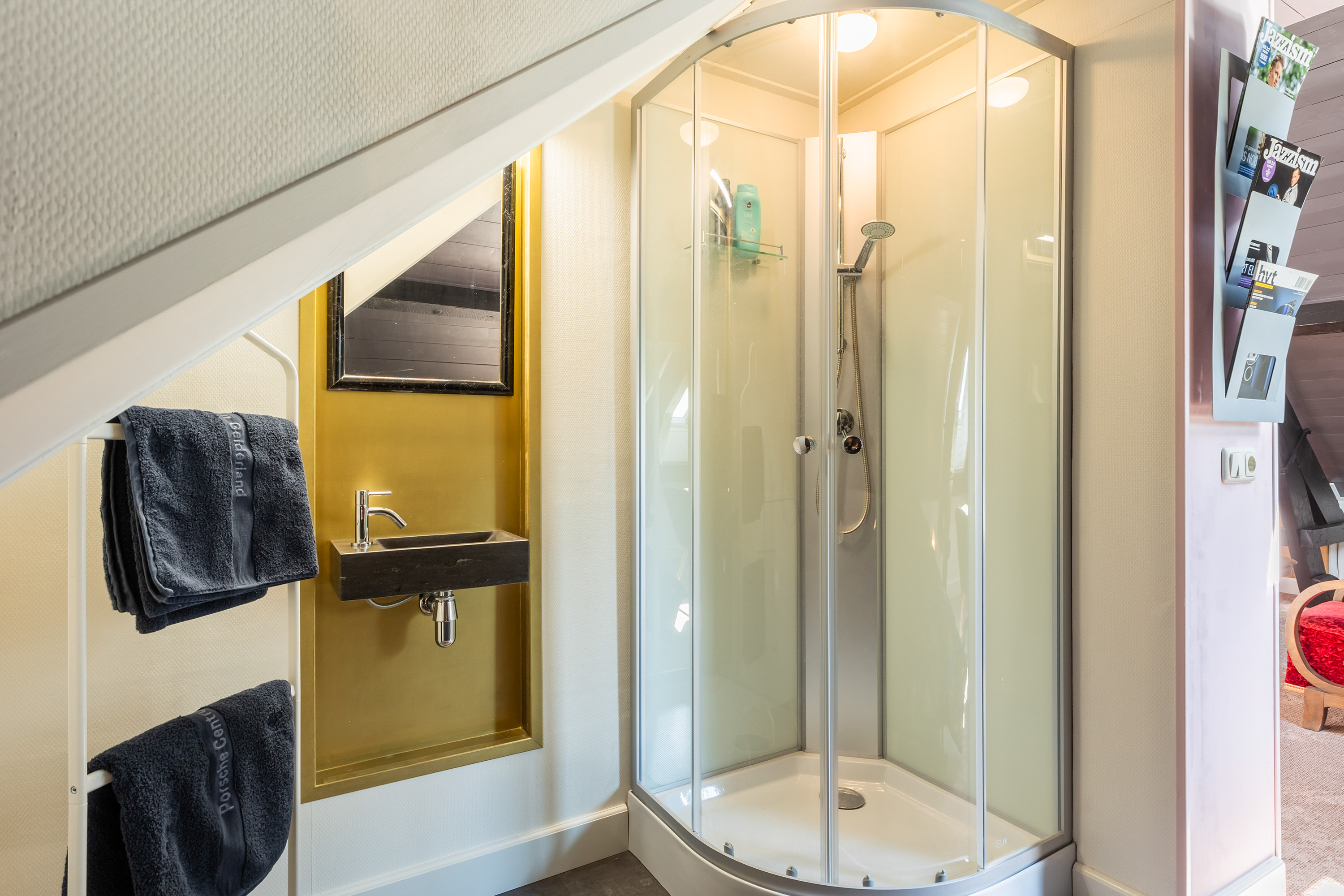 De bovenste verdieping biedt aanvullende ruimte in de vorm van een vierde slaapkamer met eigen douchegelegenheid en wastafel, alsmede een multifunctionele ruimte die zich uitstekend leent voor werken, hobby of logies.